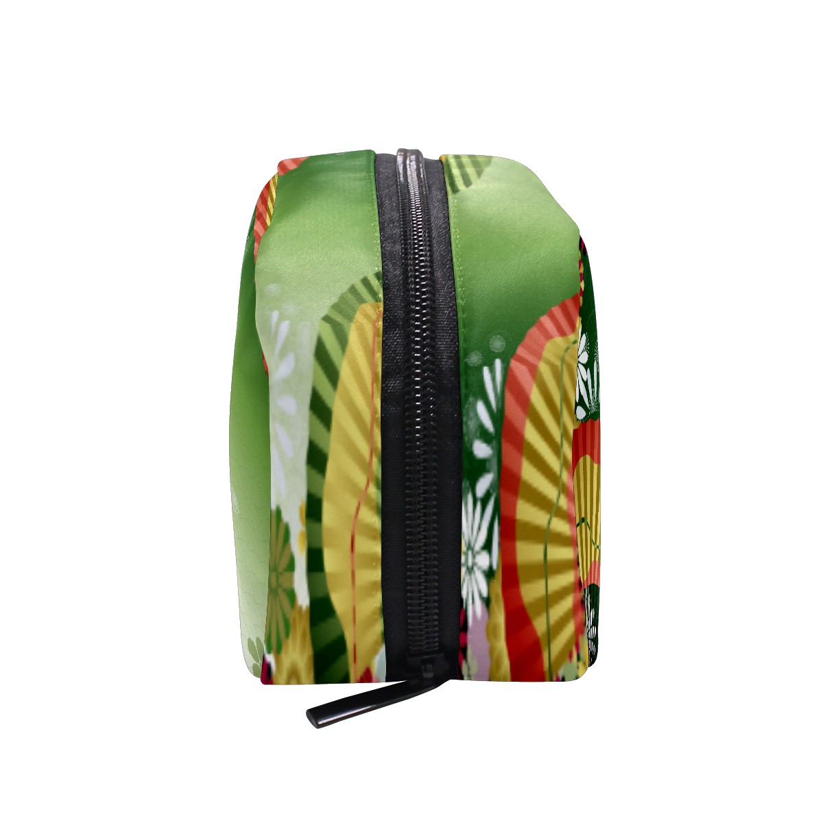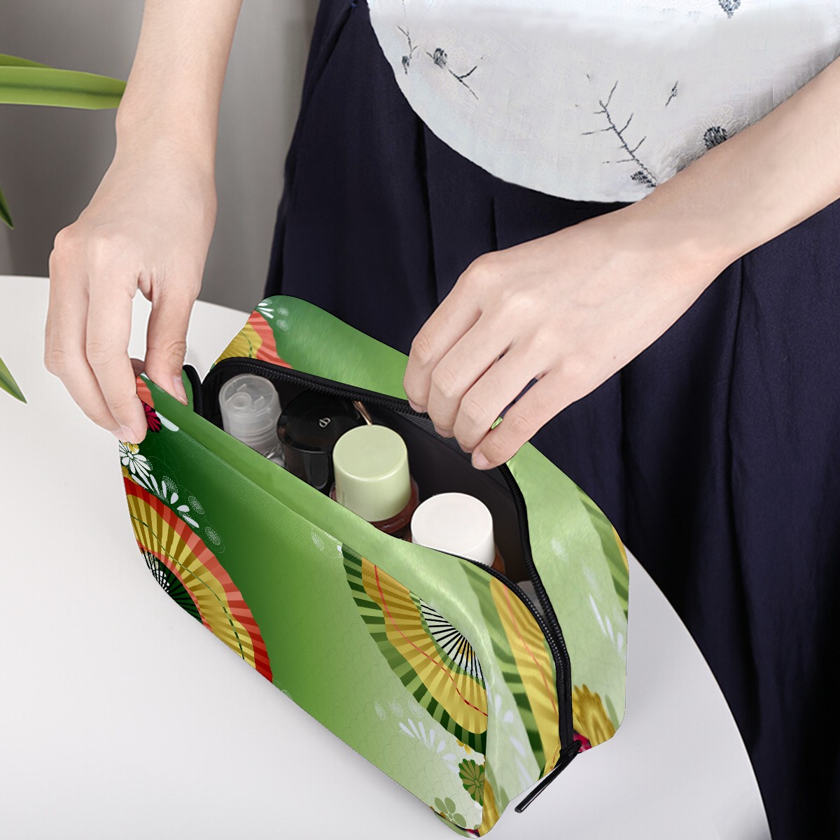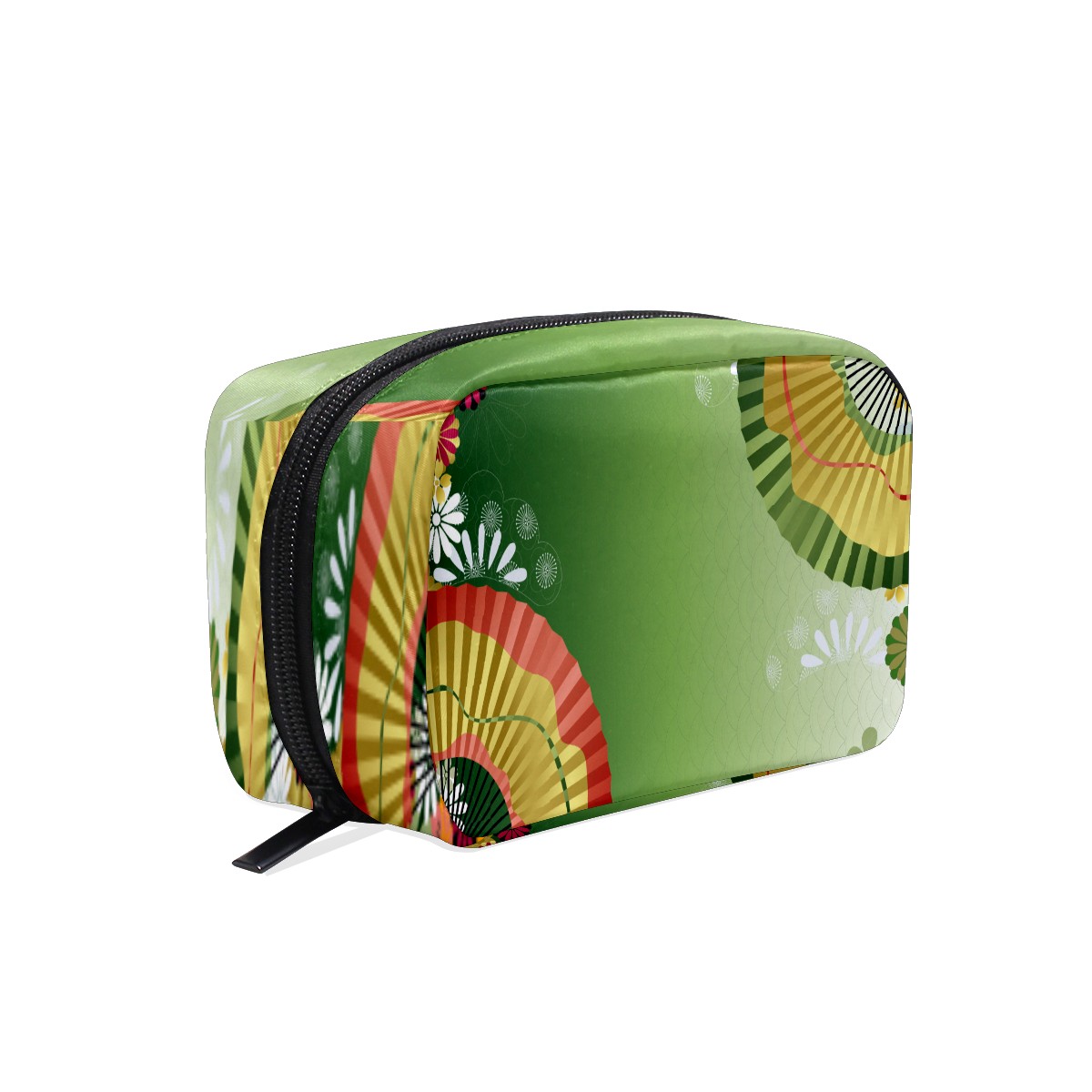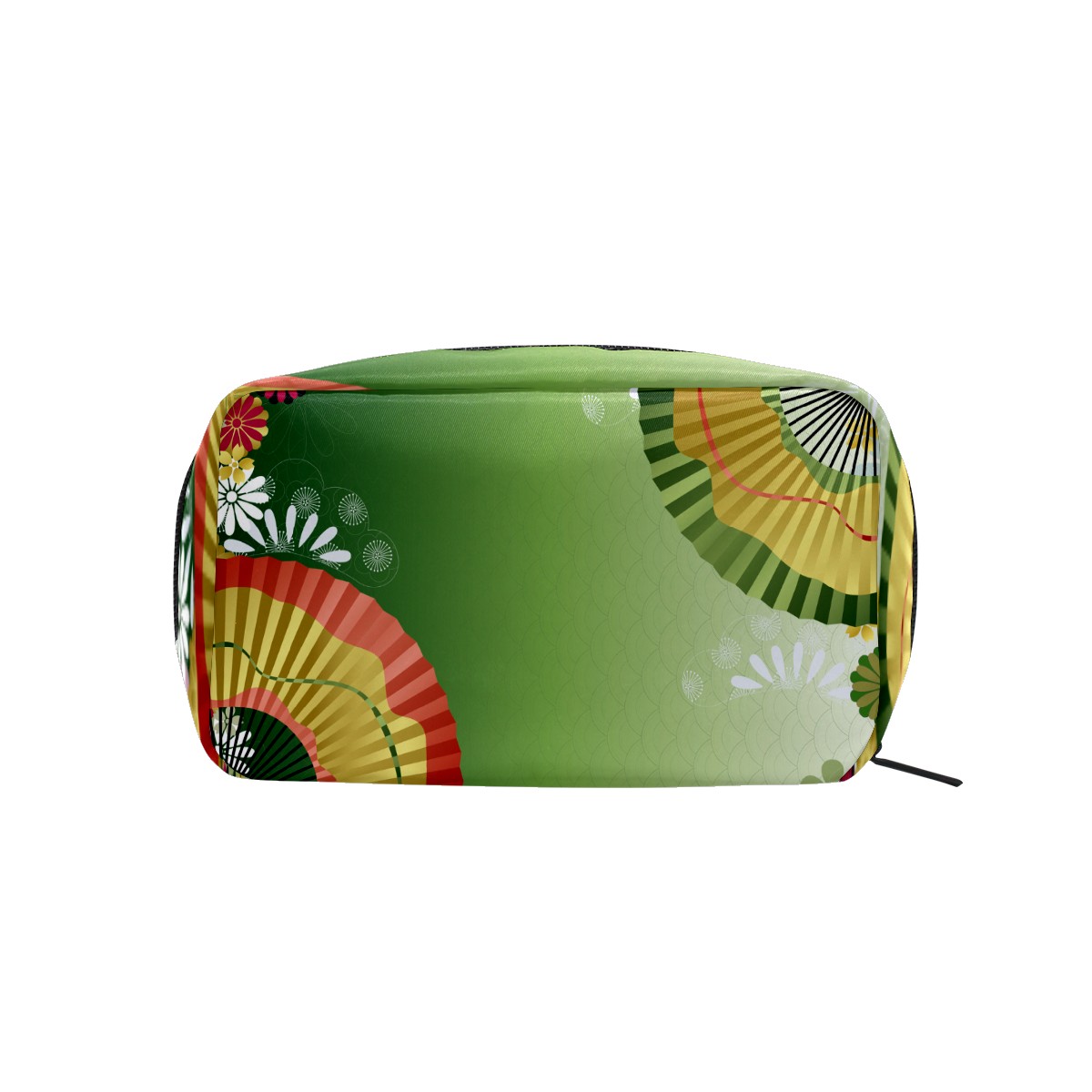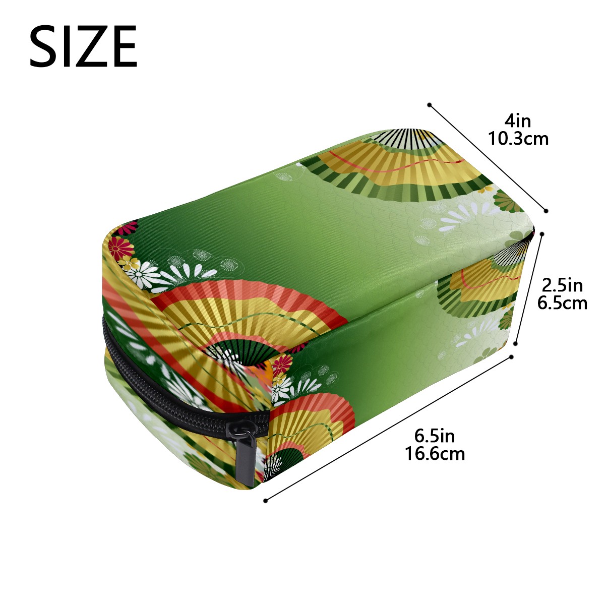 Cosmetic Bag for Women Girls Trave Makeup Bag Toiletry Case Pouch Accessories Organizer Retro Japanese Green Fan Cherry Blossom Floral