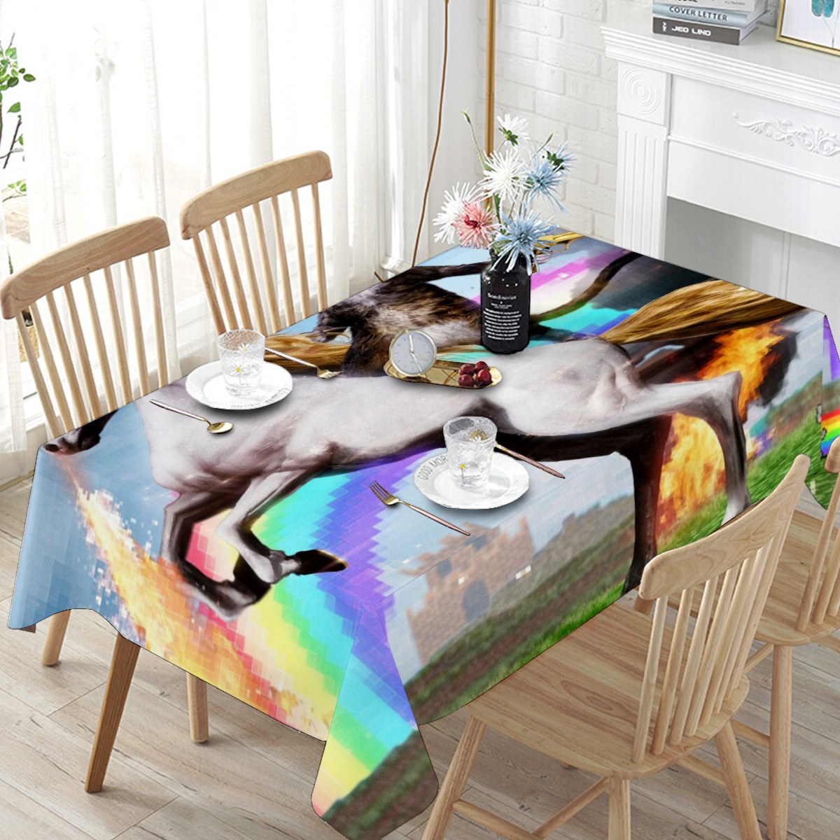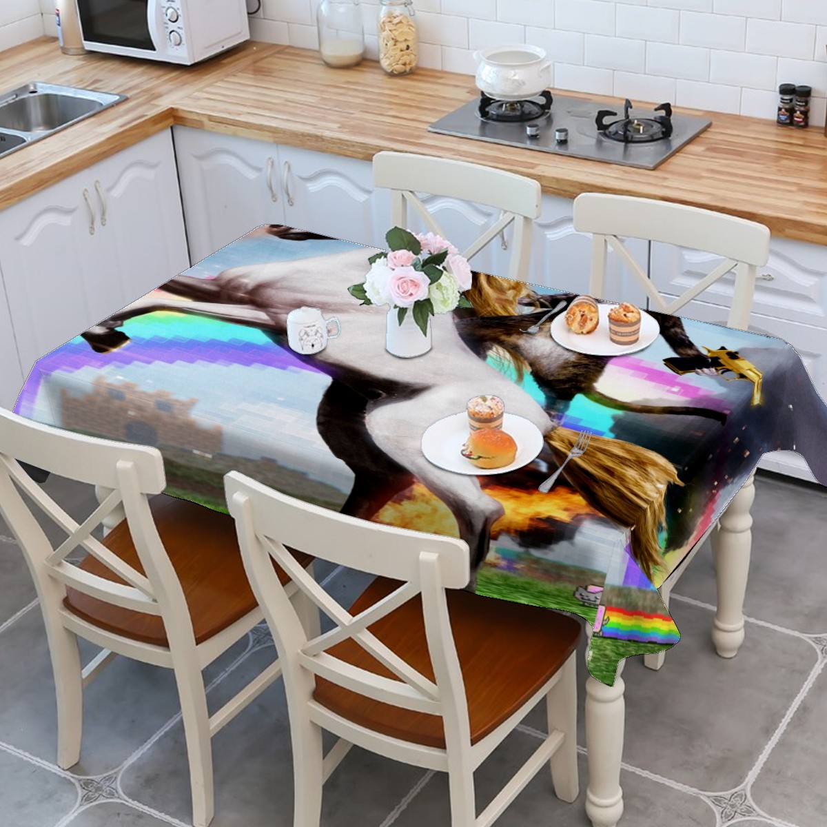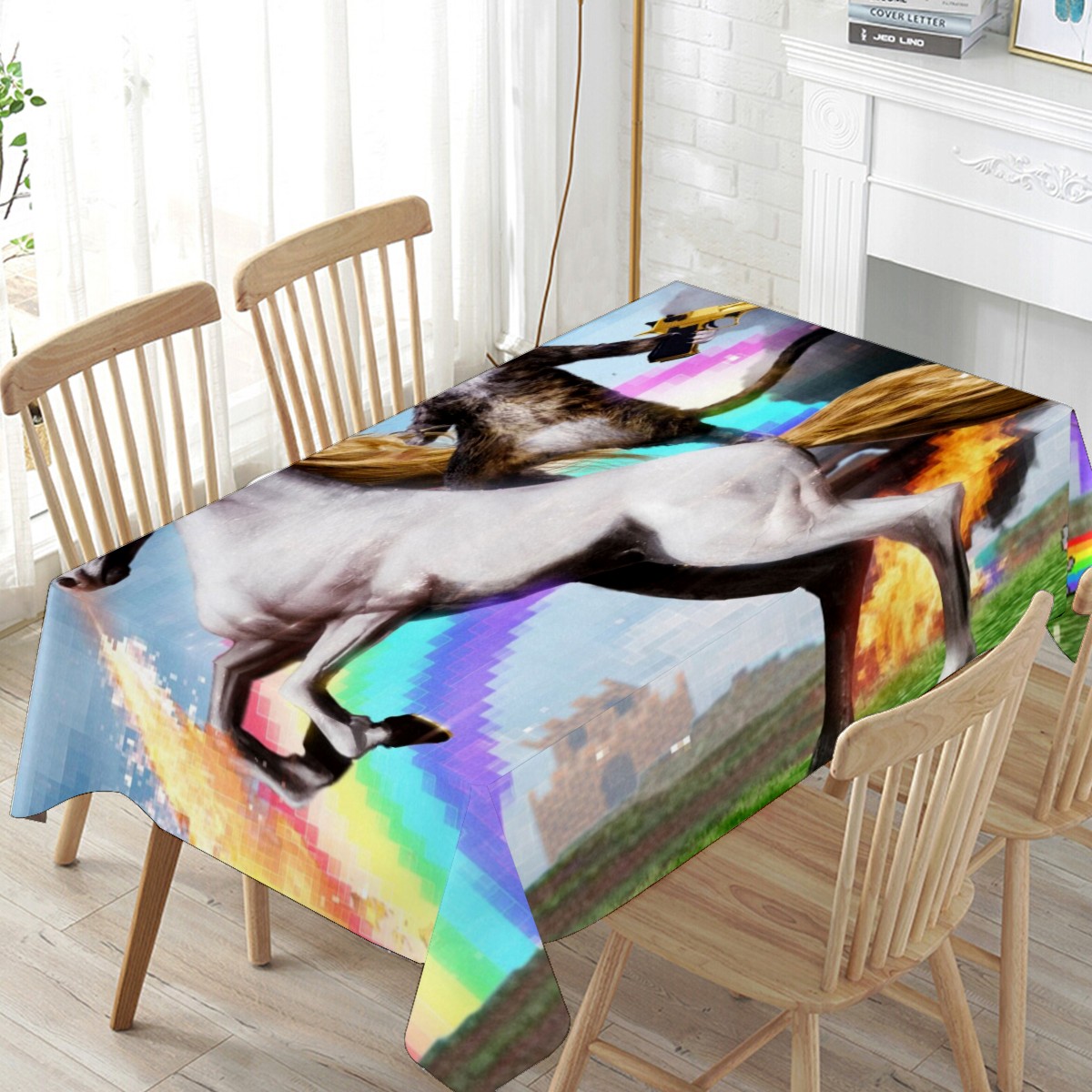 Rectangle Tablecloth Unicorn Cat Ride Rainbow Table Cloth 54x54in Table Cover for Kitchen Dining Table Party Home Decoration Washable Table Runner