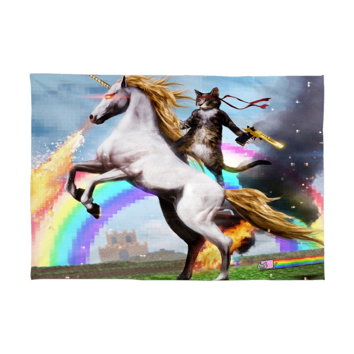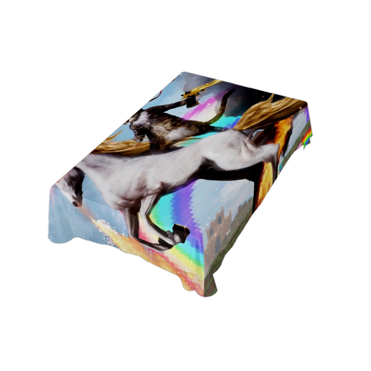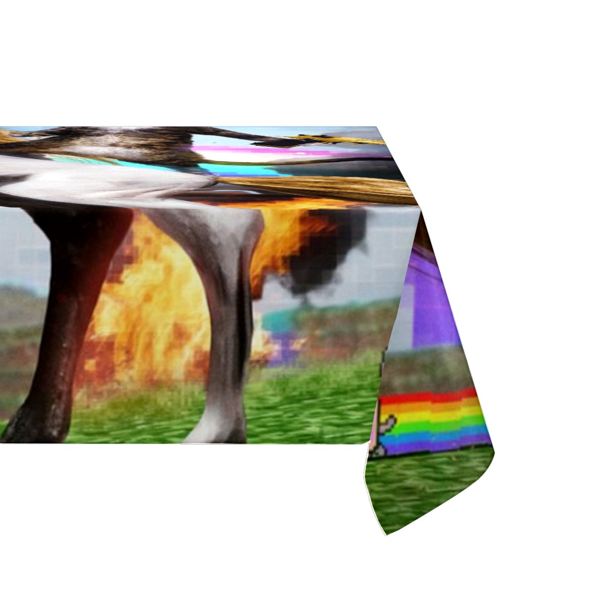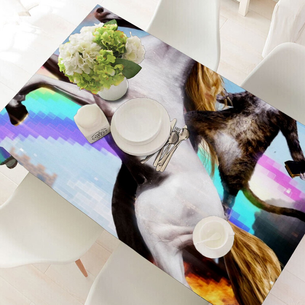 Rectangle Tablecloth Unicorn Cat Ride Rainbow Table Cloth 54x54in Table Cover for Kitchen Dining Table Party Home Decoration Washable Table Runner