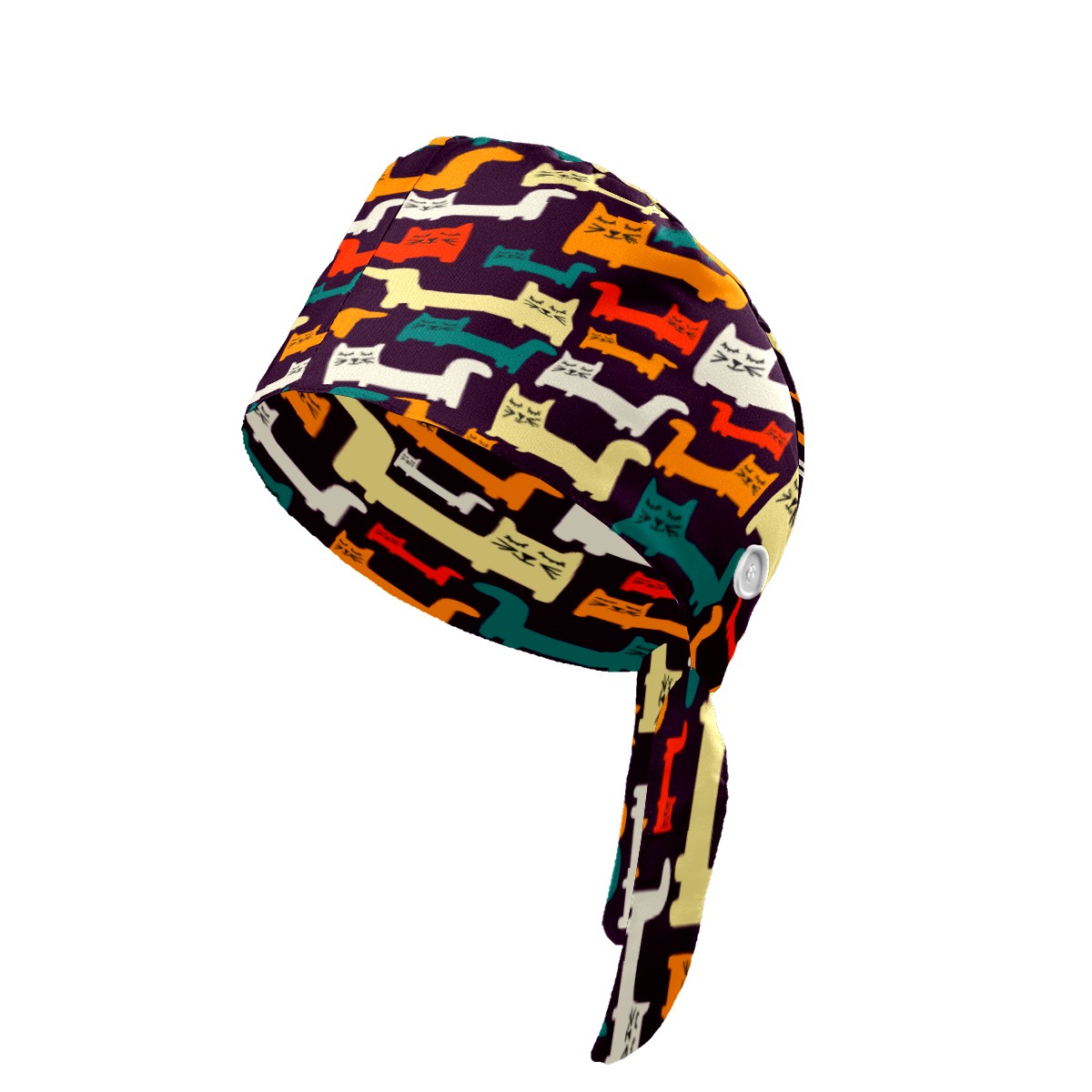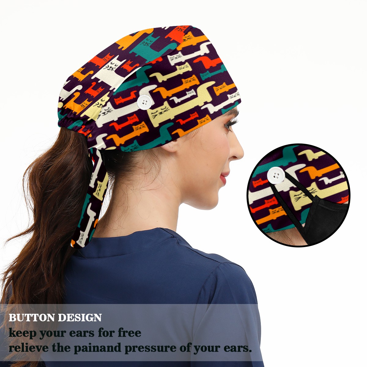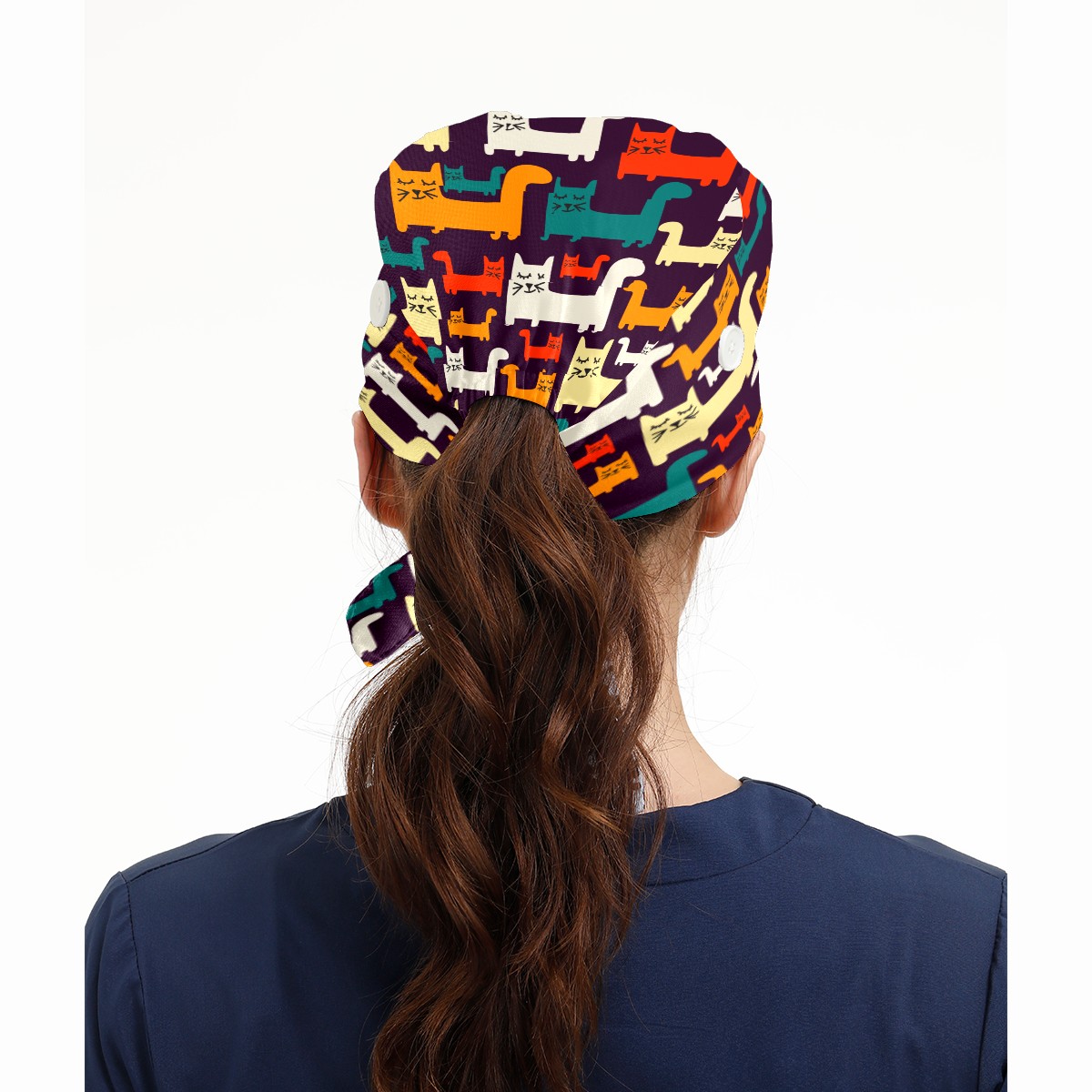 Colorful Cats Pattern Working Cap Button and Sweatband Adjustable Elastic Head Cover Hair Tie Back Work Hats for Women Men