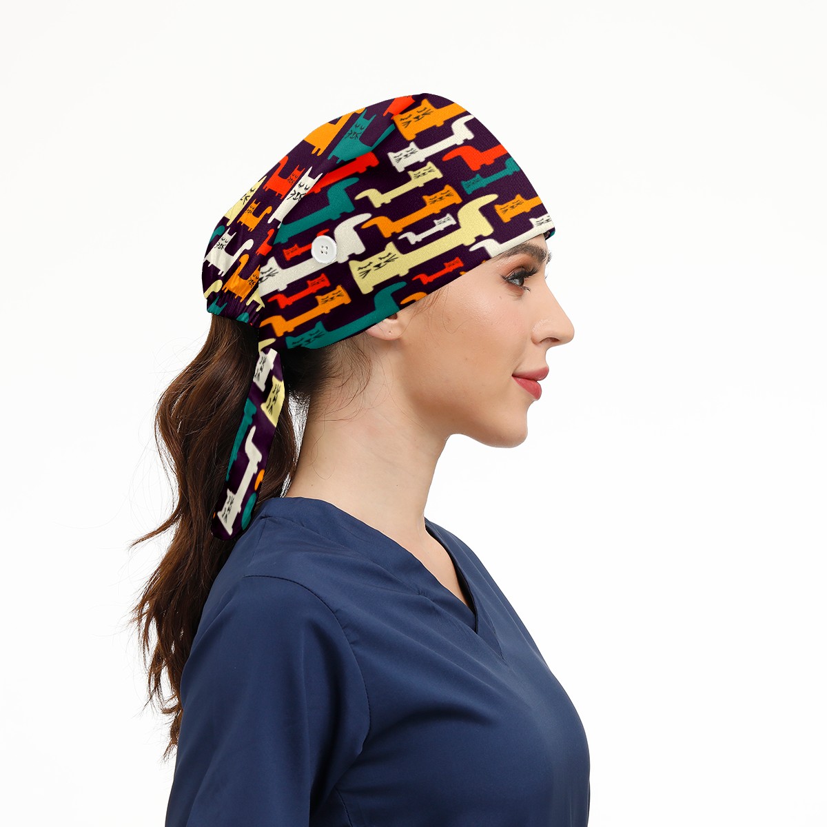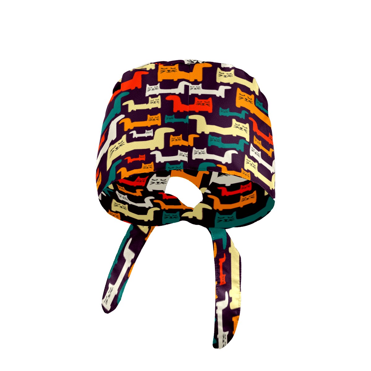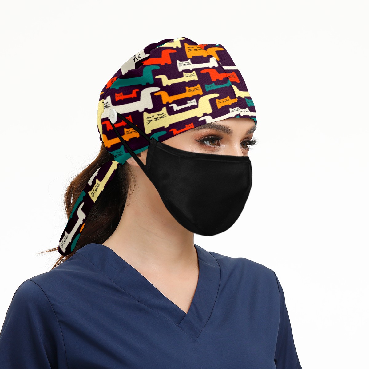 Colorful Cats Pattern Working Cap Button and Sweatband Adjustable Elastic Head Cover Hair Tie Back Work Hats for Women Men