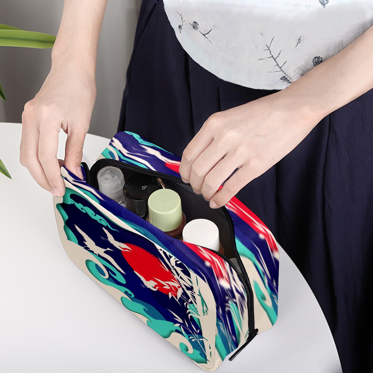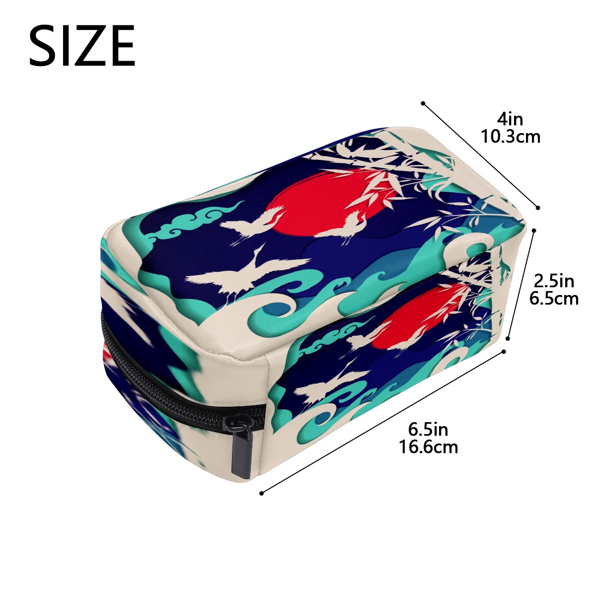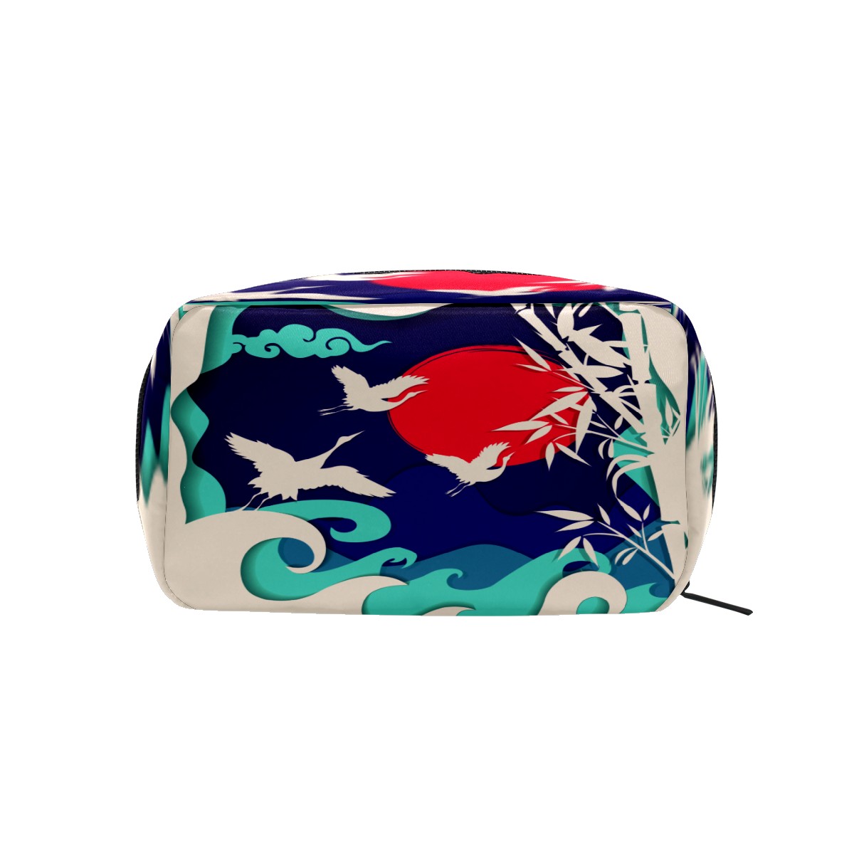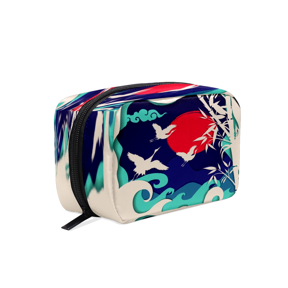 Cosmetic Bag for Women Girls Trave Makeup Bag Toiletry Case Pouch Accessories Organizer Retro Japanese Crane Flying Wave Bamboo