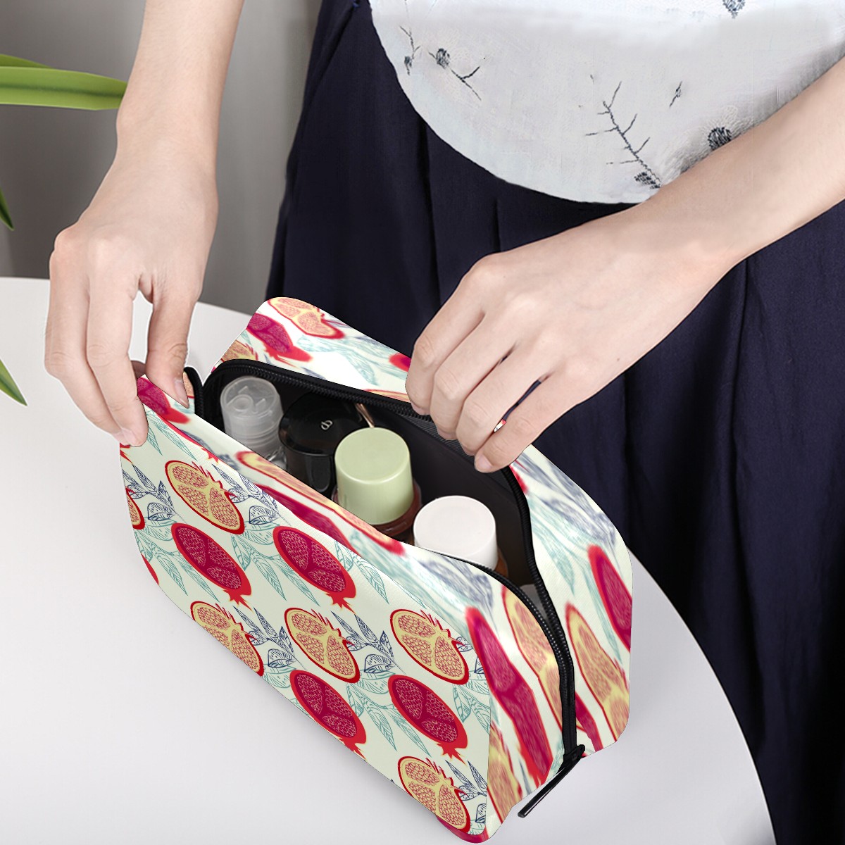 Cosmetic Bag for Women Girls Trave Makeup Bag Toiletry Case Pouch Accessories Organizer Retro Fruit Pomegranate Pattern