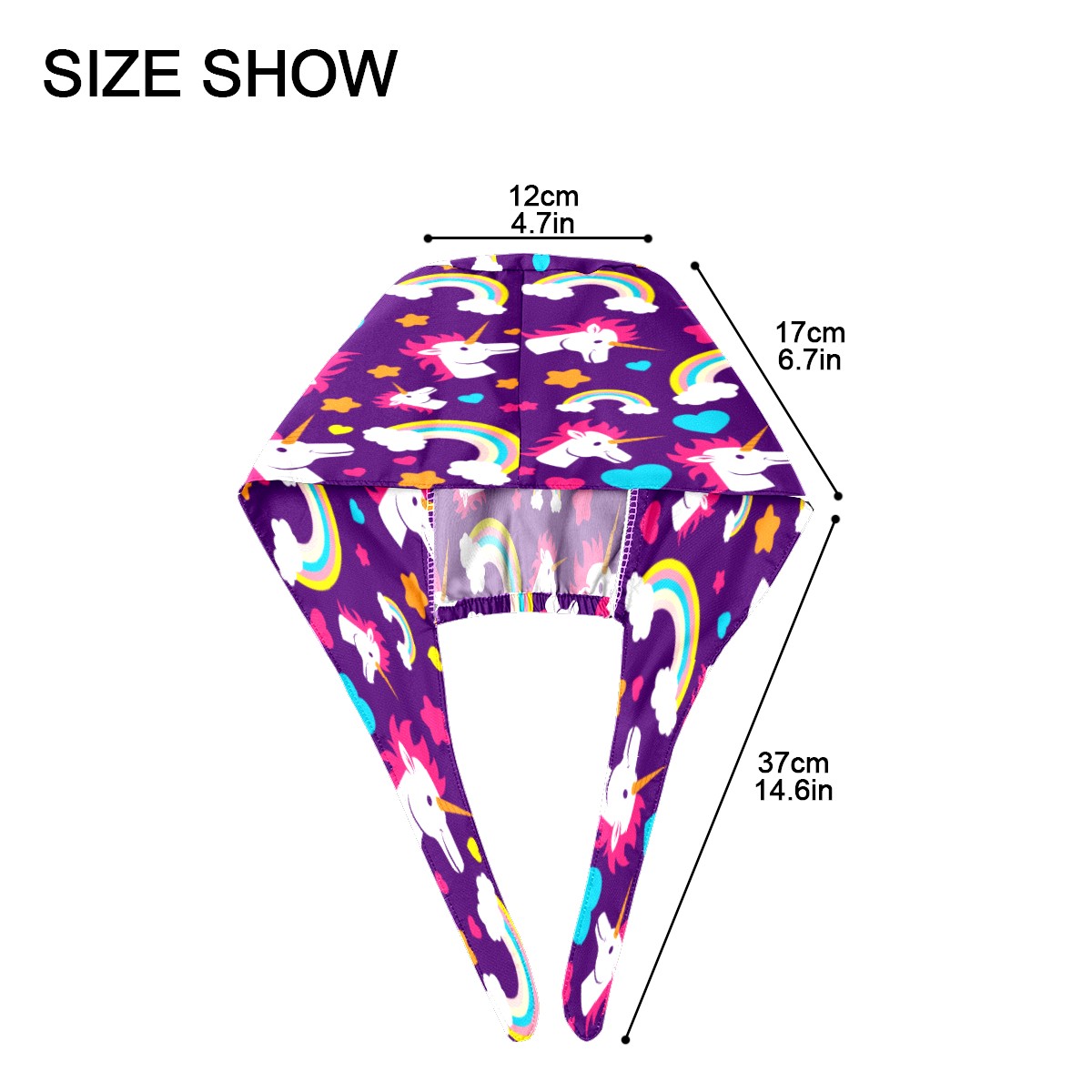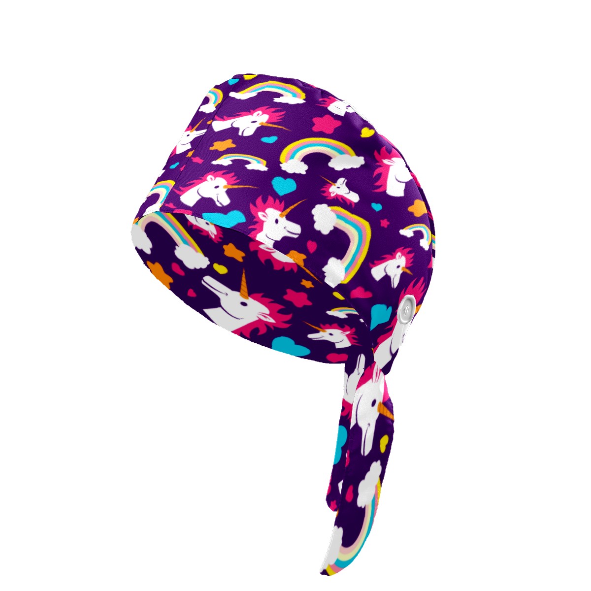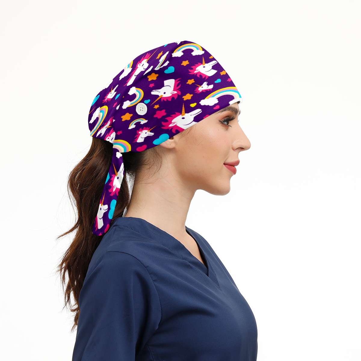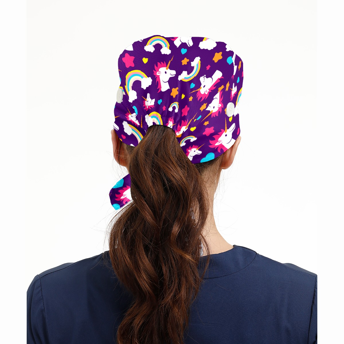 Colorful Cartoon Unicorn Rainbow Heart Stars Pattern Working Cap Button and Sweatband Adjustable Elastic Head Cover Hair Tie Back Work Hats for Women Men