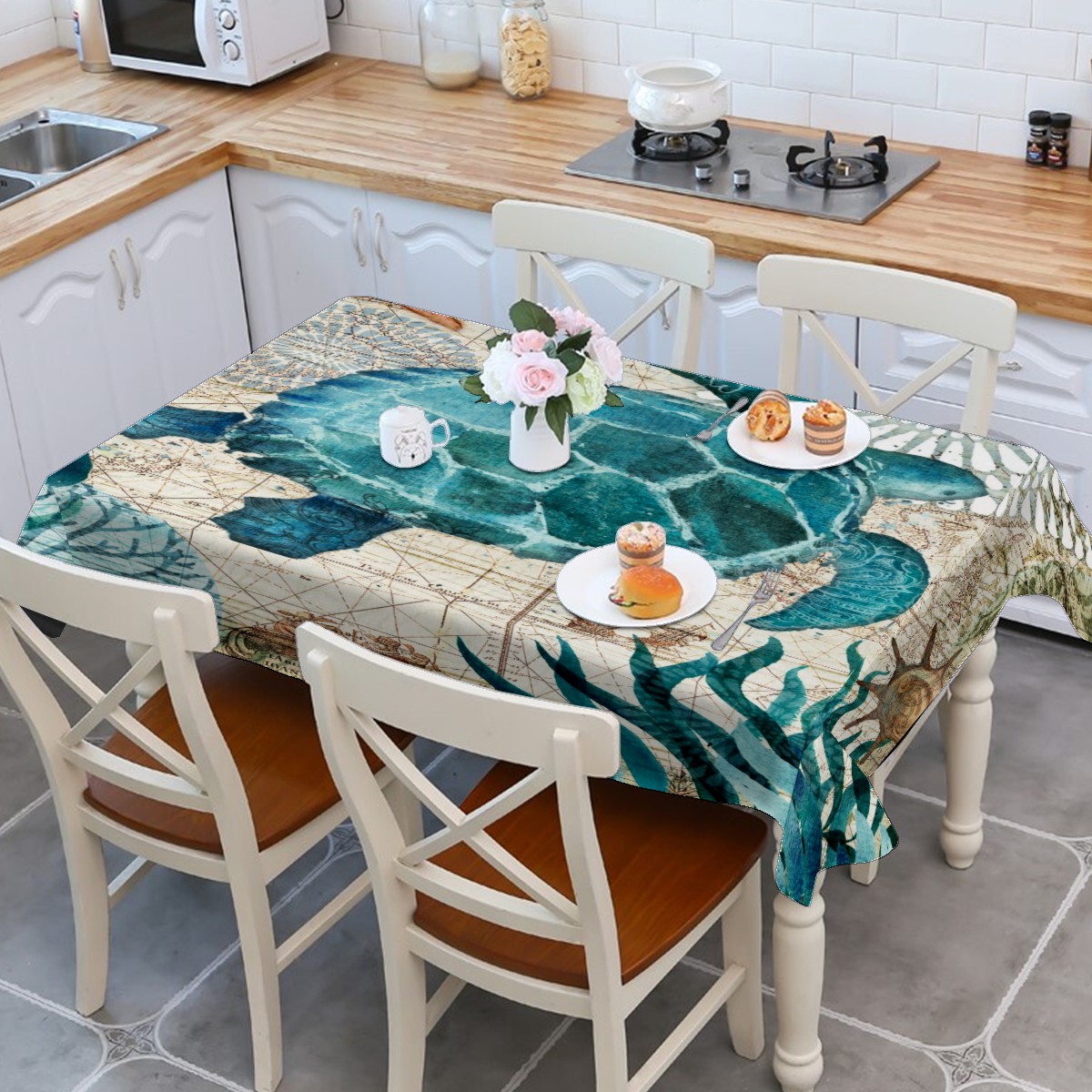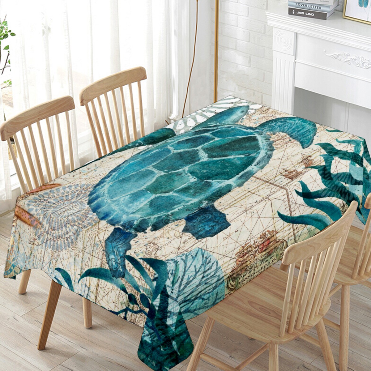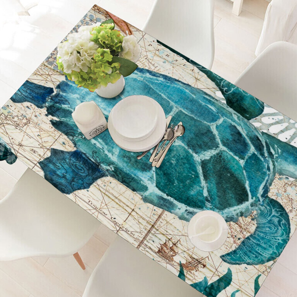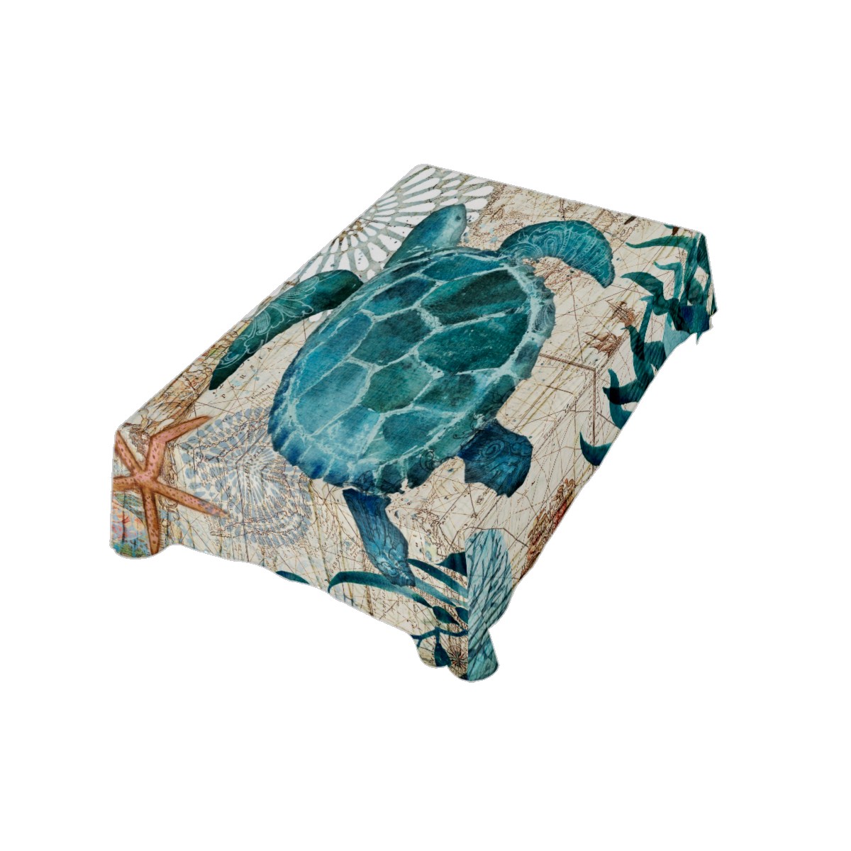Rectangle Tablecloth Turtle Nautical Map Ocean Table Cloth 54x54in Table Cover for Kitchen Dining Table Party Home Decoration Washable Table Runner