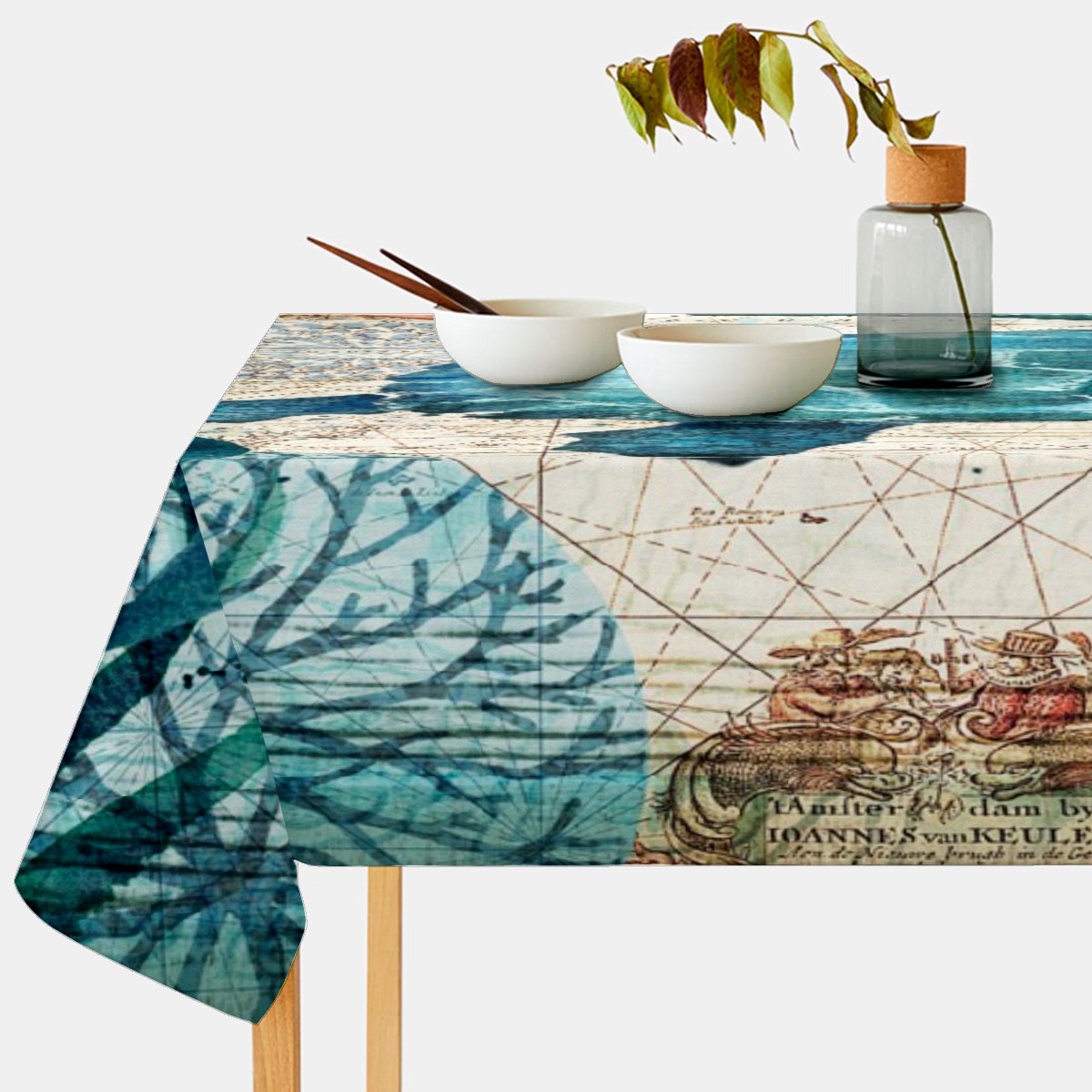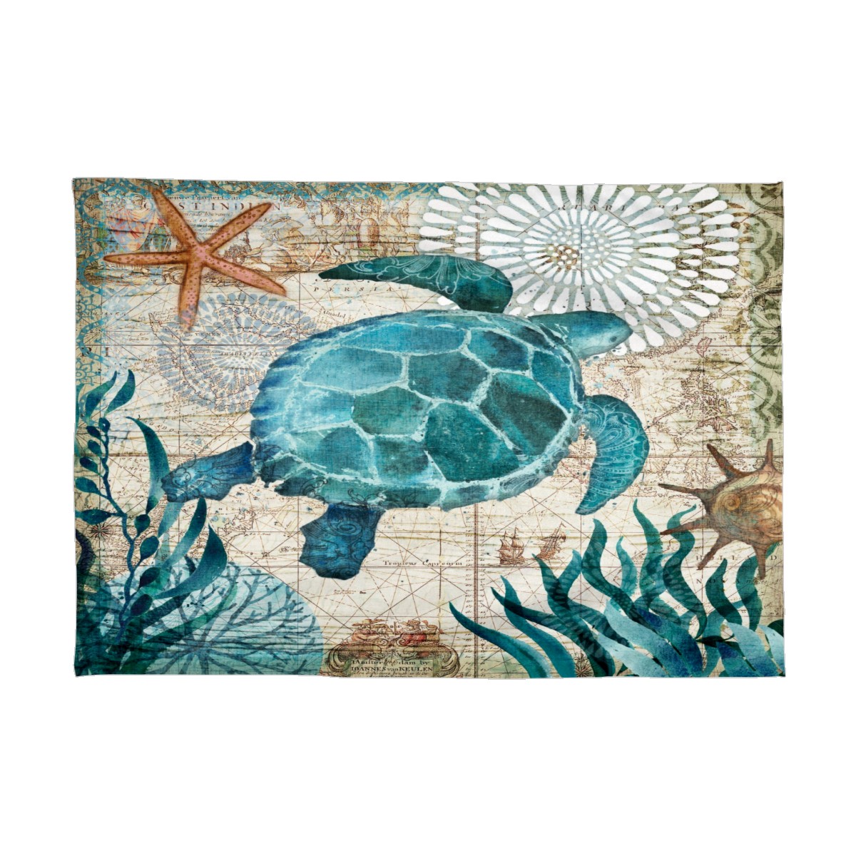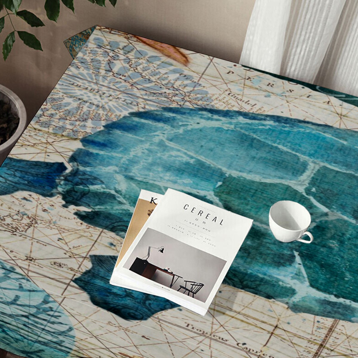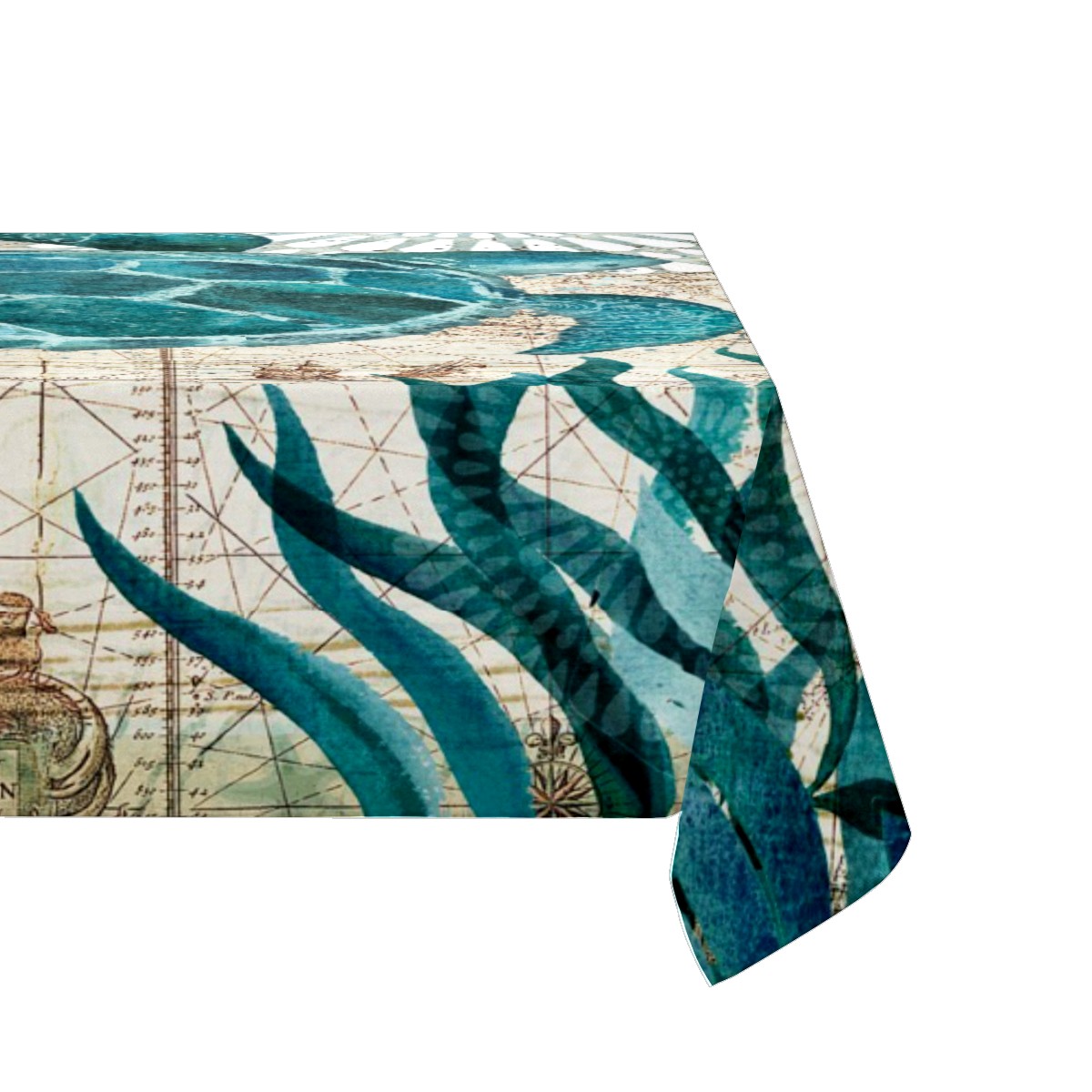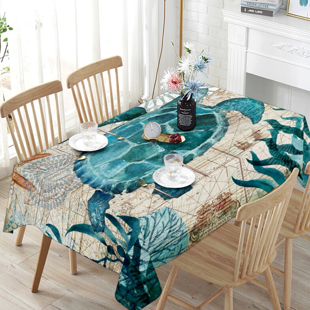 Rectangle Tablecloth Turtle Nautical Map Ocean Table Cloth 54x54in Table Cover for Kitchen Dining Table Party Home Decoration Washable Table Runner