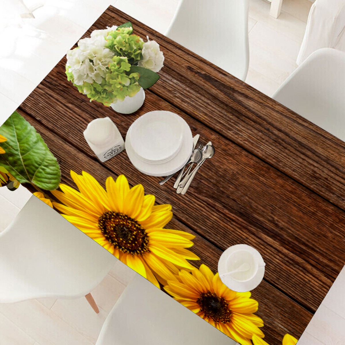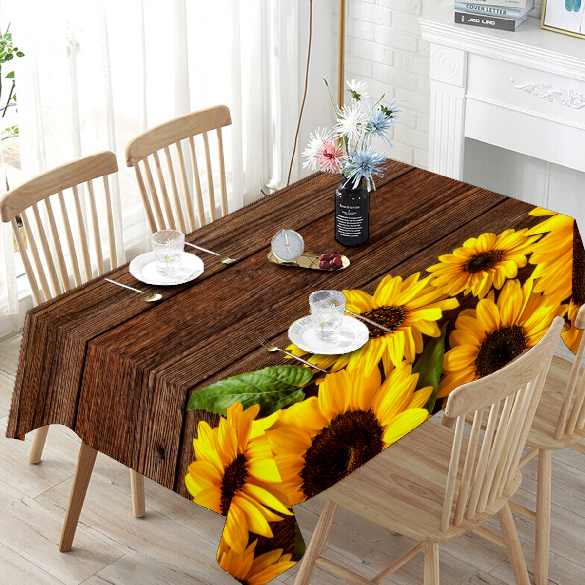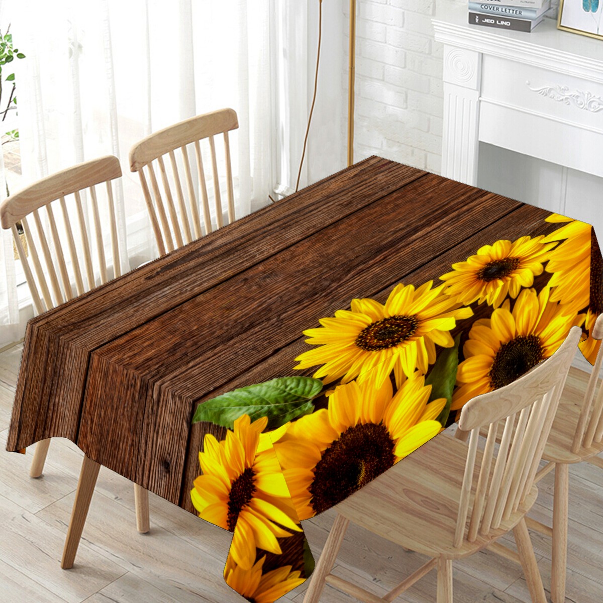 Rectangle Tablecloth Sunflowers Wooden Retro Colorful Table Cloth 54x54in Table Cover for Kitchen Dining Table Party Home Decoration Washable Table Runner