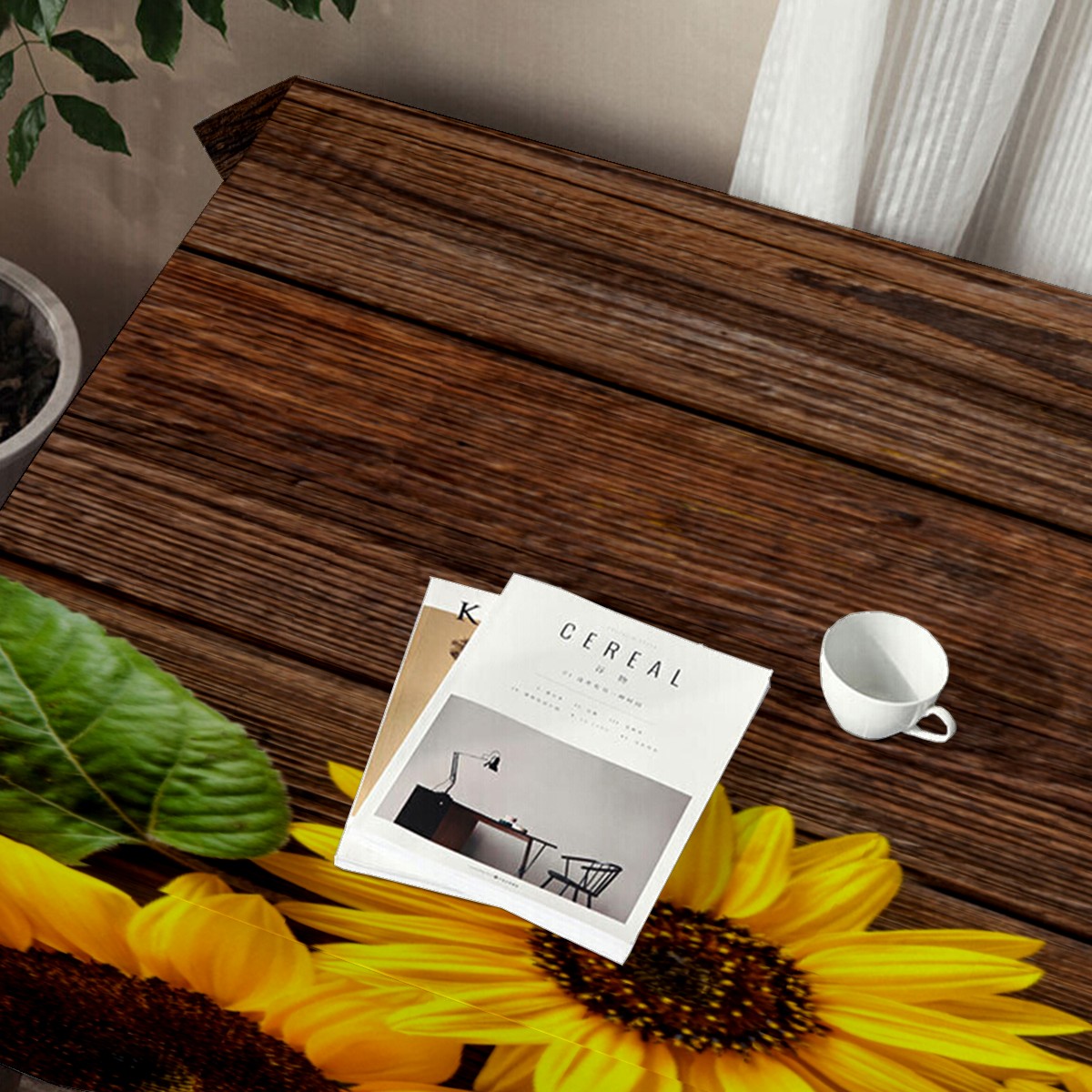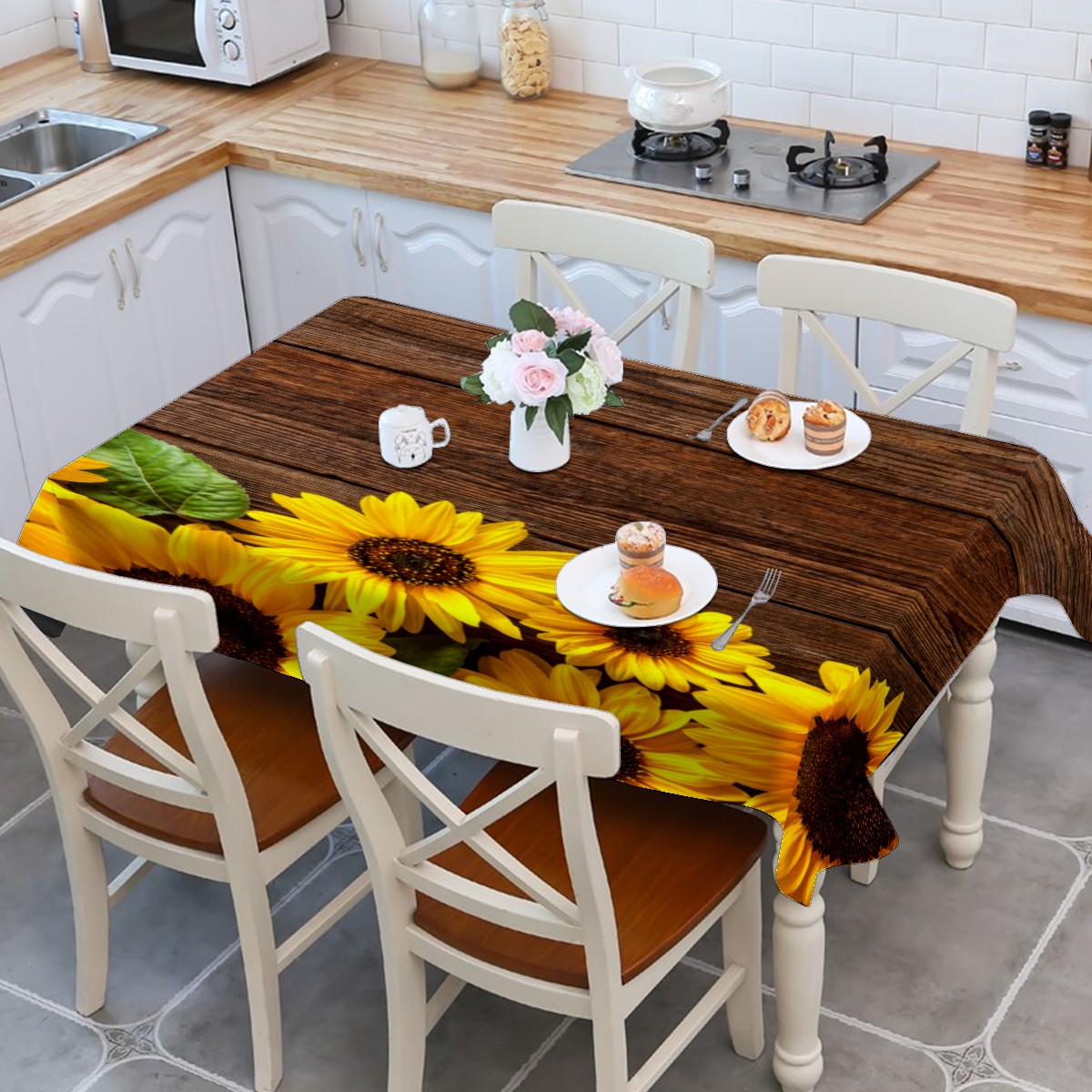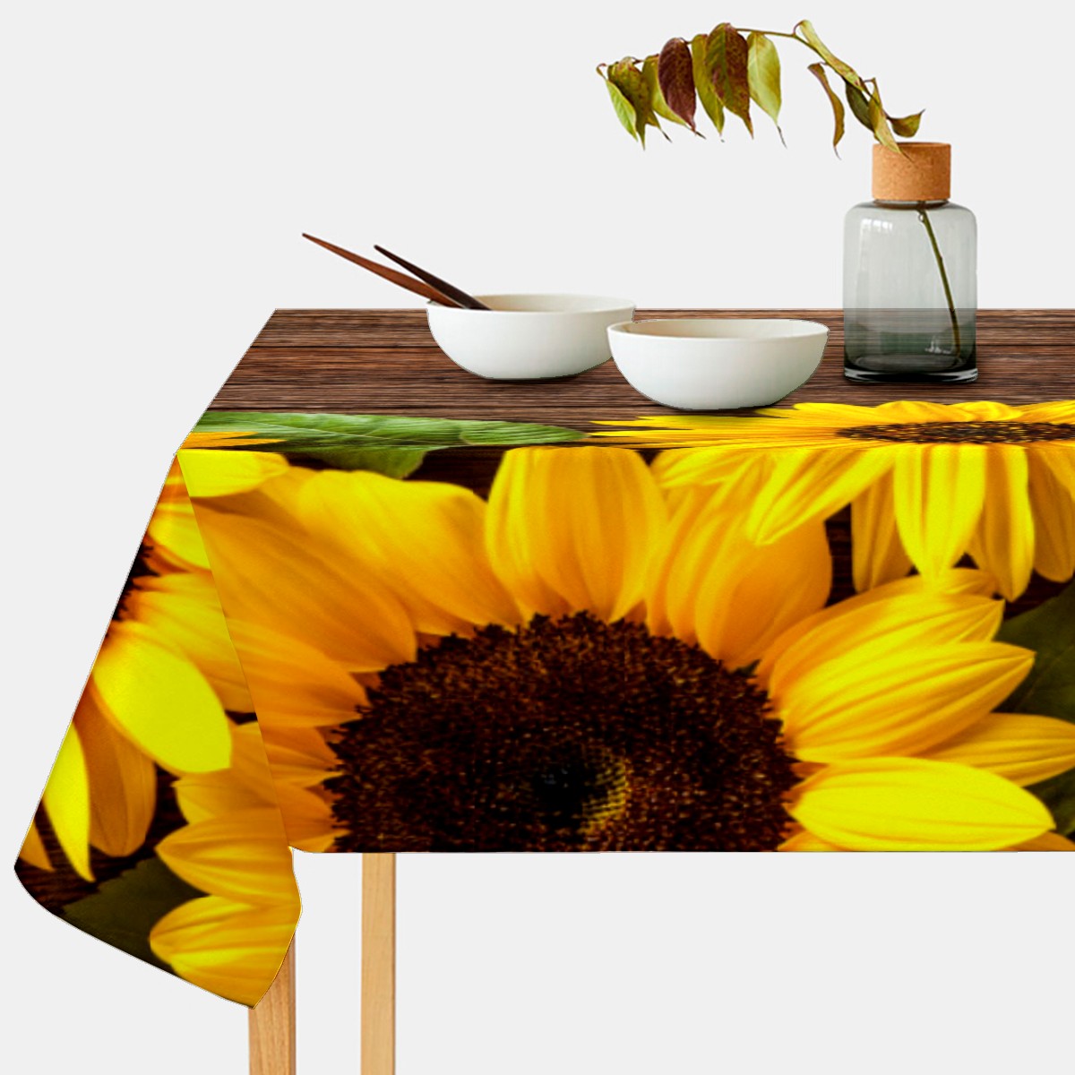 Rectangle Tablecloth Sunflowers Wooden Retro Colorful Table Cloth 54x54in Table Cover for Kitchen Dining Table Party Home Decoration Washable Table Runner