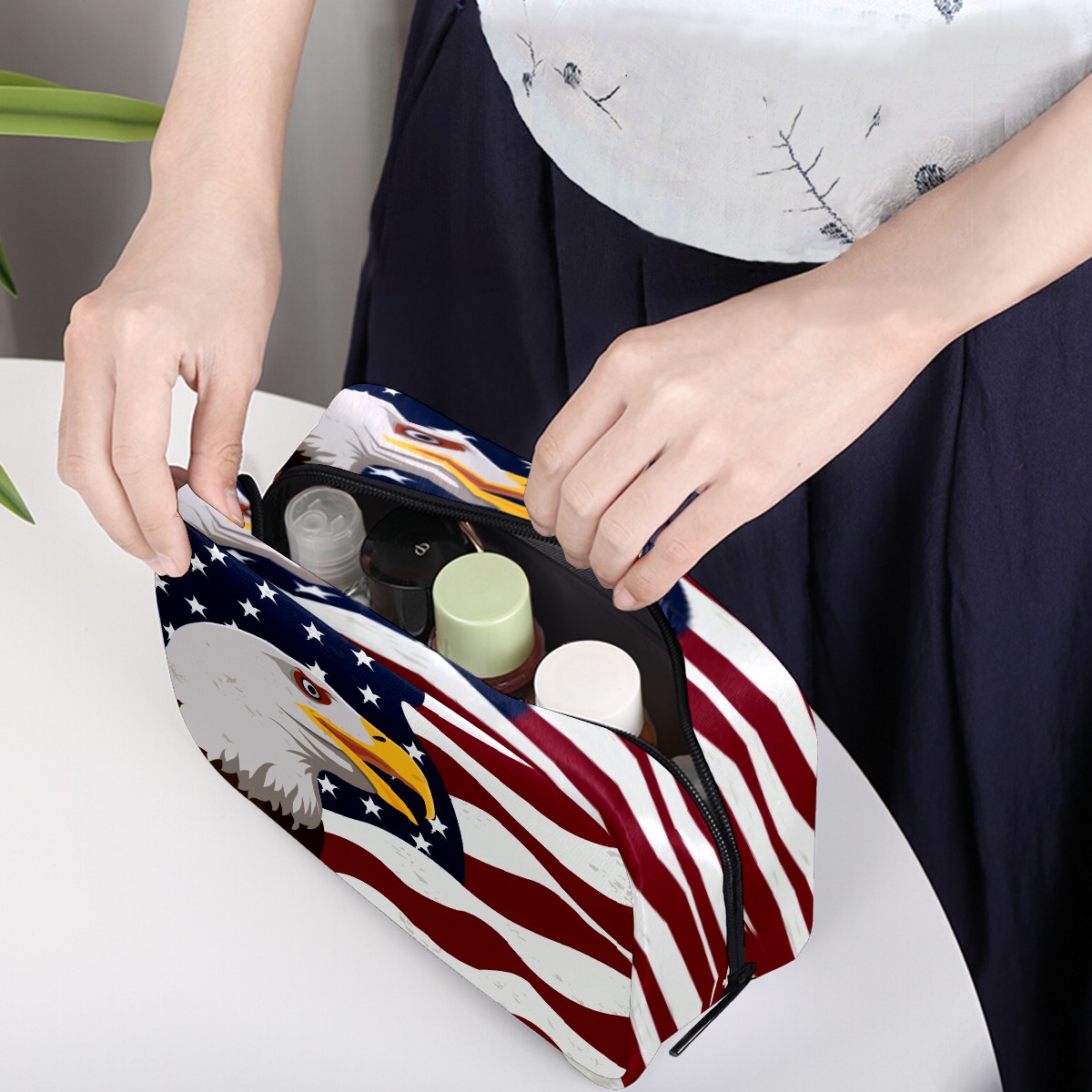 Cosmetic Bag for Women Girls Trave Makeup Bag Toiletry Case Pouch Accessories Organizer Retro Eagle With Usa Flag