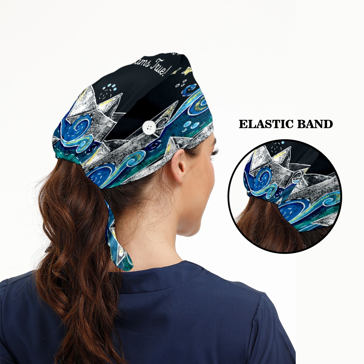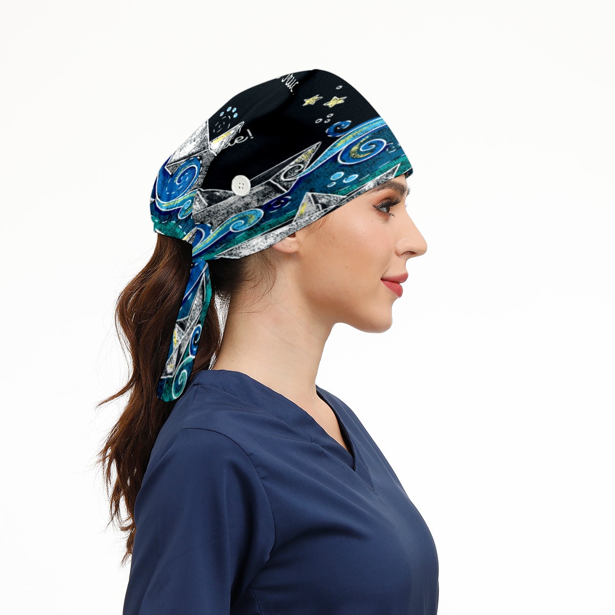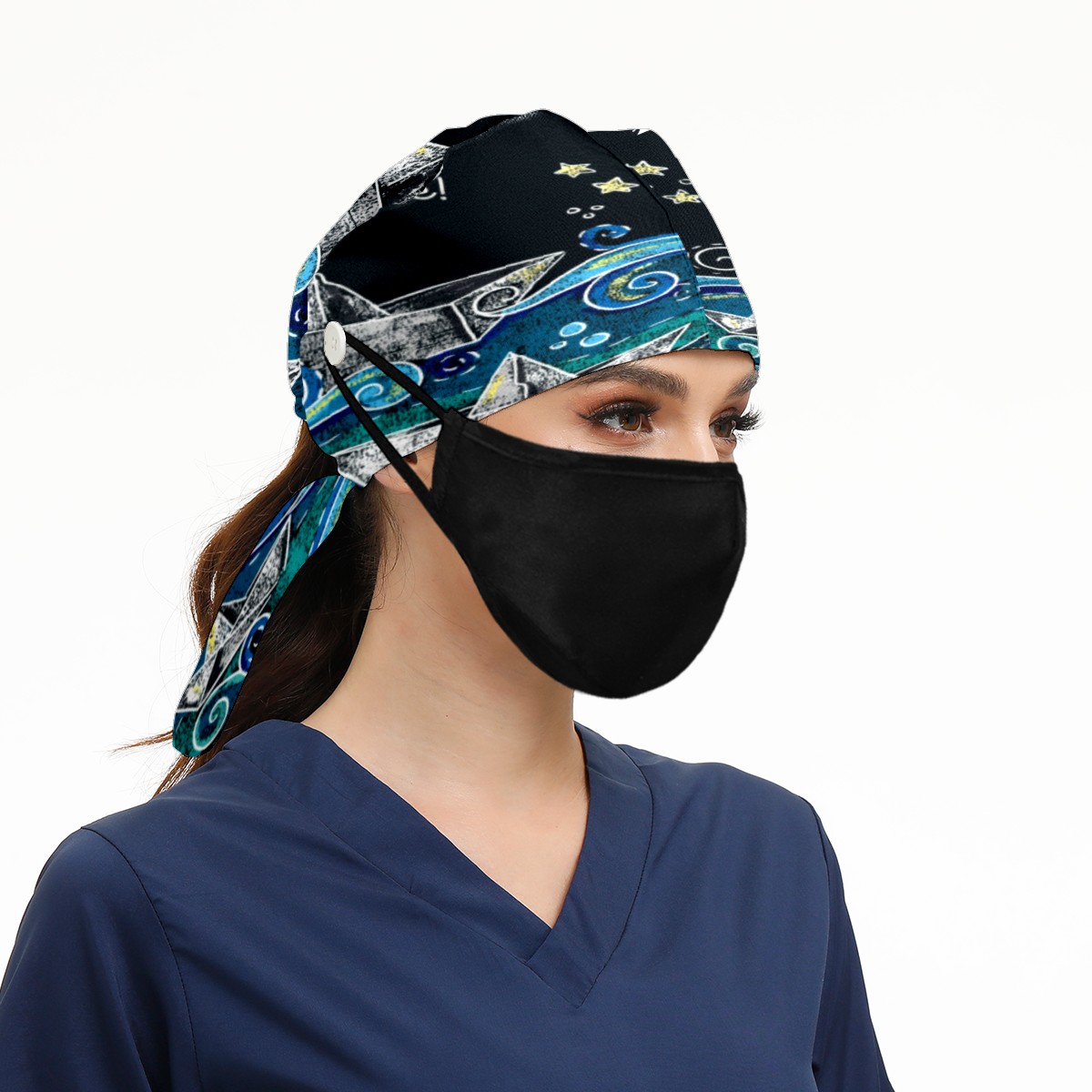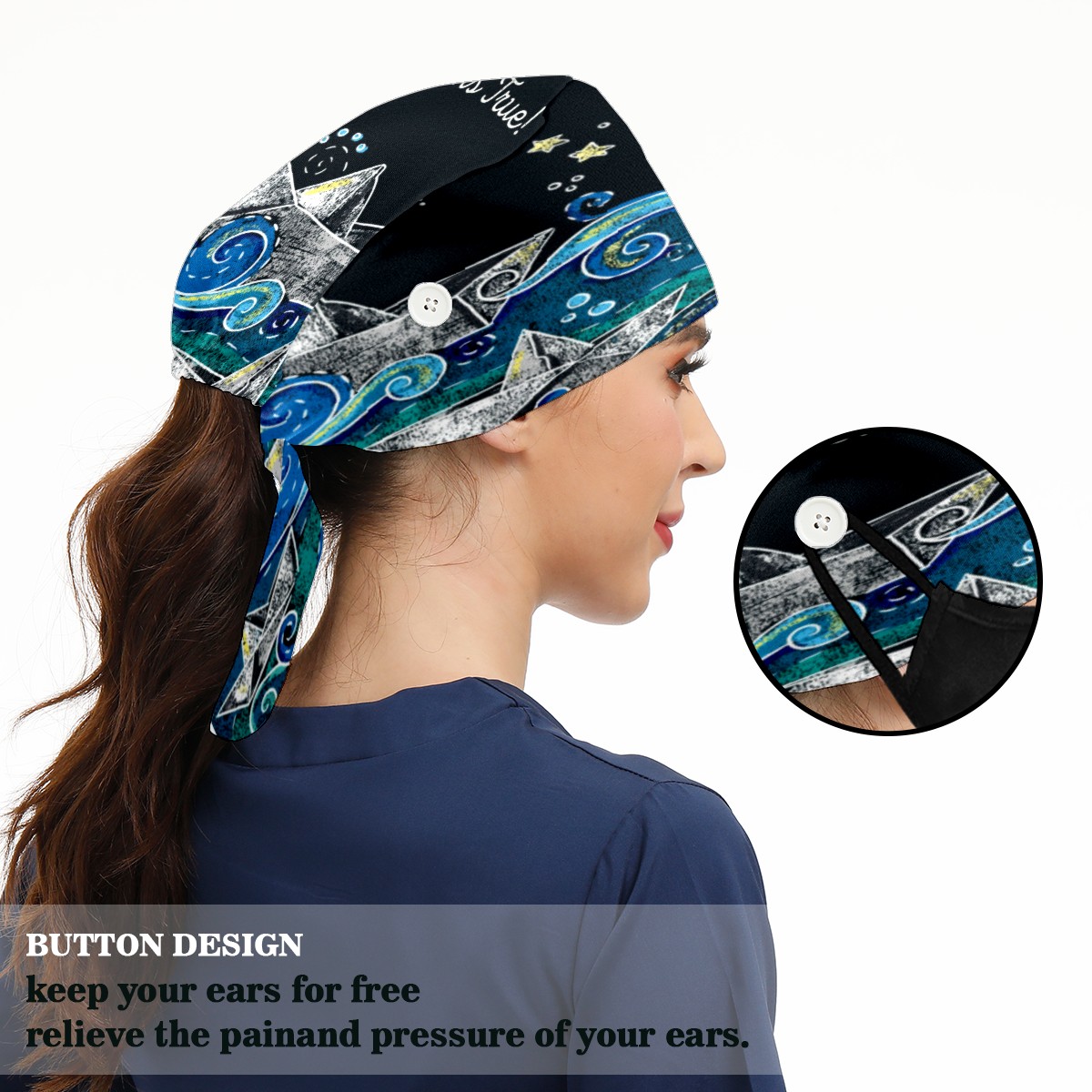 <p>Working cap with Sweatband and Button for Women Men</p><p>Material&nbsp;: 50% cotton+50% polyester</p><p>Size:&nbsp;One size fits most,&nbsp;suitable for both men and women.</p><p>Working Cap with Buttons Design:special&nbsp;design with buttons to protect ears for those who are wearing ma-sk. These new styles hats will allow you to put the straps around the buttons instead of your ears, make you feel more comfortable.</p><p>Sweat-absorbent towel cloth inside: Built-in&nbsp;100% cotton sweatband, keep the forehead clean after long time working.</p><p>Widely occasion: Widely used in beauty spa, house cleaning, cooking, sleeping, or for cos-play&nbsp;party.</p><p>Lovely pattern: lovely&nbsp;3D printed&nbsp;pattern,&nbsp;it's perfect for gift to you family&nbsp;and friends.</p>