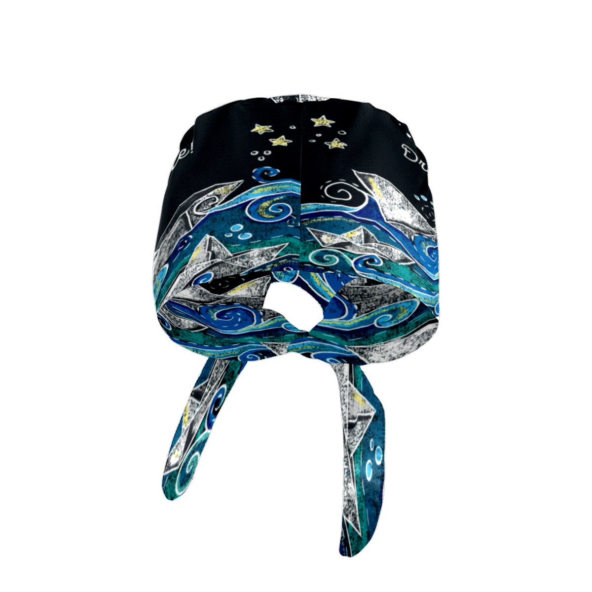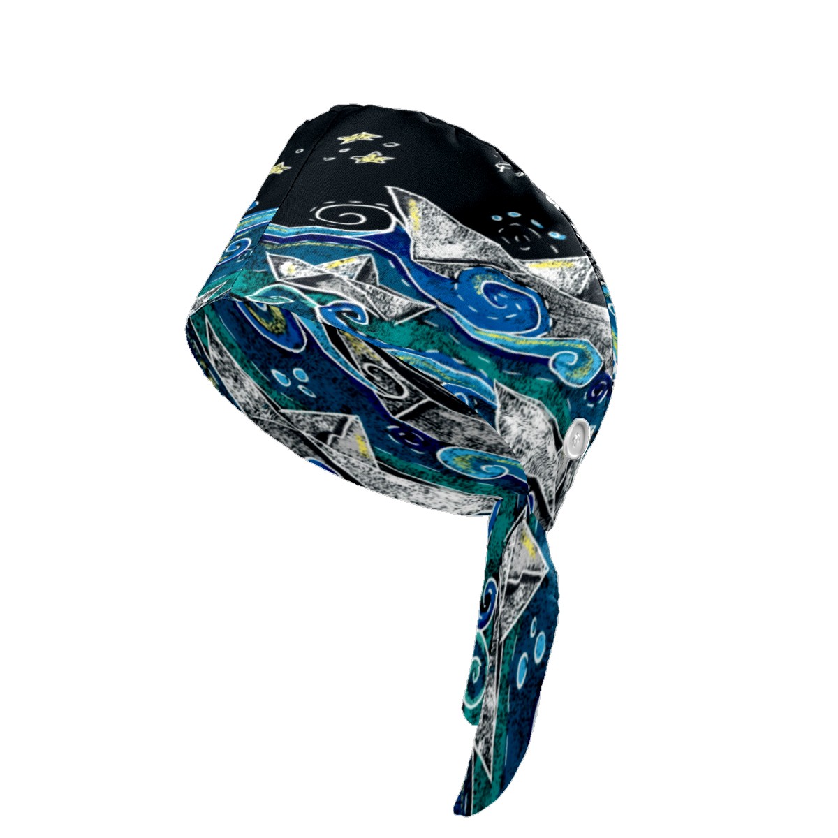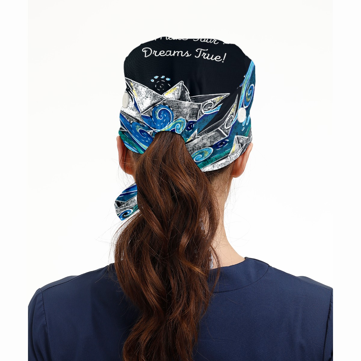 Creative Hand Drawn Paper Boat At Sea Working Cap Button and Sweatband Adjustable Elastic Head Cover Hair Tie Back Work Hats for Women Men