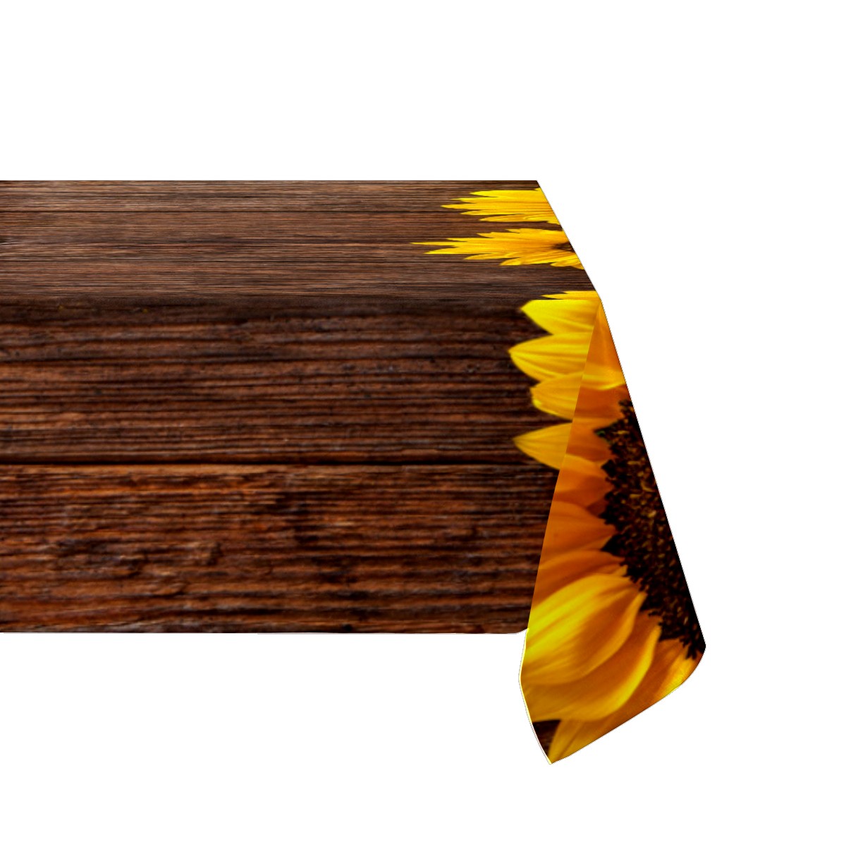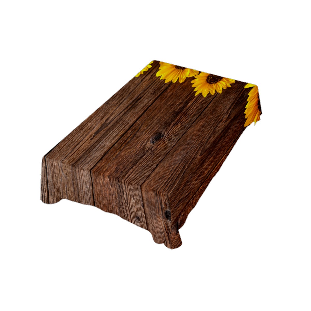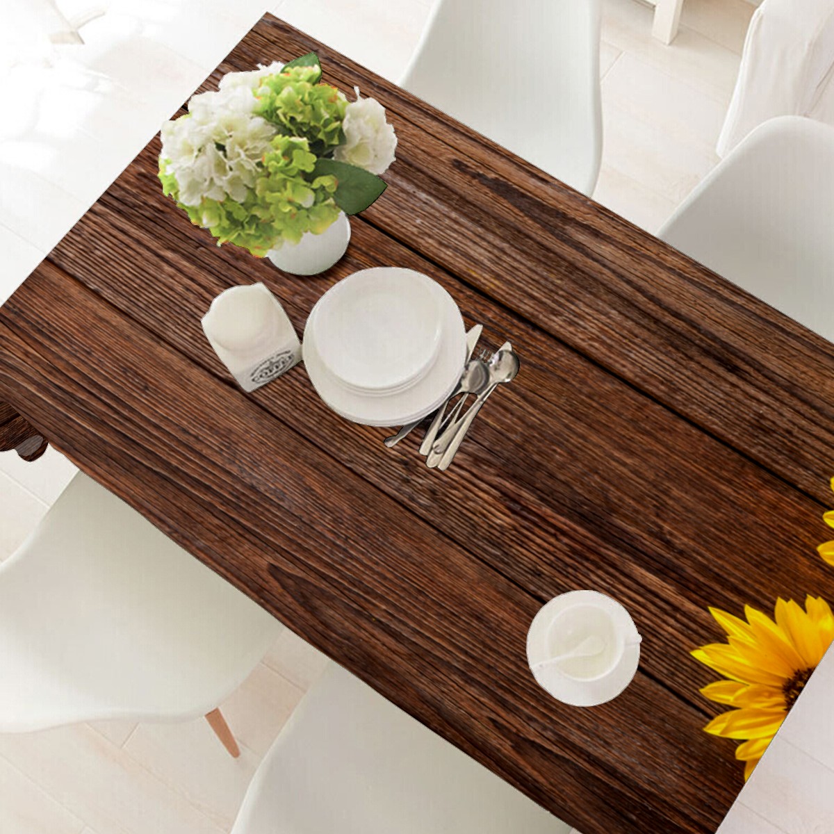 Rectangle Tablecloth Sunflowers Wood Print Tropical Table Cloth 54x54in Table Cover for Kitchen Dining Table Party Home Decoration Washable Table Runner