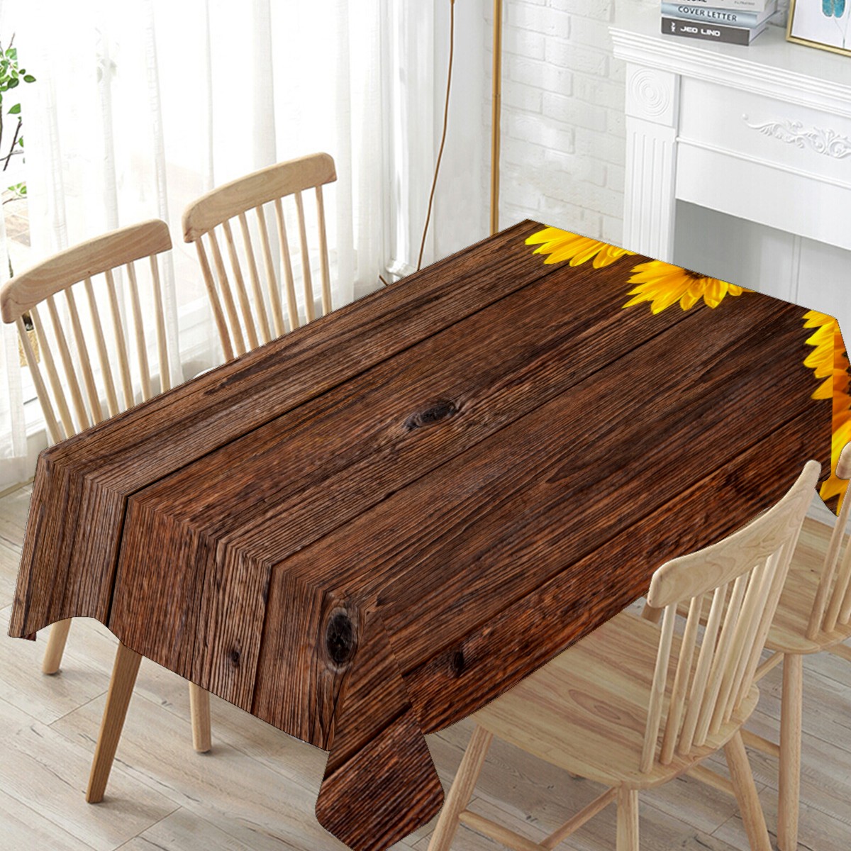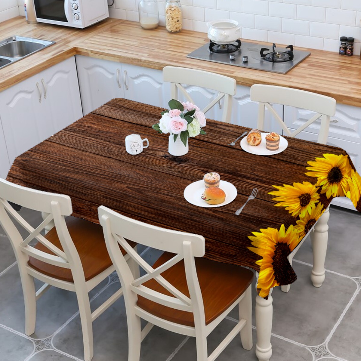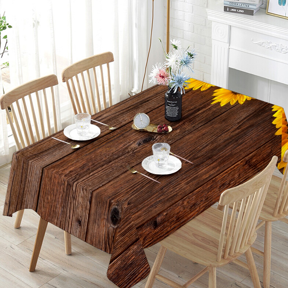 Rectangle Tablecloth Sunflowers Wood Print Tropical Table Cloth 54x54in Table Cover for Kitchen Dining Table Party Home Decoration Washable Table Runner
