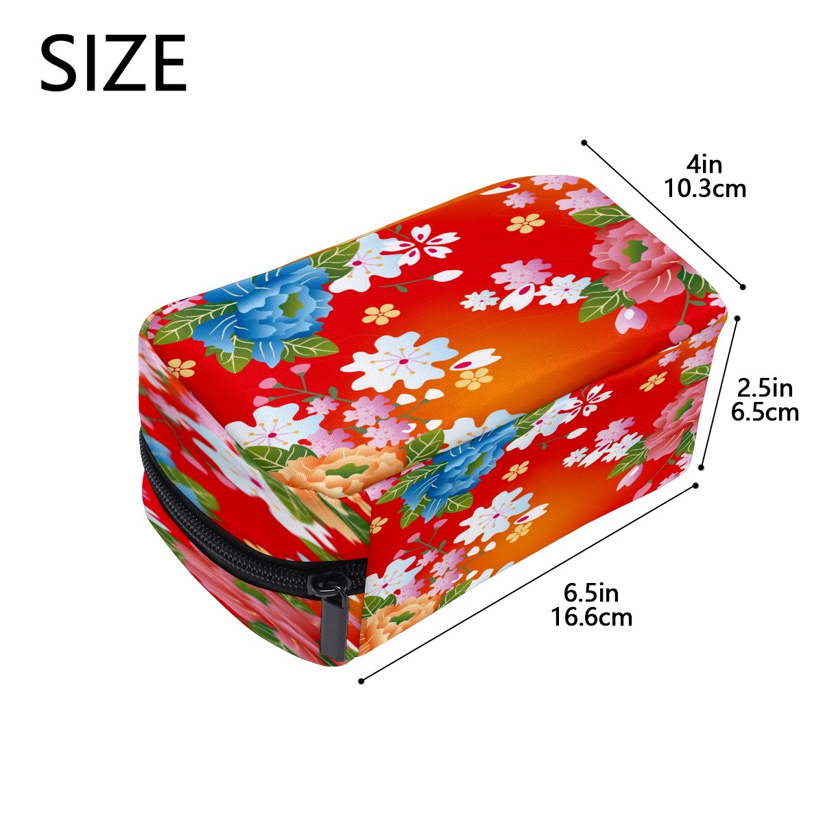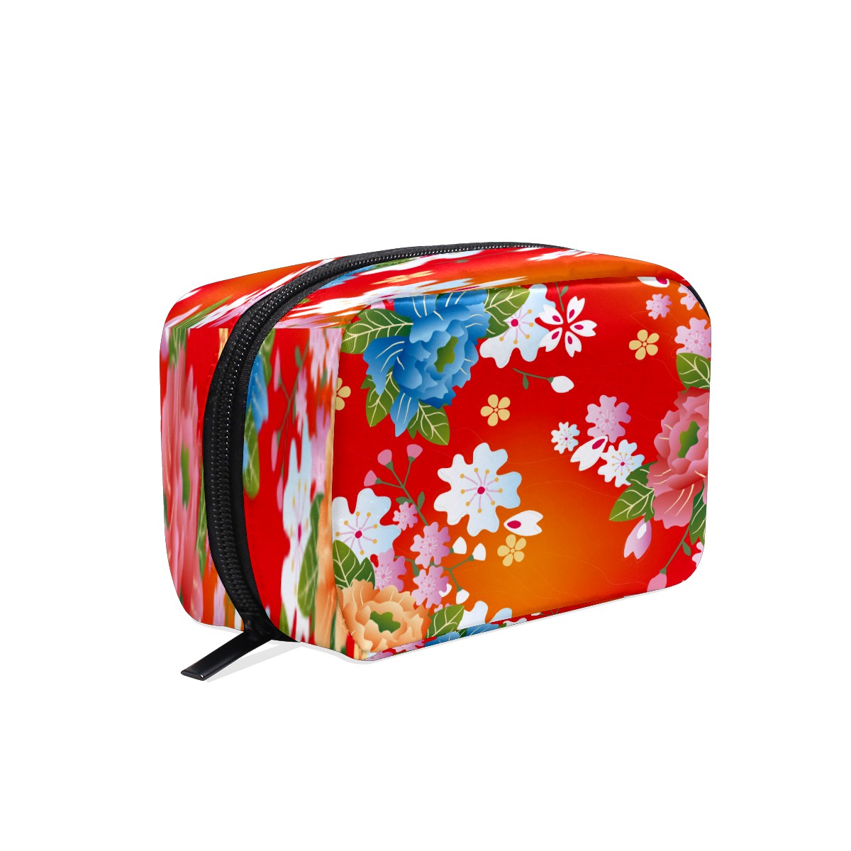 Cosmetic Bag for Women Girls Trave Makeup Bag Toiletry Case Pouch Accessories Organizer Red Japanese Cherry Blossom Floral Pattern