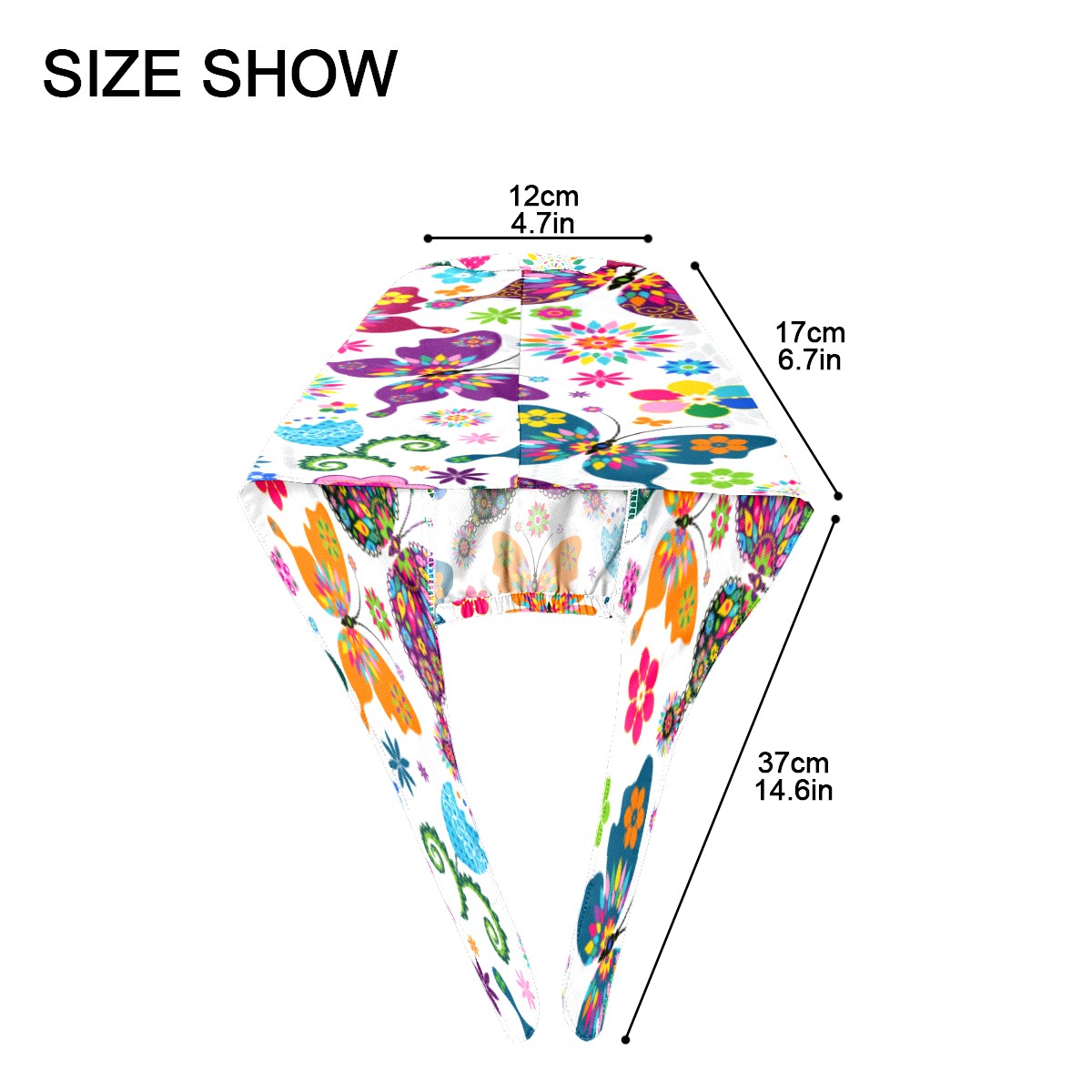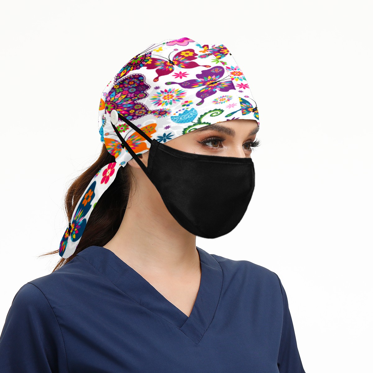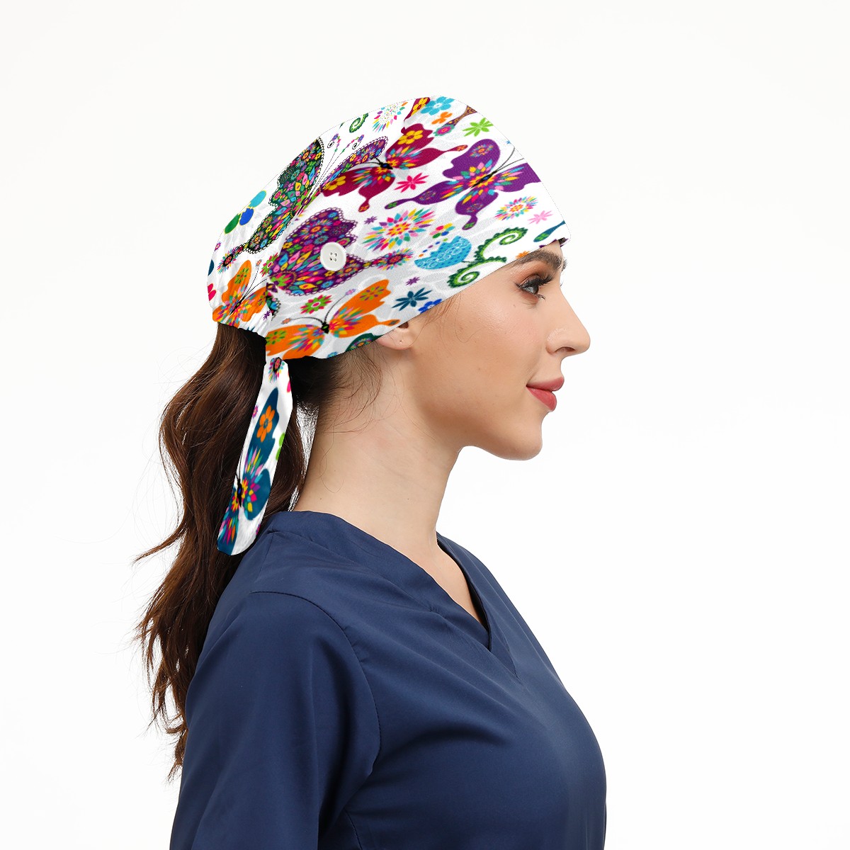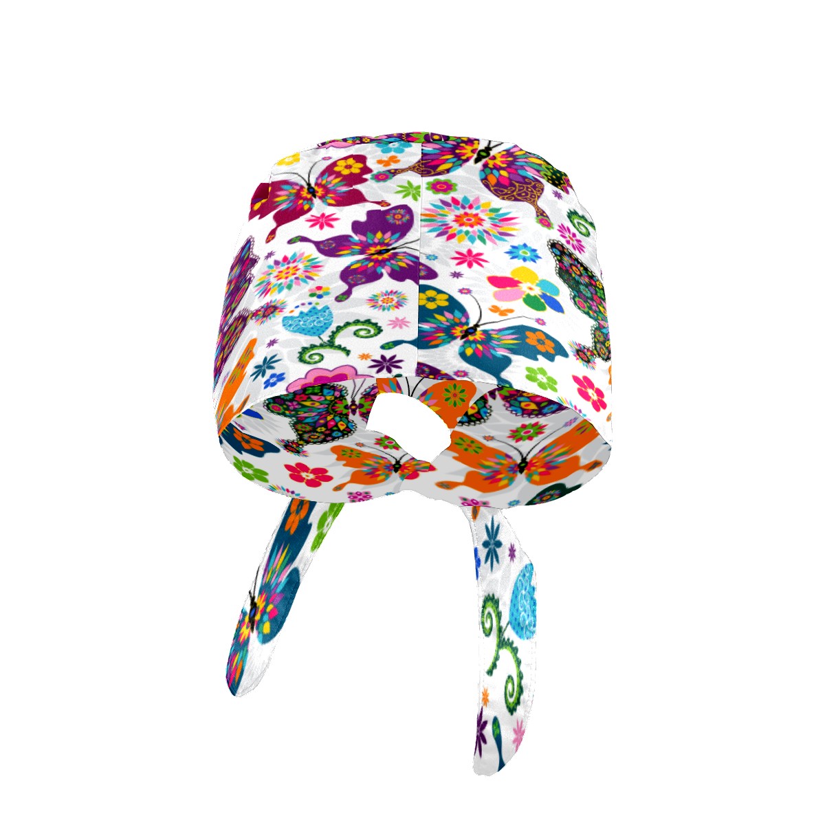 Colorful Butterfly Flower Pattern Working Cap Button and Sweatband Adjustable Elastic Head Cover Hair Tie Back Work Hats for Women Men