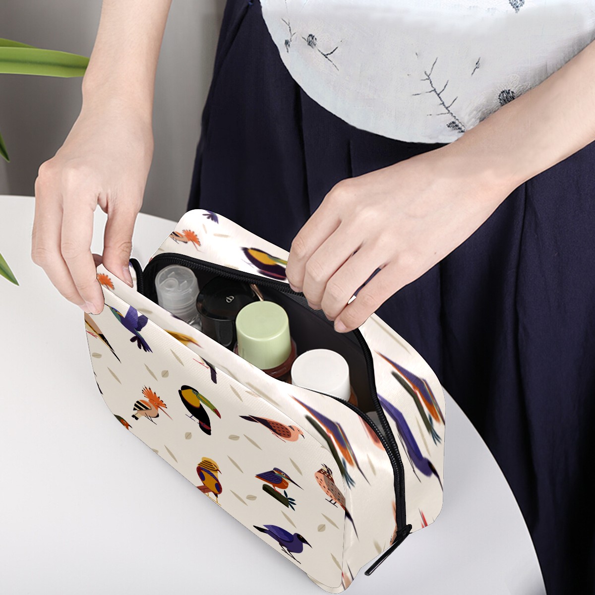 Cosmetic Bag for Women Girls Trave Makeup Bag Toiletry Case Pouch Accessories Organizer Retro Birds Pattern Colorful Classical