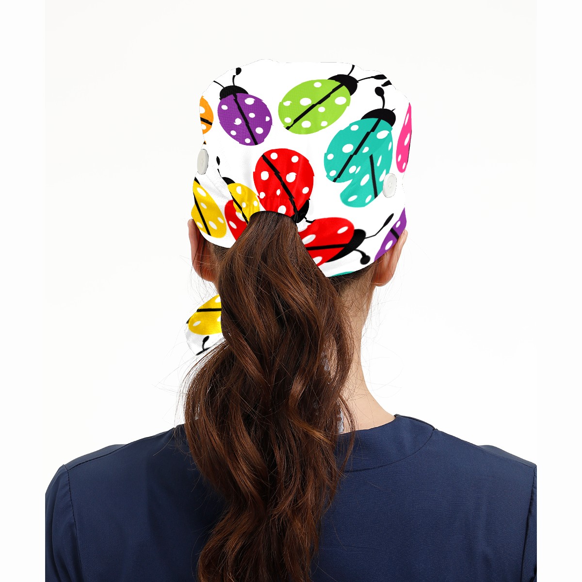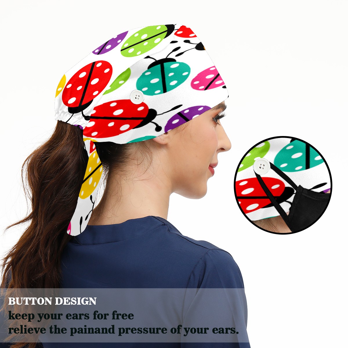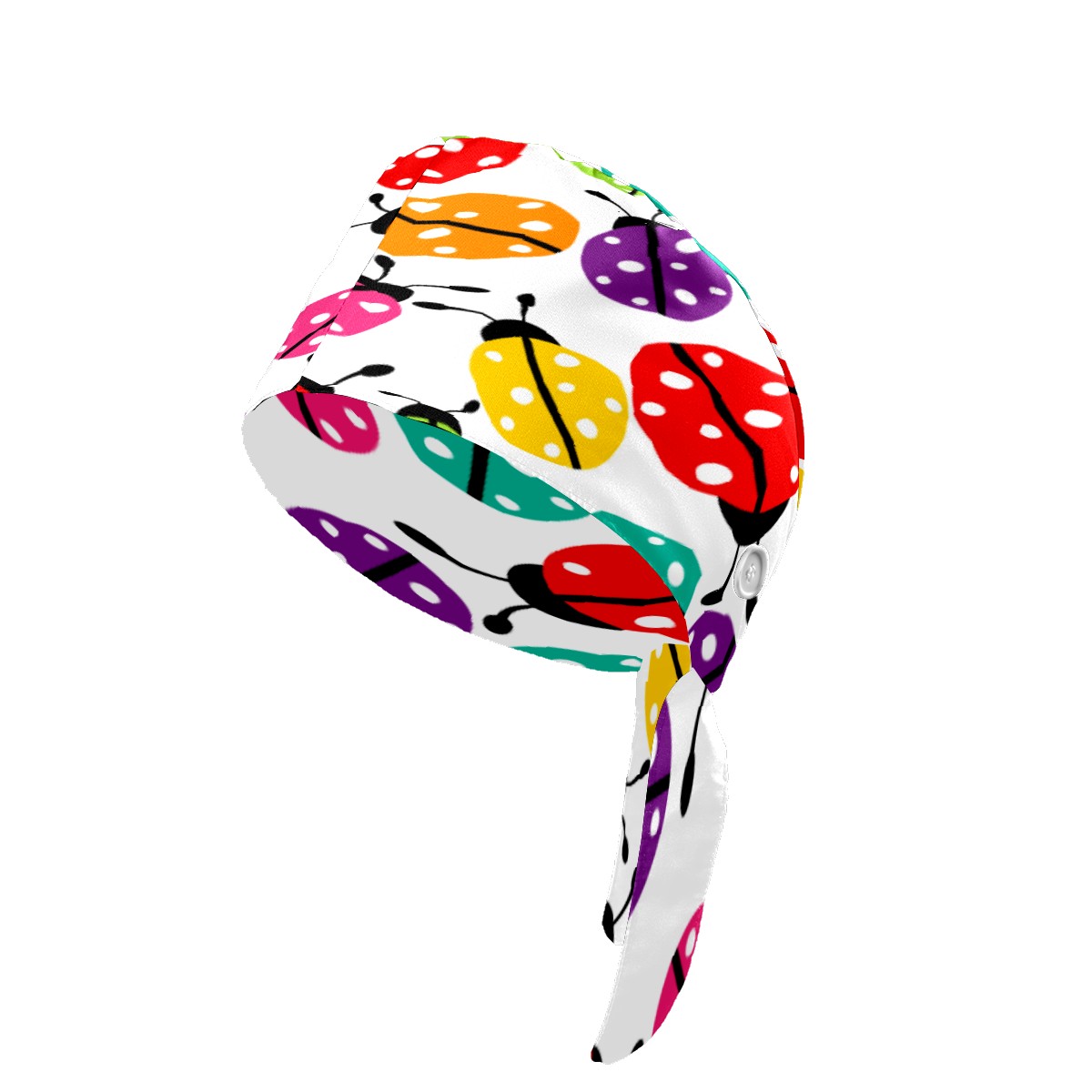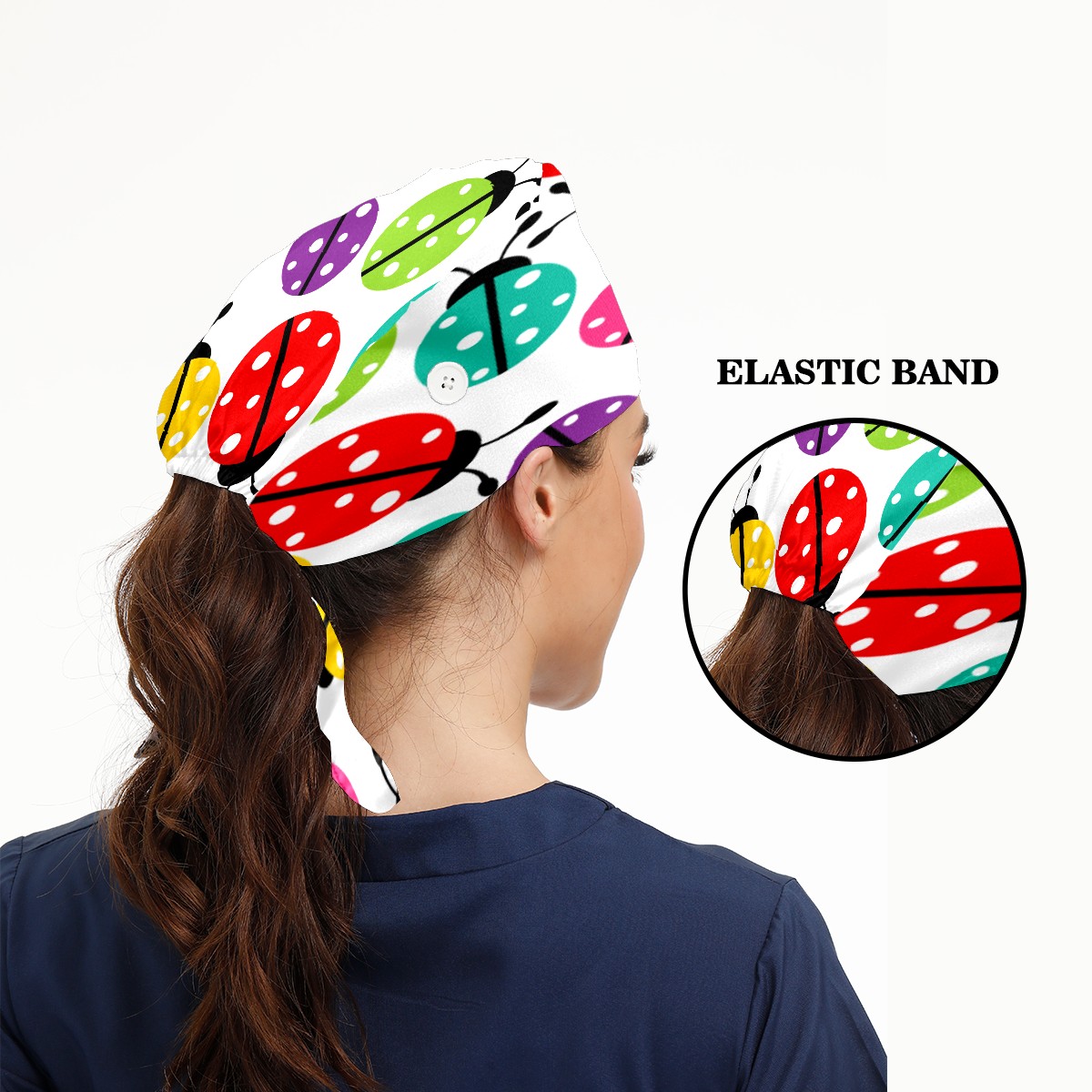 Colorful Cartoon Insect Ladybirds Pattern Working Cap Button and Sweatband Adjustable Elastic Head Cover Hair Tie Back Work Hats for Women Men
