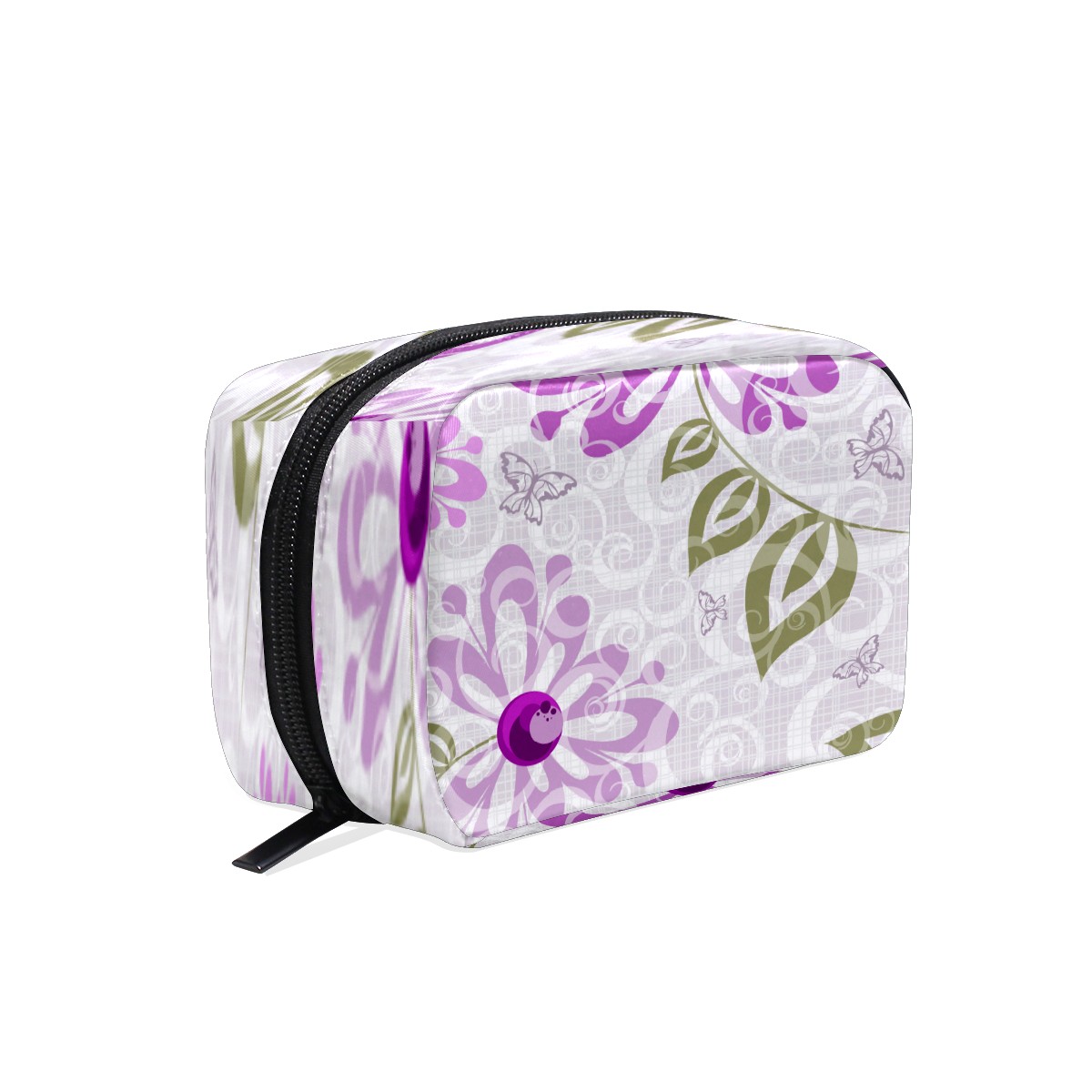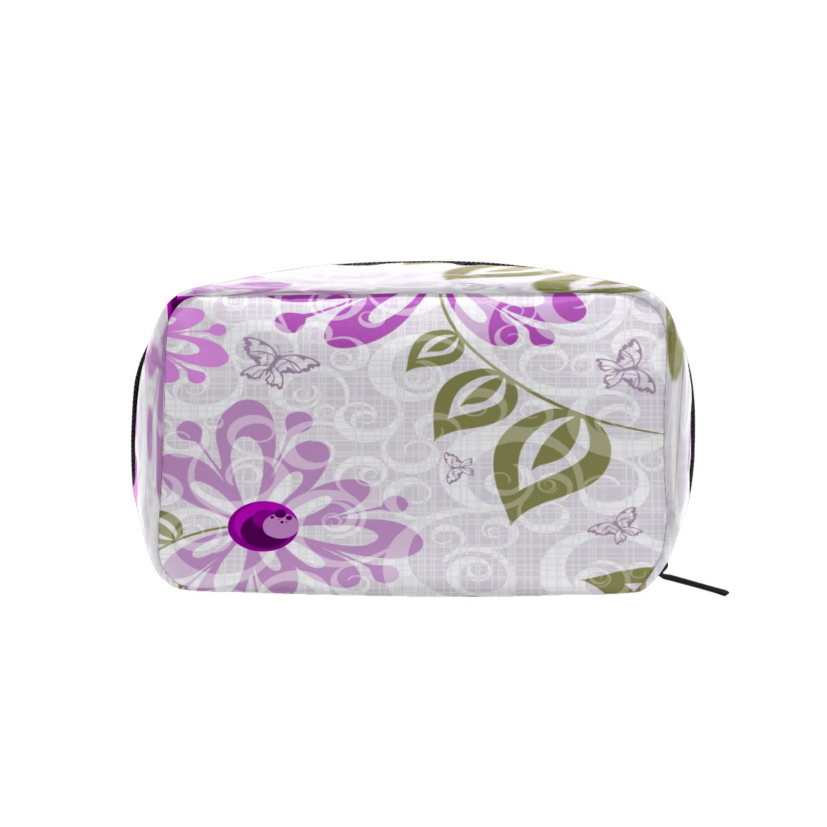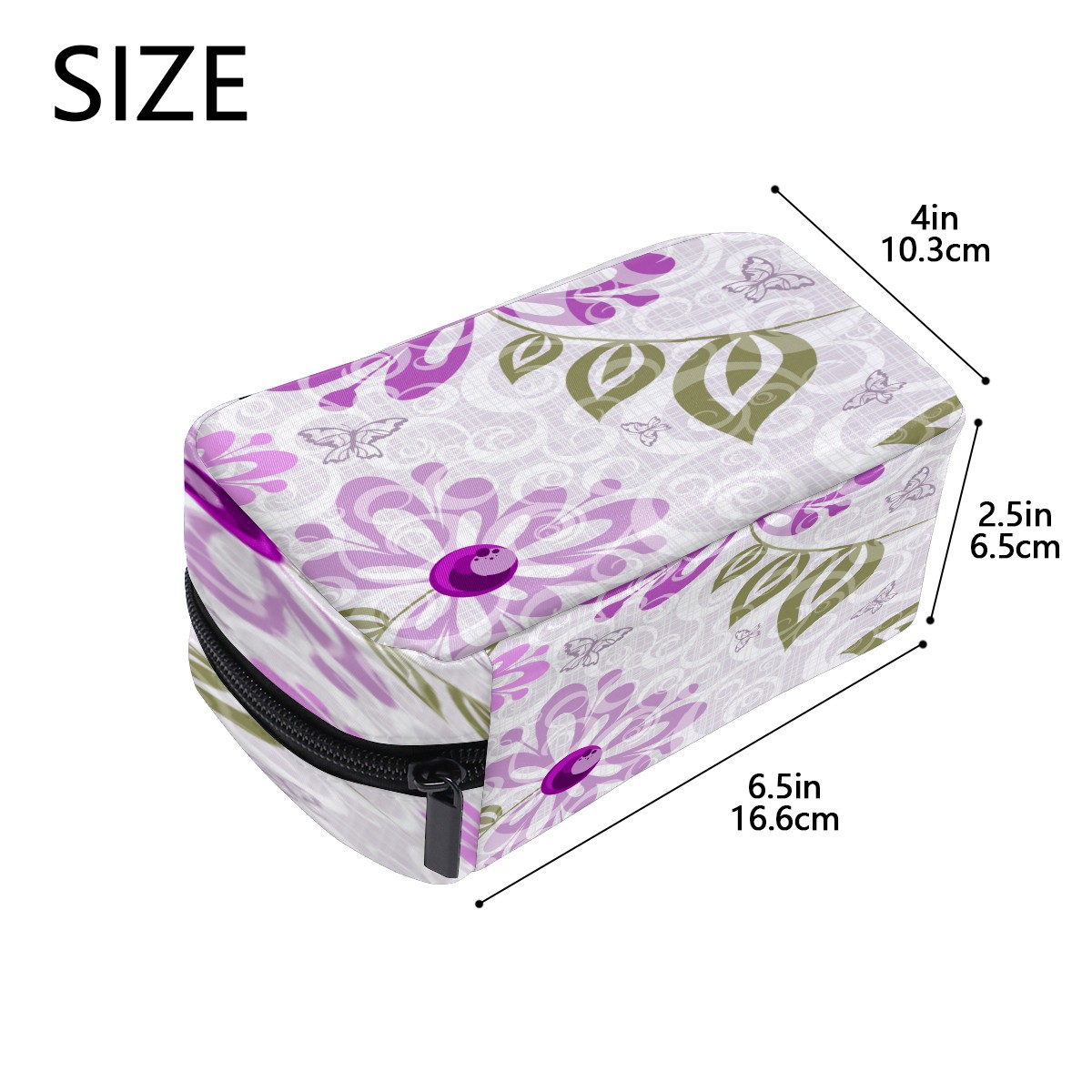 Cosmetic Bag for Women Girls Trave Makeup Bag Toiletry Case Pouch Accessories Organizer Retro Beautiful Purple Flower