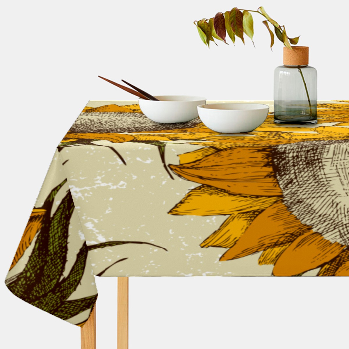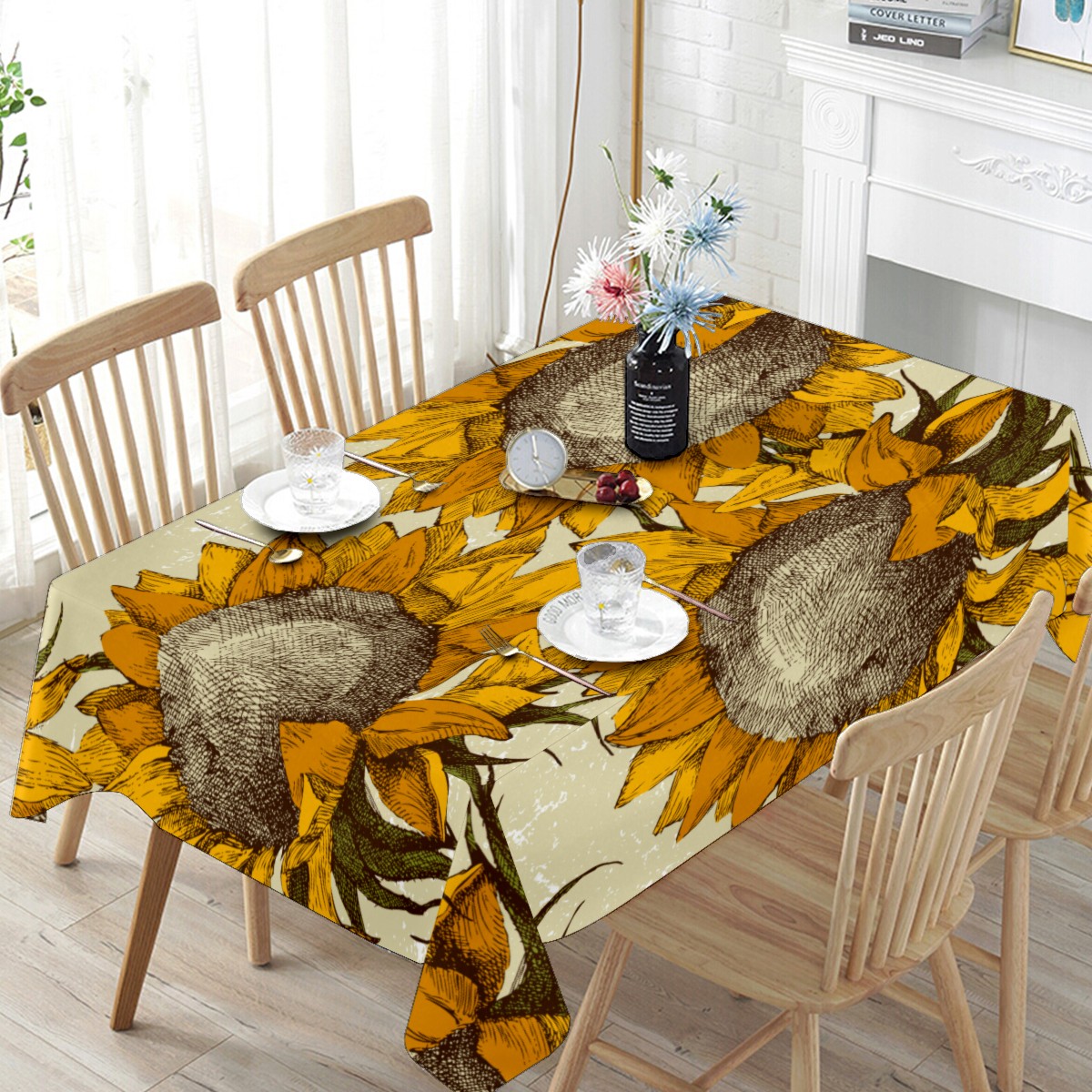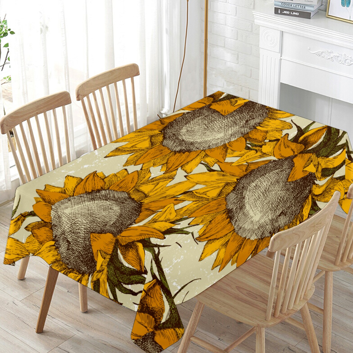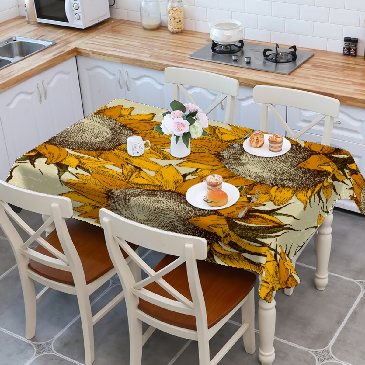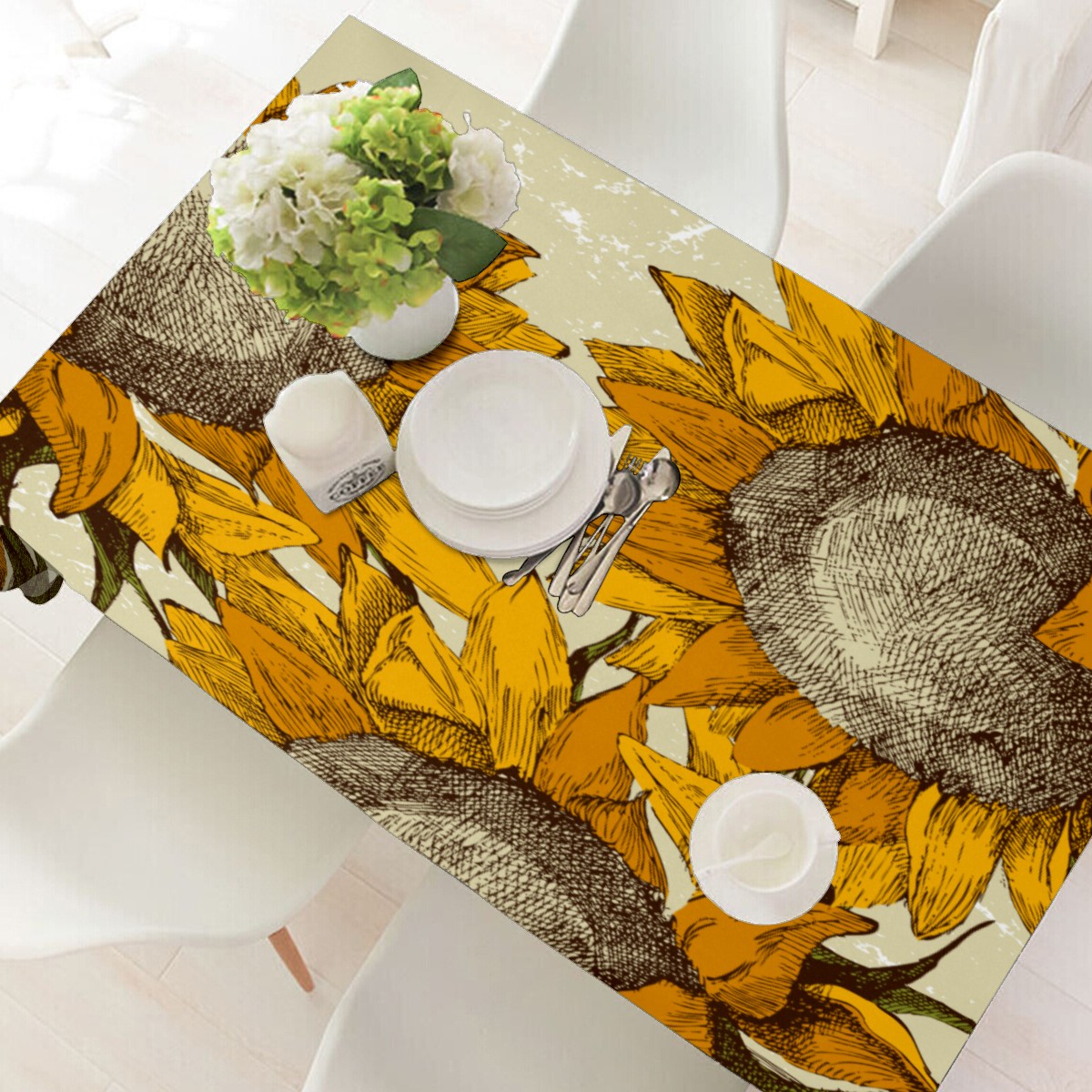Rectangle Tablecloth Sunflowers Art Vintage Floral Table Cloth 54x54in Table Cover for Kitchen Dining Table Party Home Decoration Washable Table Runner
