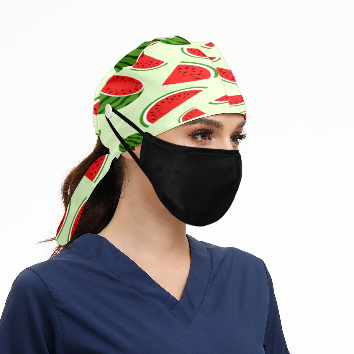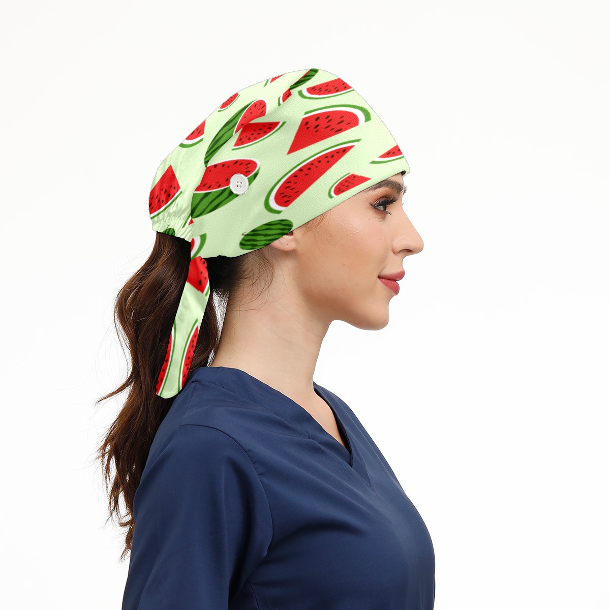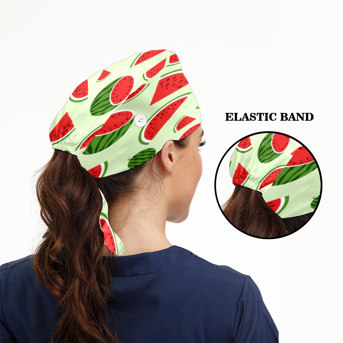 Watermelon Working Cap Button and Sweatband Adjustable Elastic Head Cover Hair Tie Back Work Hats for Women Men