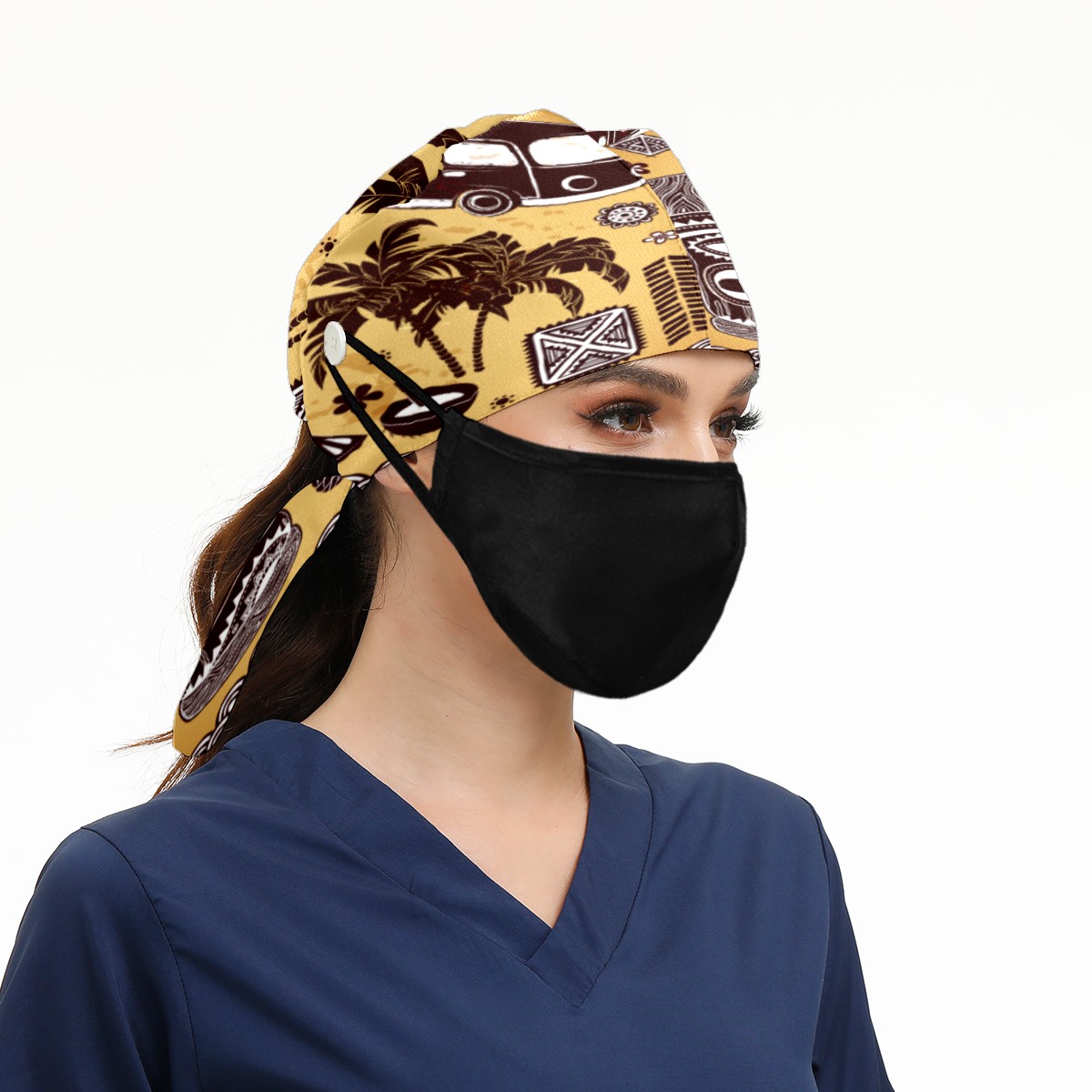 <p>Working cap with Sweatband and Button for Women Men</p><p>Material&nbsp;: 50% cotton+50% polyester</p><p>Size:&nbsp;One size fits most,&nbsp;suitable for both men and women.</p><p>Working Cap with Buttons Design:special&nbsp;design with buttons to protect ears for those who are wearing ma-sk. These new styles hats will allow you to put the straps around the buttons instead of your ears, make you feel more comfortable.</p><p>Sweat-absorbent towel cloth inside: Built-in&nbsp;100% cotton sweatband, keep the forehead clean after long time working.</p><p>Widely occasion: Widely used in beauty spa, house cleaning, cooking, sleeping, or for cos-play&nbsp;party.</p><p>Lovely pattern: lovely&nbsp;3D printed&nbsp;pattern,&nbsp;it's perfect for gift to you family&nbsp;and friends.</p>