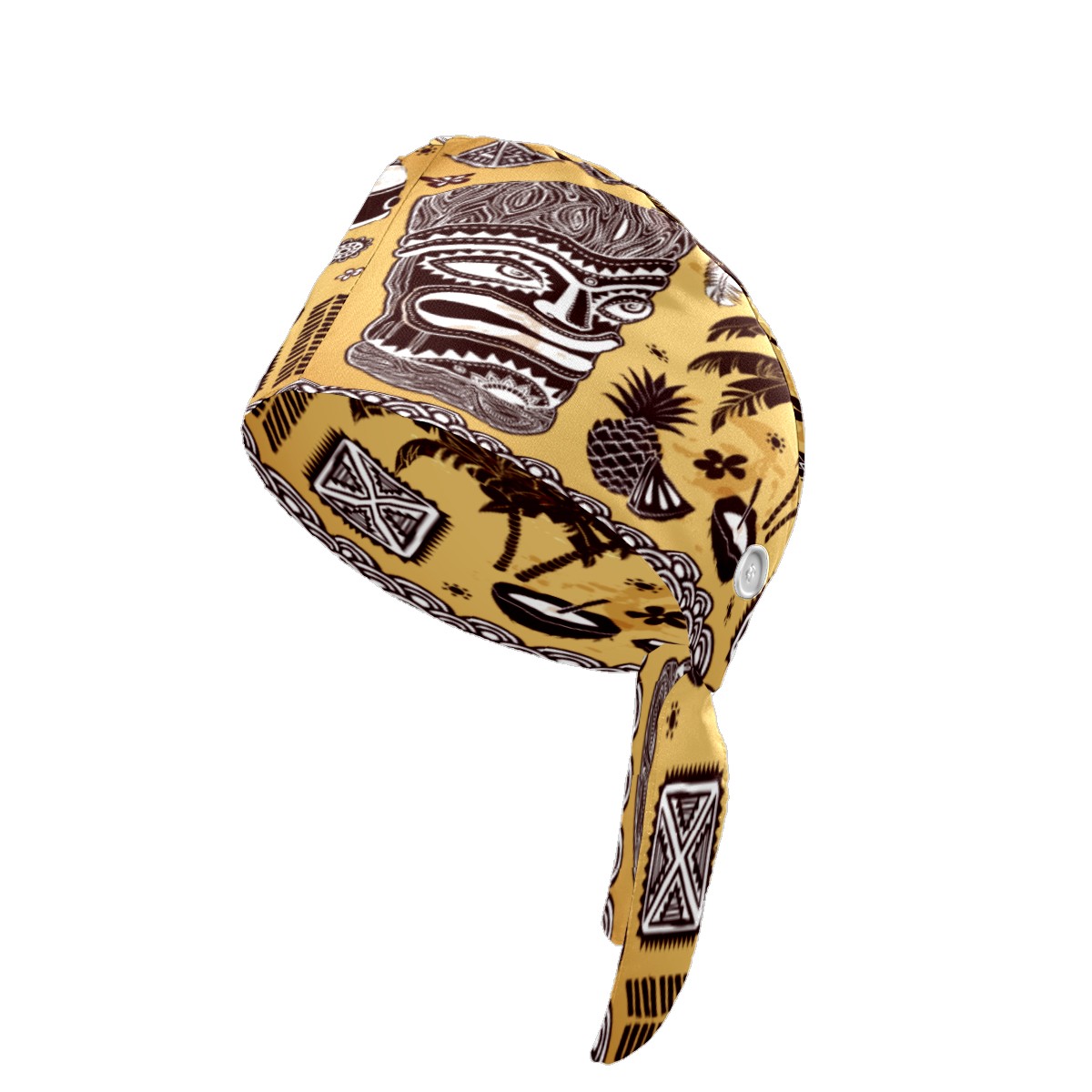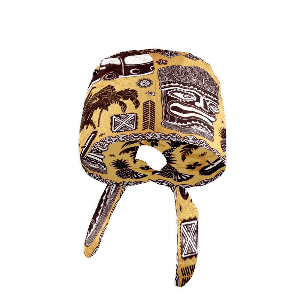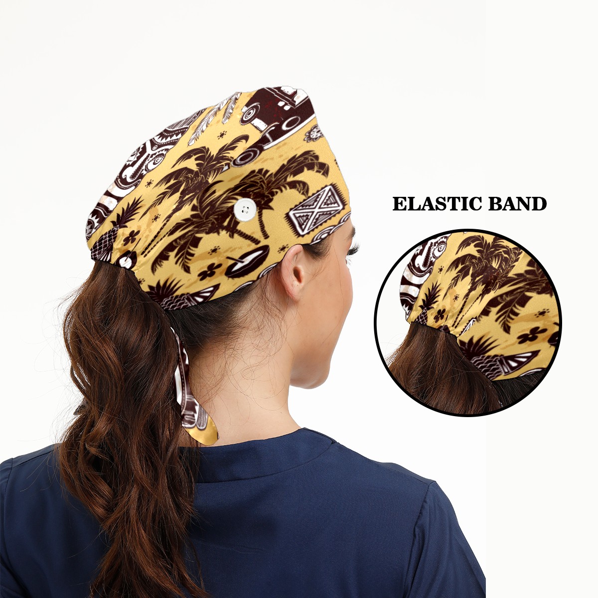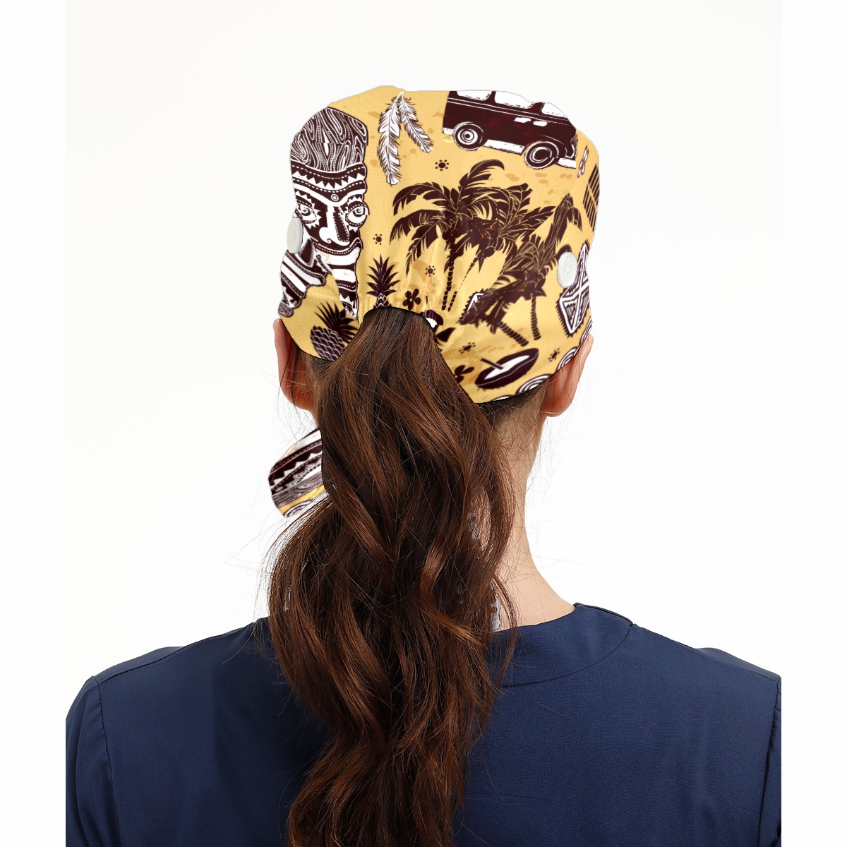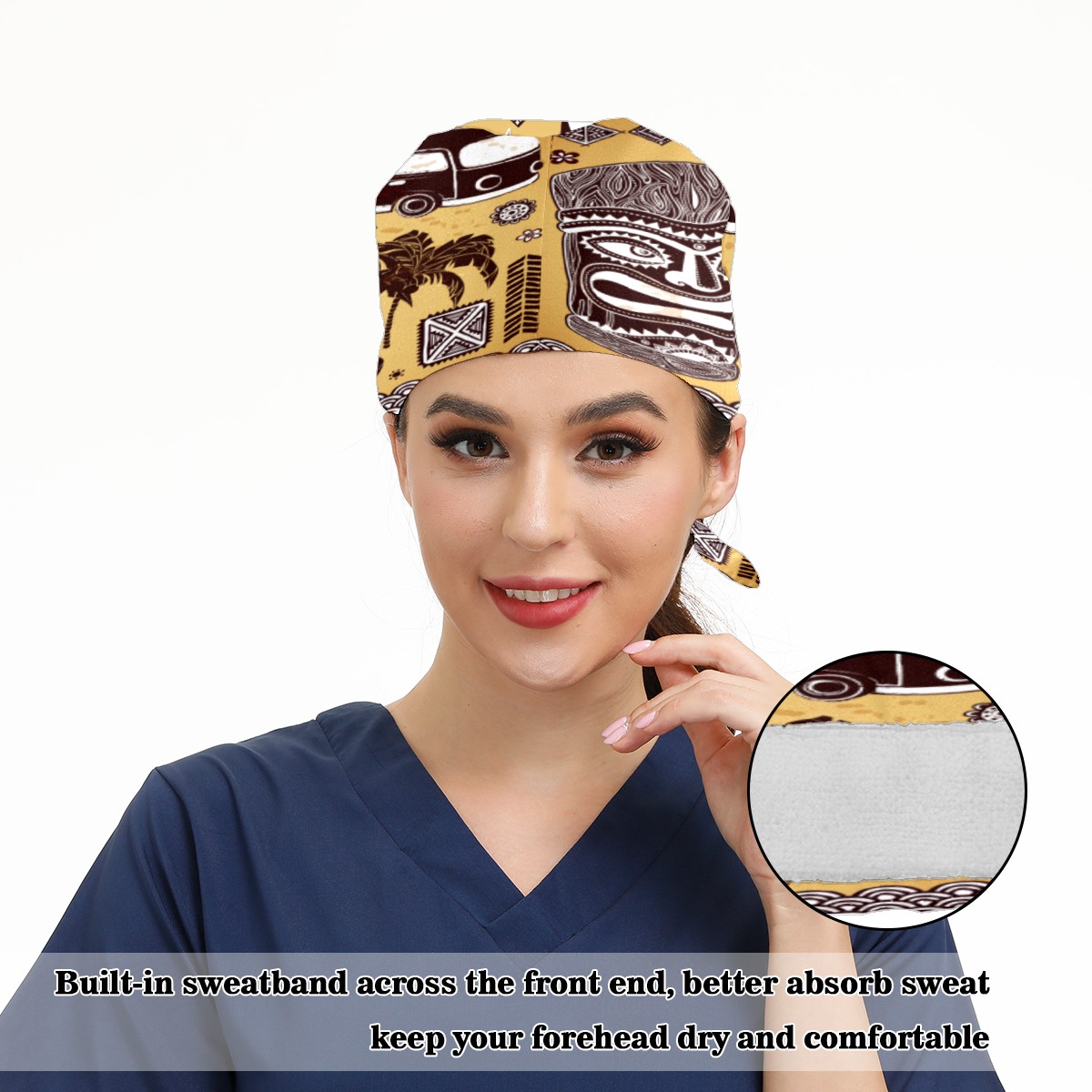 Vintage Aloha Tiki Icons Working Cap Button and Sweatband Adjustable Elastic Head Cover Hair Tie Back Work Hats for Women Men