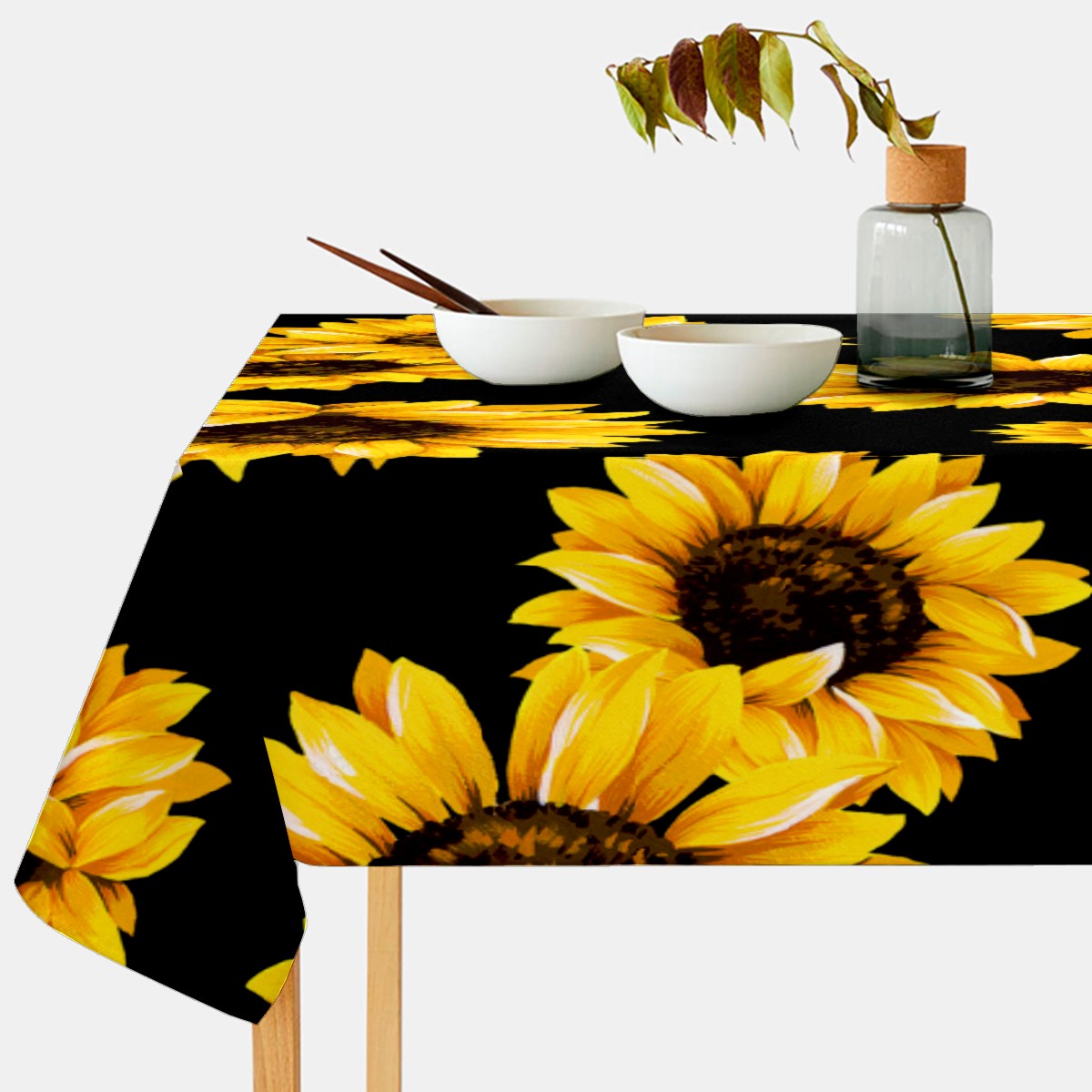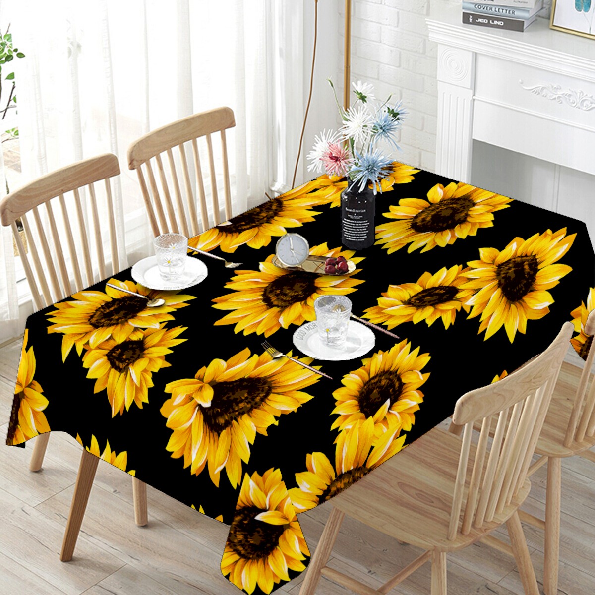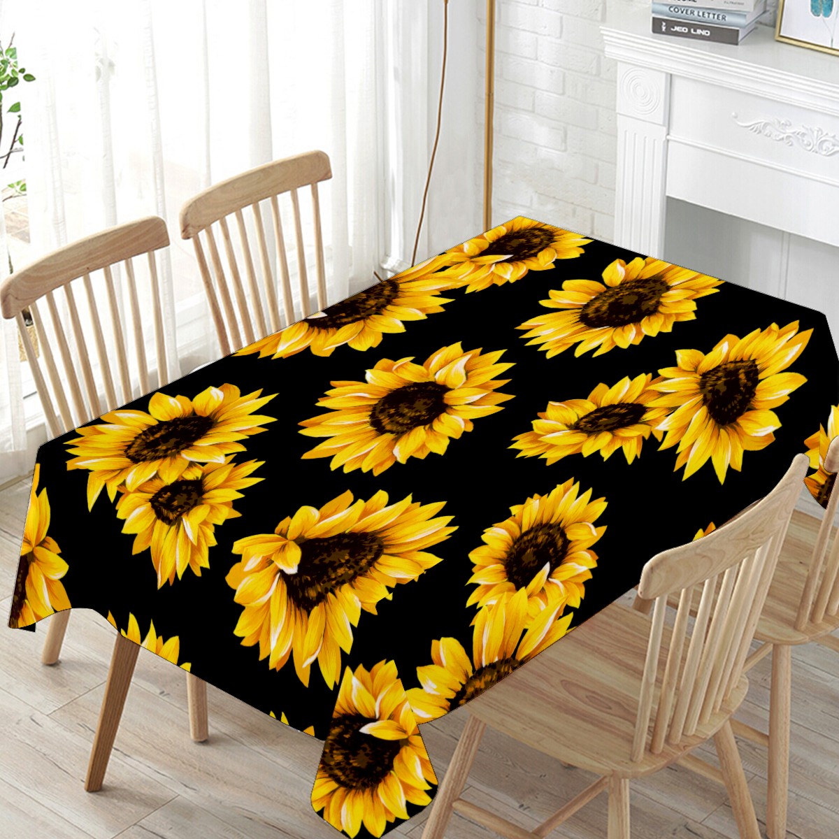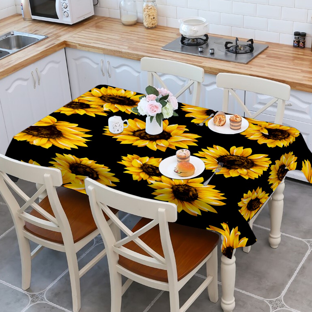 Rectangle Tablecloth Sunflower 3D Floral Vintage Table Cloth 54x54in Table Cover for Kitchen Dining Table Party Home Decoration Washable Table Runner