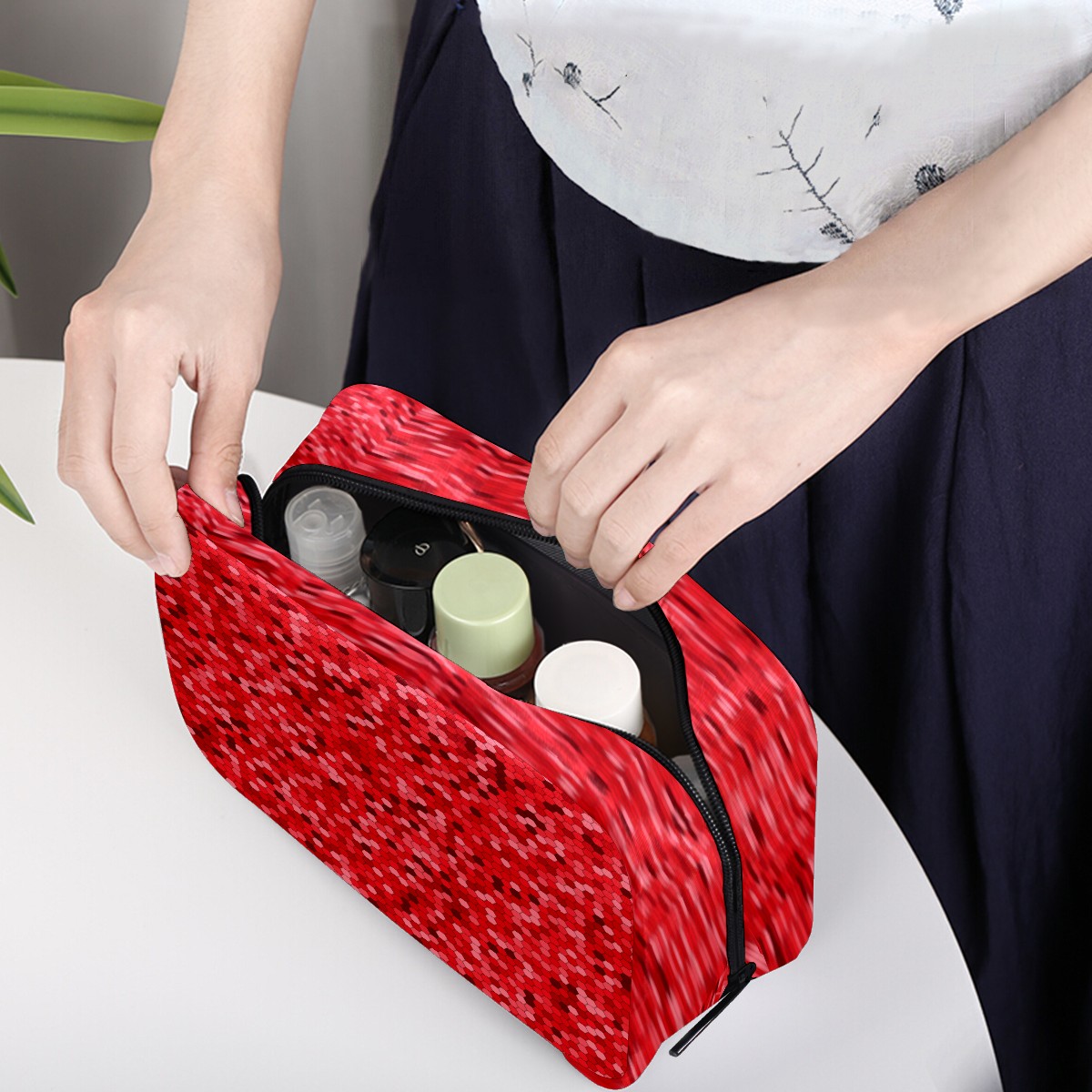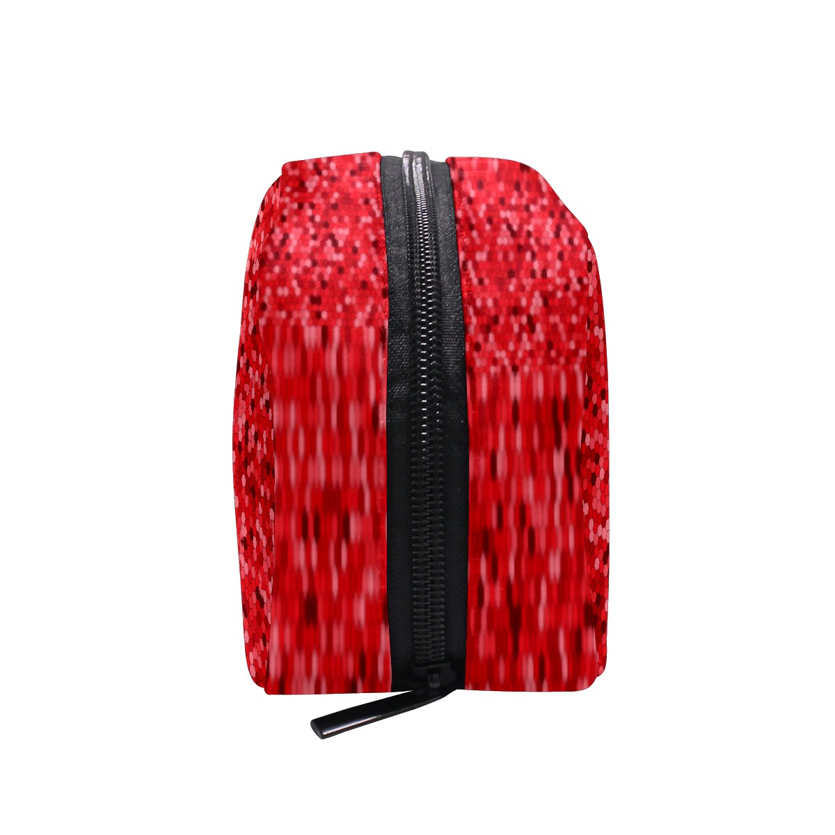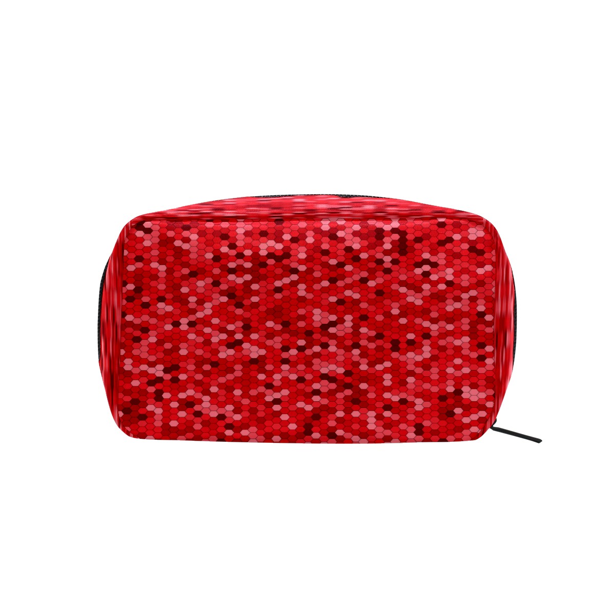 Cosmetic Bag for Women Girls Trave Makeup Bag Toiletry Case Pouch Accessories Organizer Red Sparkly Glitter Geometric Pattern