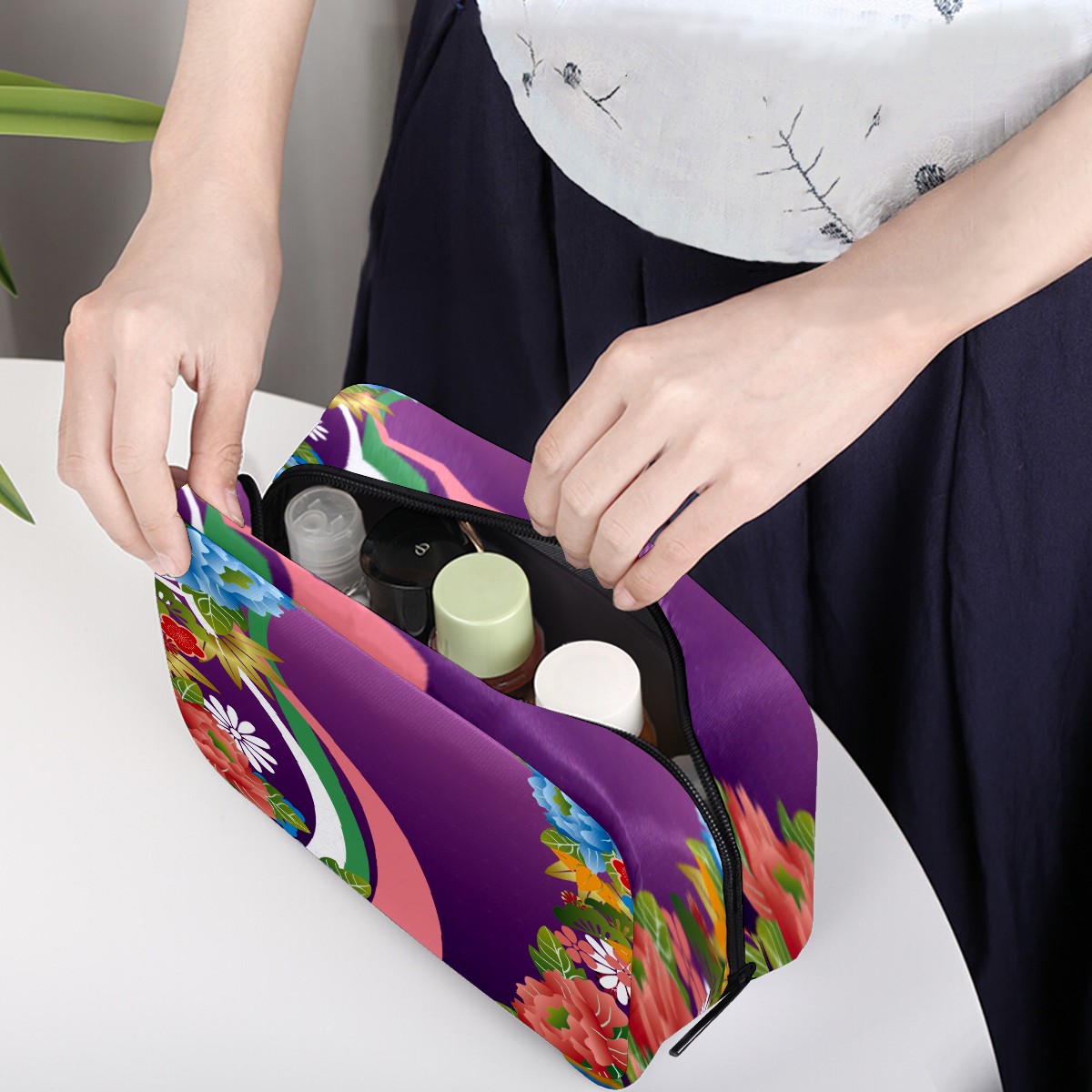 Cosmetic Bag for Women Girls Trave Makeup Bag Toiletry Case Pouch Accessories Organizer Purple Japanese Cherry Blossom Floral Pattern