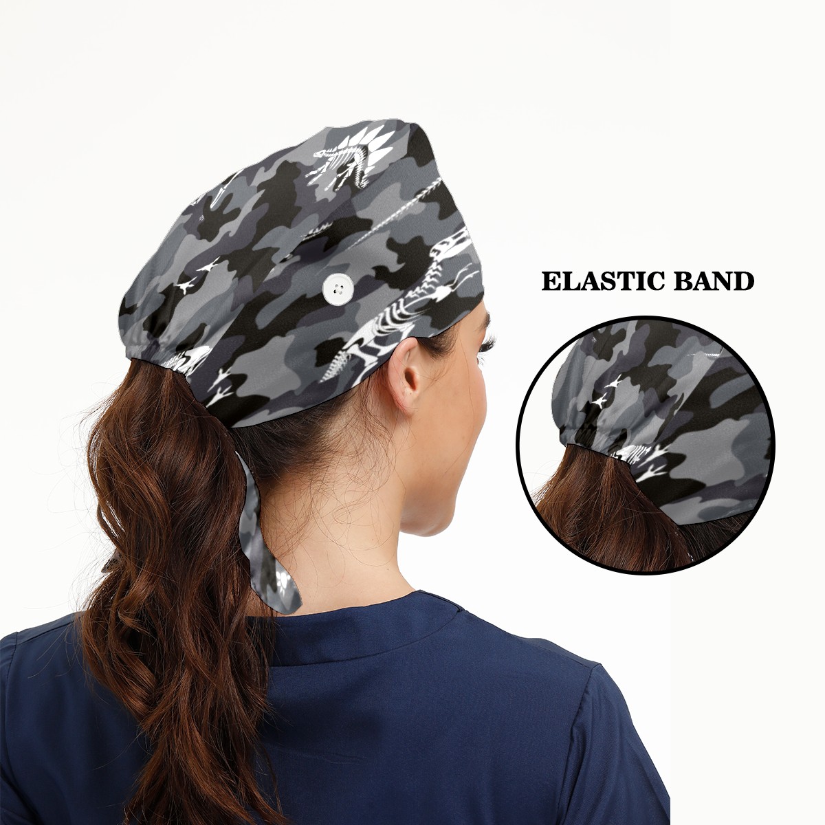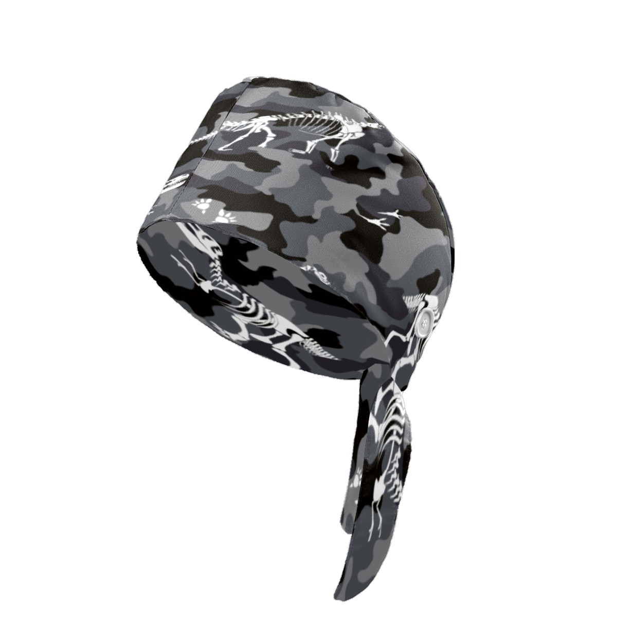 Grey Camouflage Dinosaur Working Cap Button and Sweatband Adjustable Elastic Head Cover Hair Tie Back Work Hats for Women Men