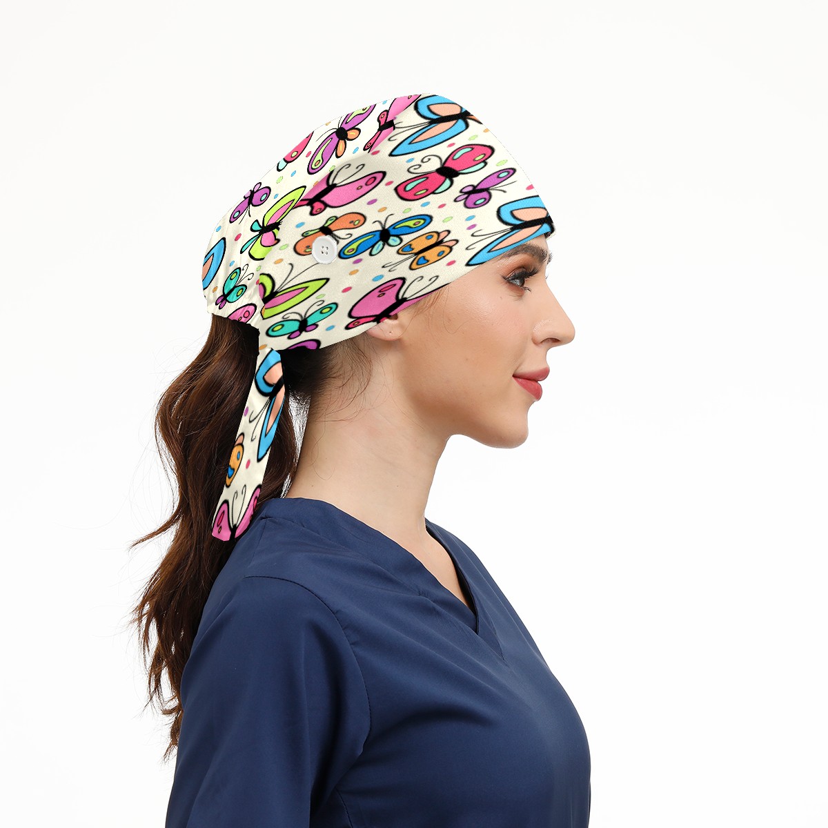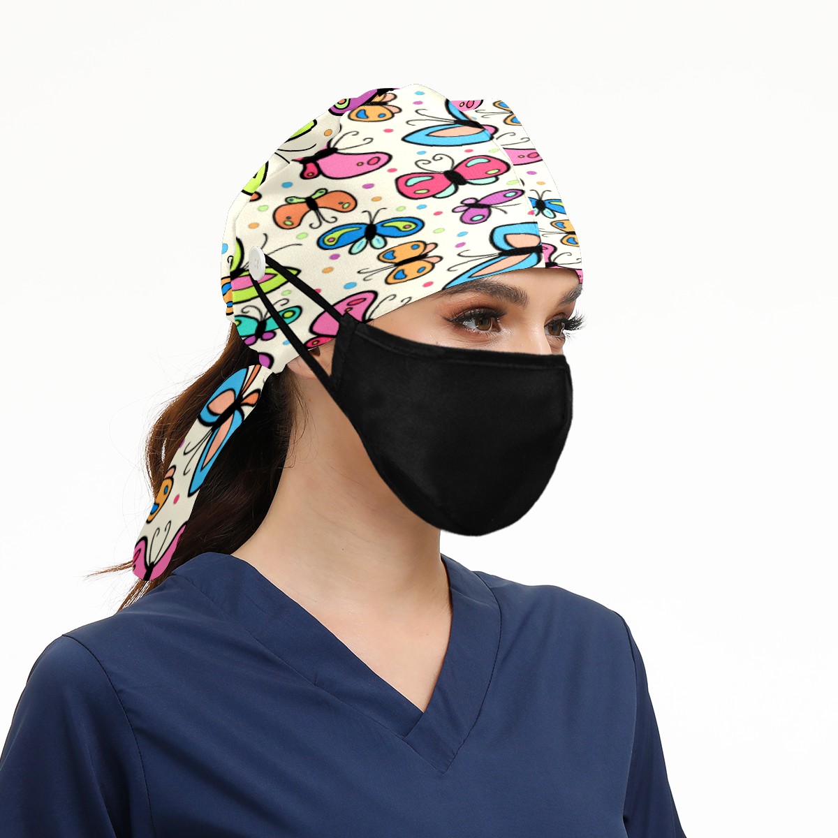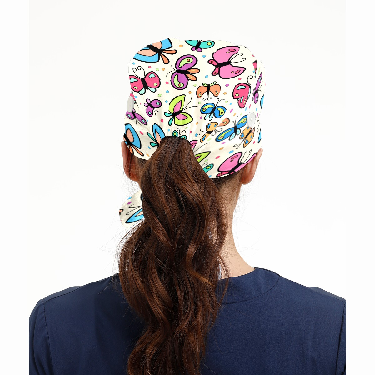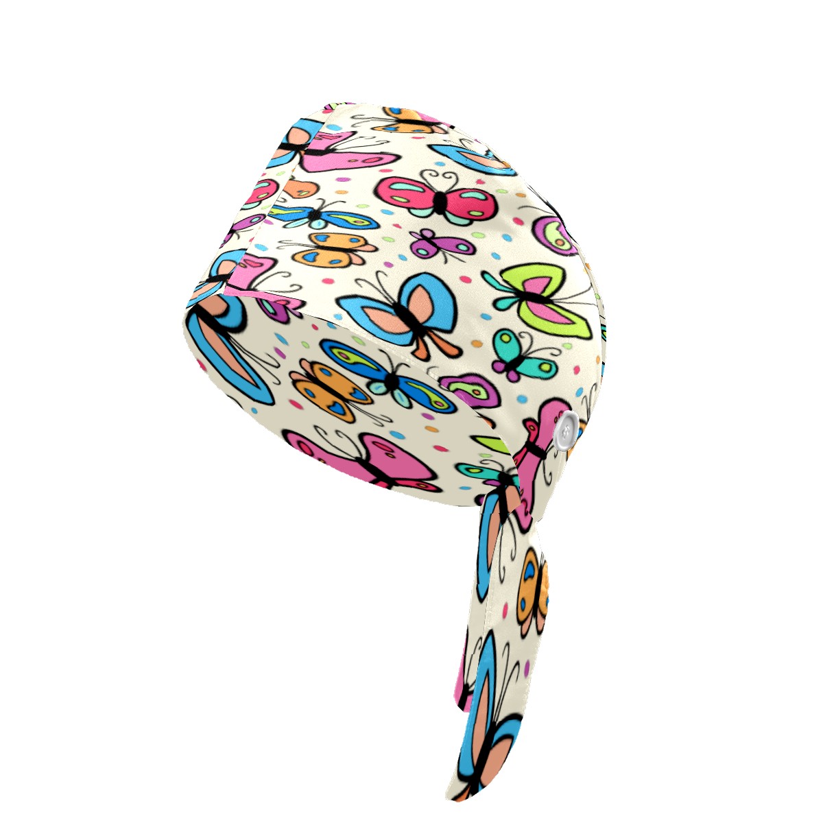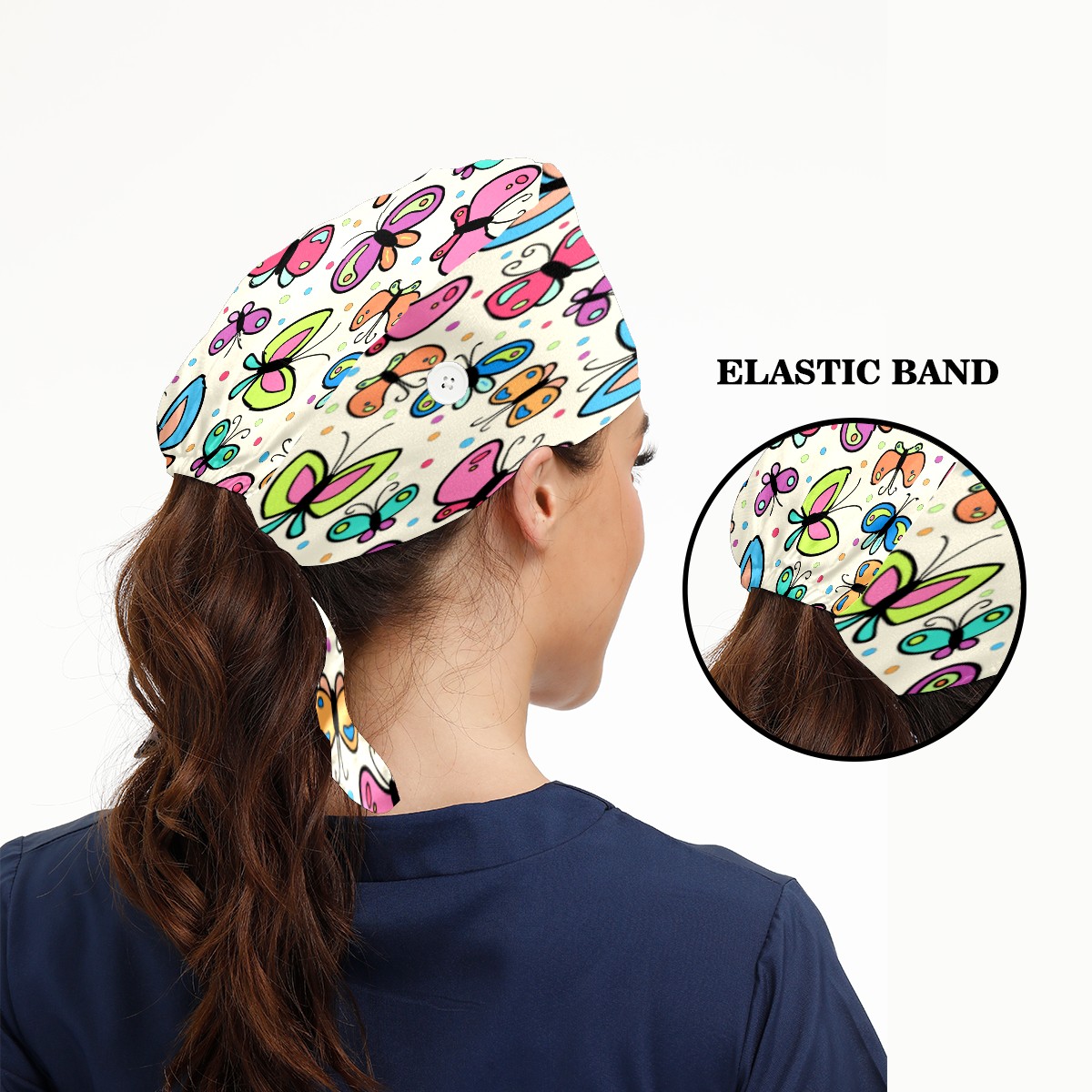 Colorful Butterfly Pattern Working Cap Button and Sweatband Adjustable Elastic Head Cover Hair Tie Back Work Hats for Women Men