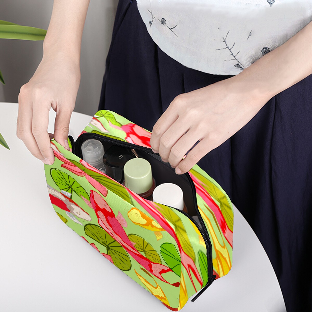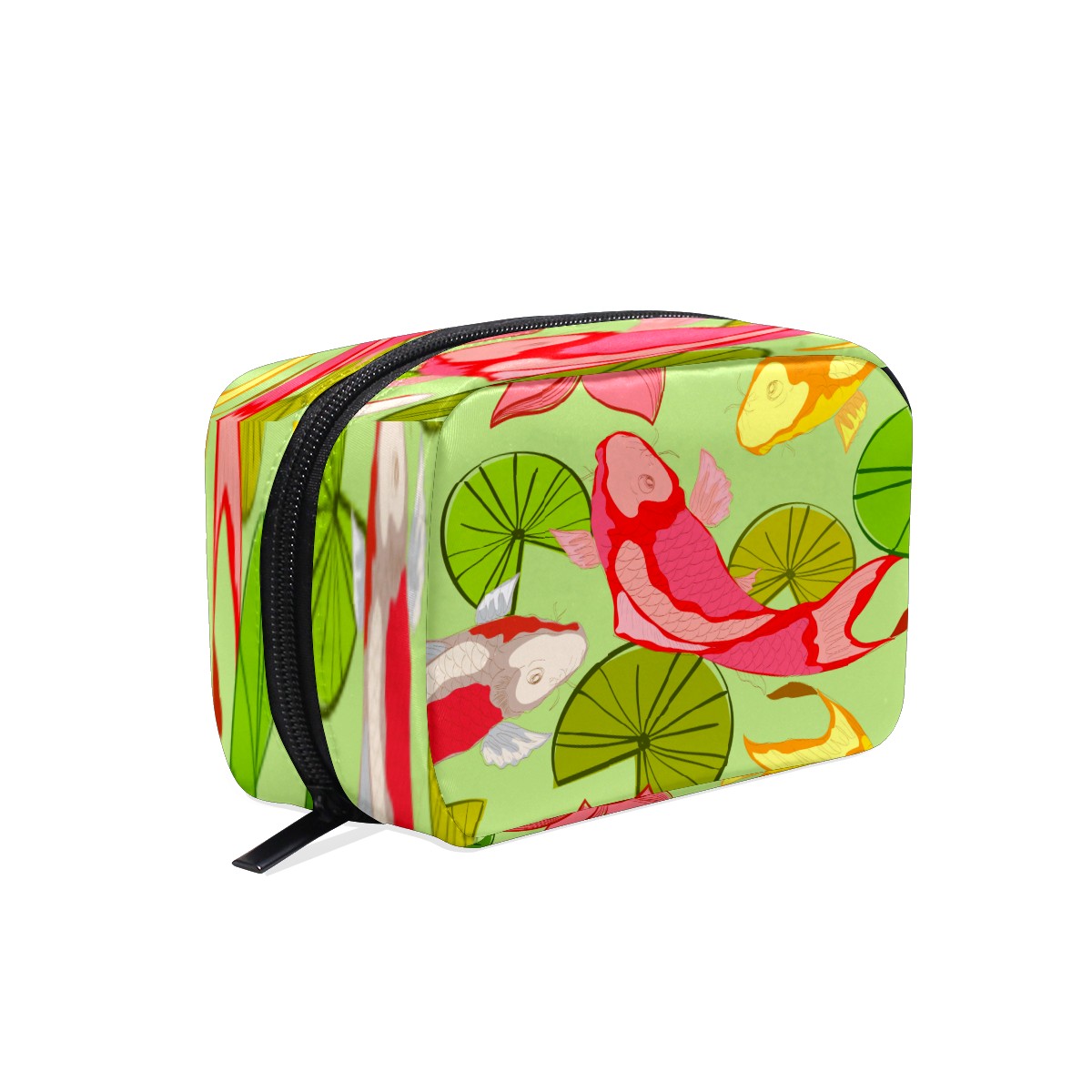 Cosmetic Bag for Women Girls Trave Makeup Bag Toiletry Case Pouch Accessories Organizer Pond Lotus Fish