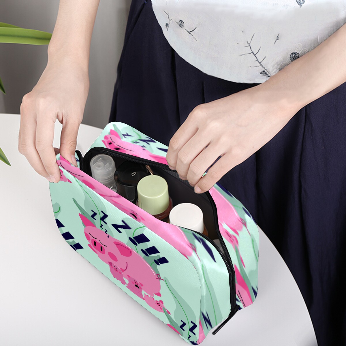 Cosmetic Bag for Women Girls Trave Makeup Bag Toiletry Case Pouch Accessories Organizer Pink Funny Cute Pig Sleeping Lazy