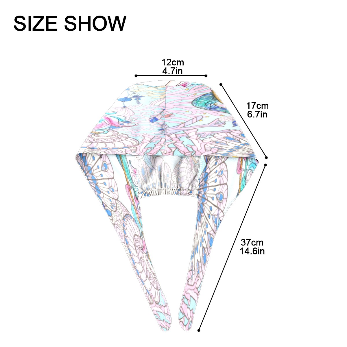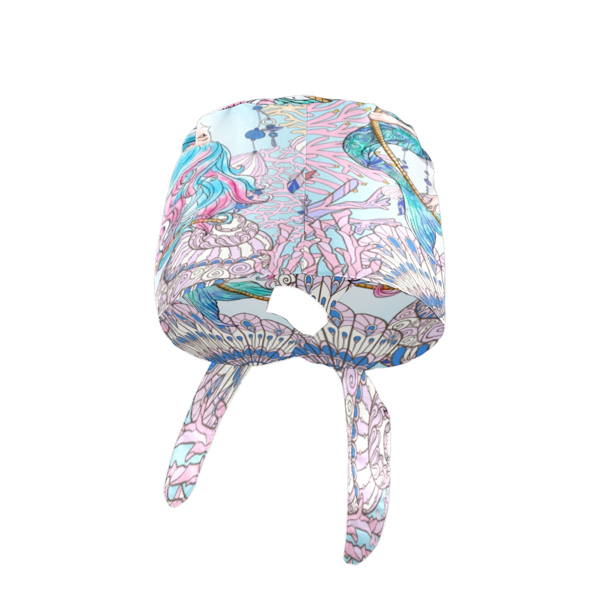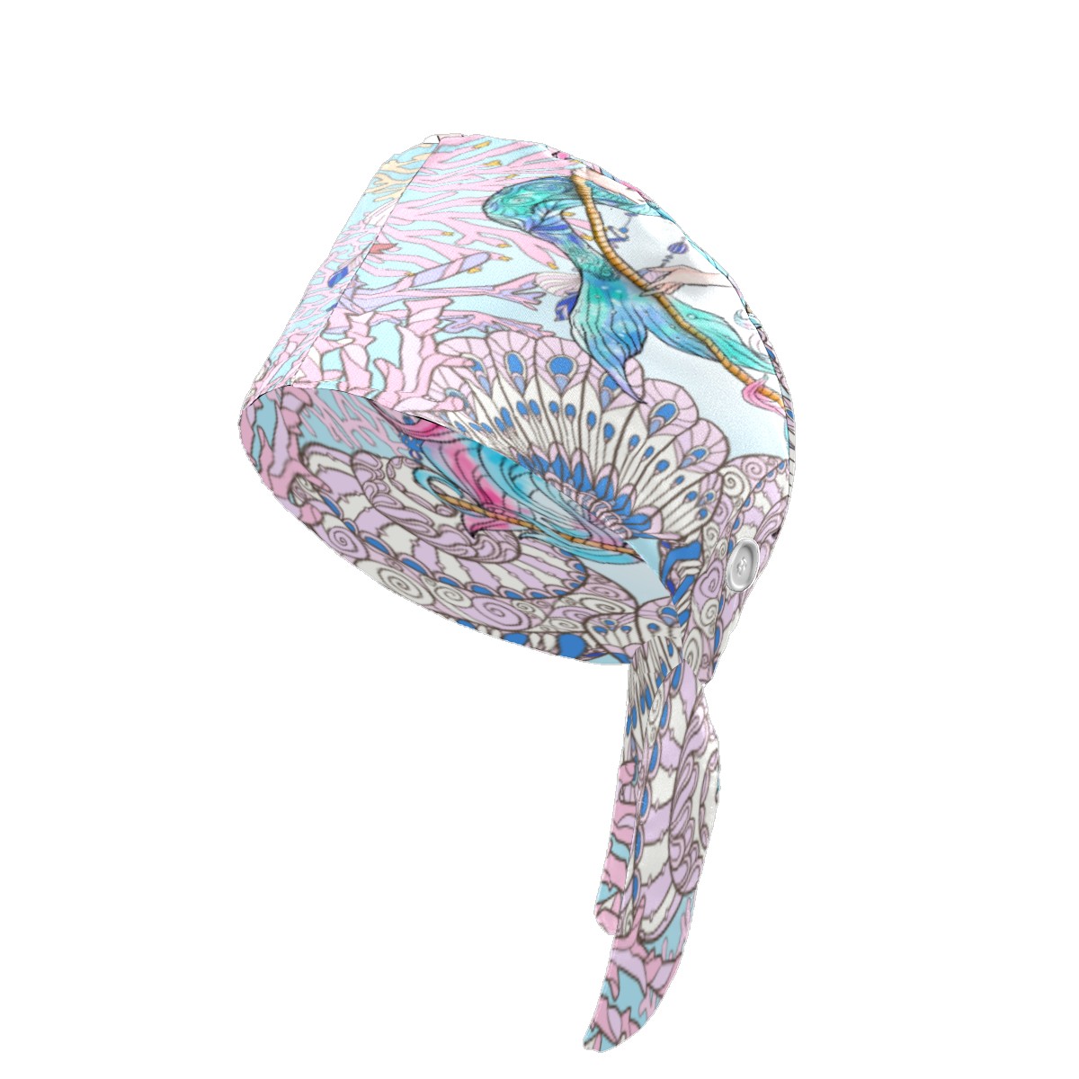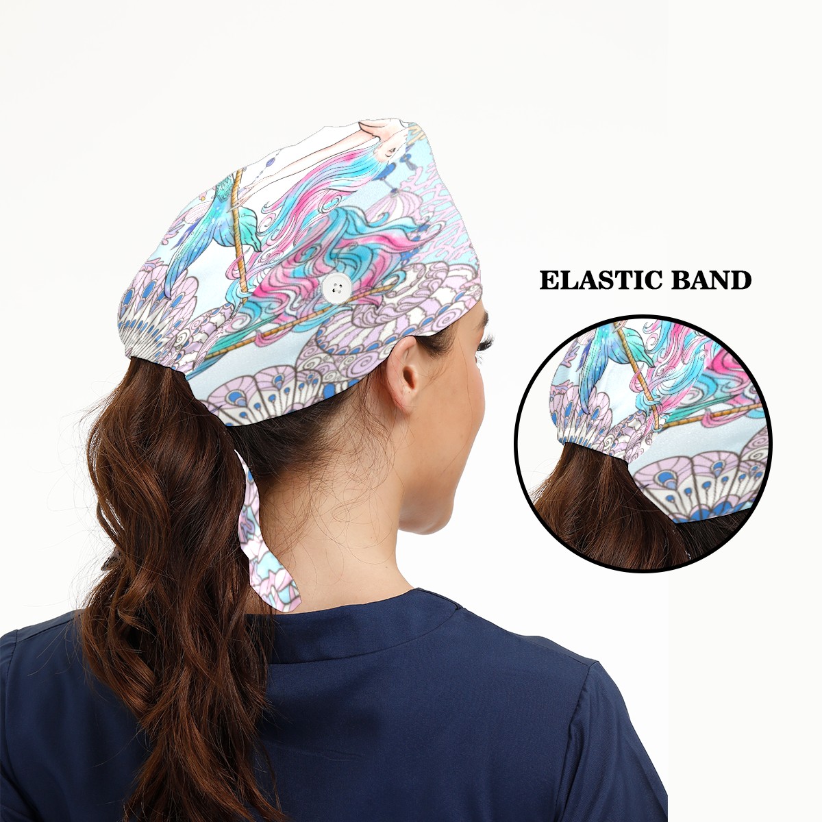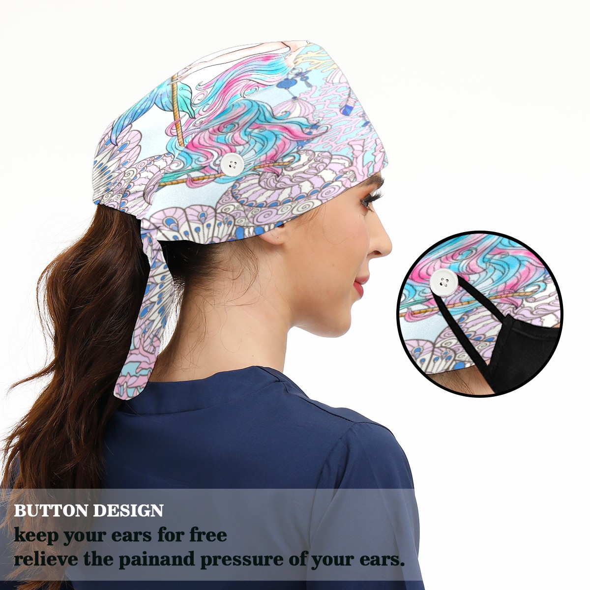 Mermaid Shell Coral Working Cap Button and Sweatband Adjustable Elastic Head Cover Hair Tie Back Work Hats for Women Men