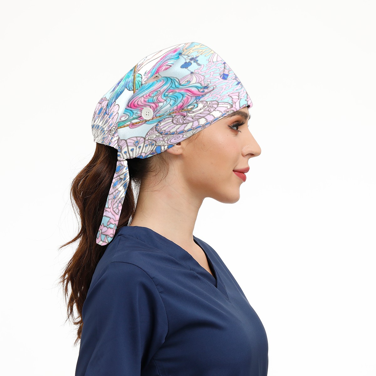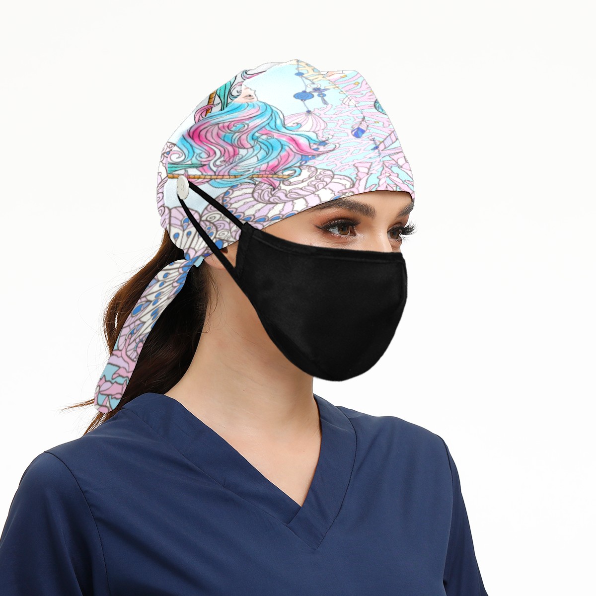 <p>Working cap with Sweatband and Button for Women Men</p><p>Material&nbsp;: 50% cotton+50% polyester</p><p>Size:&nbsp;One size fits most,&nbsp;suitable for both men and women.</p><p>Working Cap with Buttons Design:special&nbsp;design with buttons to protect ears for those who are wearing ma-sk. These new styles hats will allow you to put the straps around the buttons instead of your ears, make you feel more comfortable.</p><p>Sweat-absorbent towel cloth inside: Built-in&nbsp;100% cotton sweatband, keep the forehead clean after long time working.</p><p>Widely occasion: Widely used in beauty spa, house cleaning, cooking, sleeping, or for cos-play&nbsp;party.</p><p>Lovely pattern: lovely&nbsp;3D printed&nbsp;pattern,&nbsp;it's perfect for gift to you family&nbsp;and friends.</p>