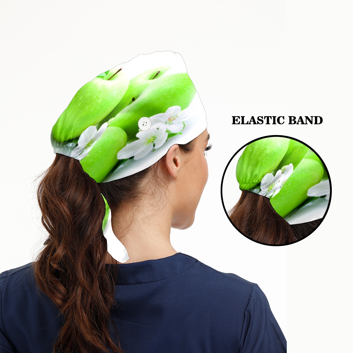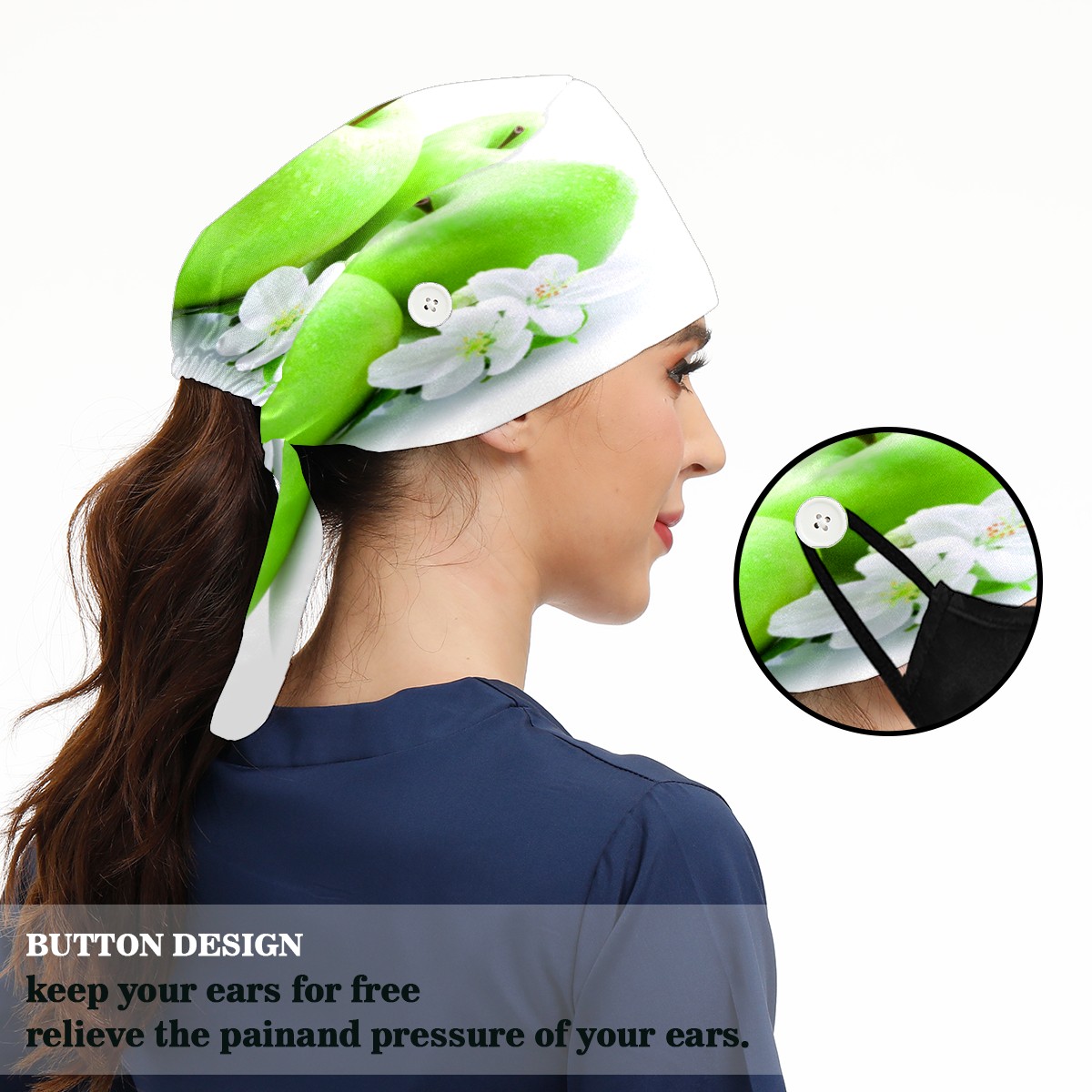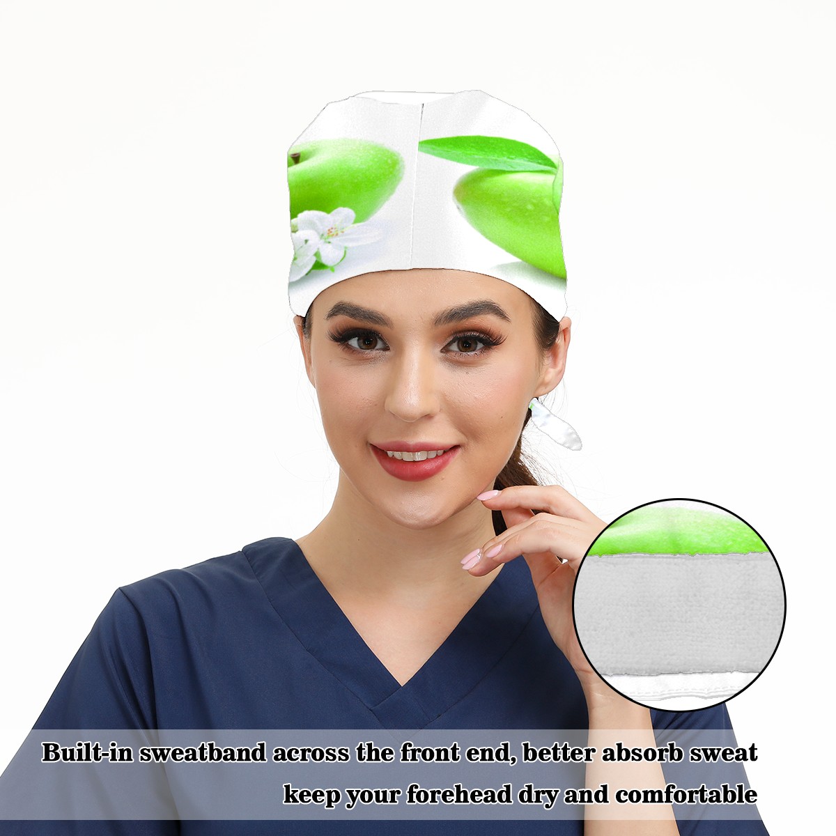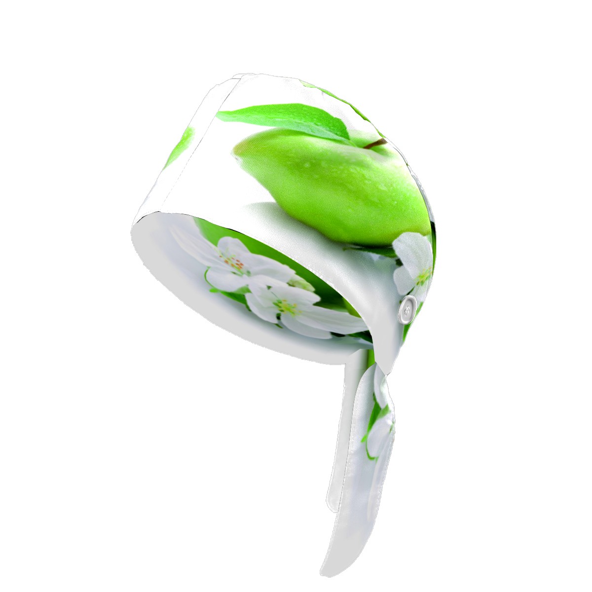 Fresh Green Apples Flower Working Cap Button and Sweatband Adjustable Elastic Head Cover Hair Tie Back Work Hats for Women Men