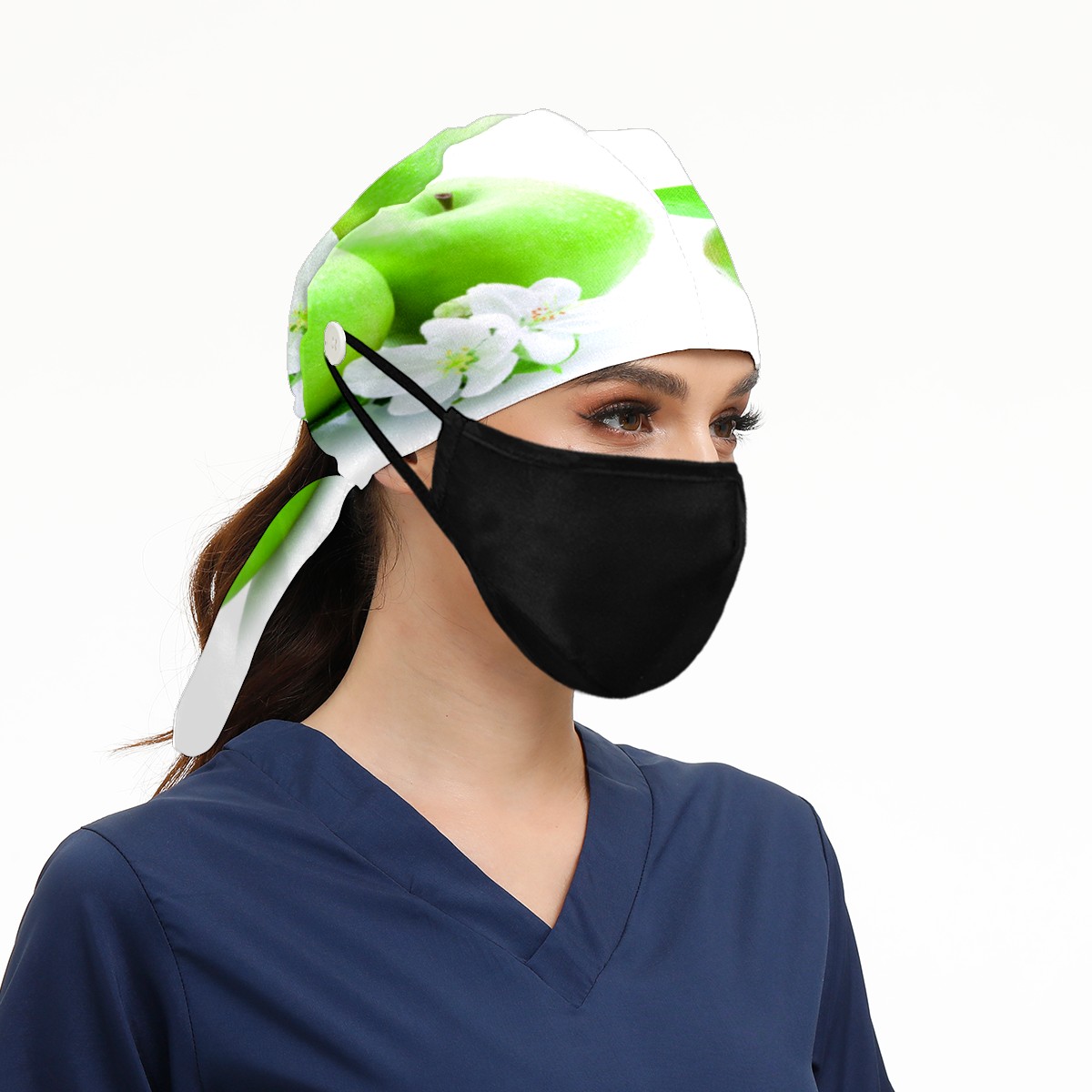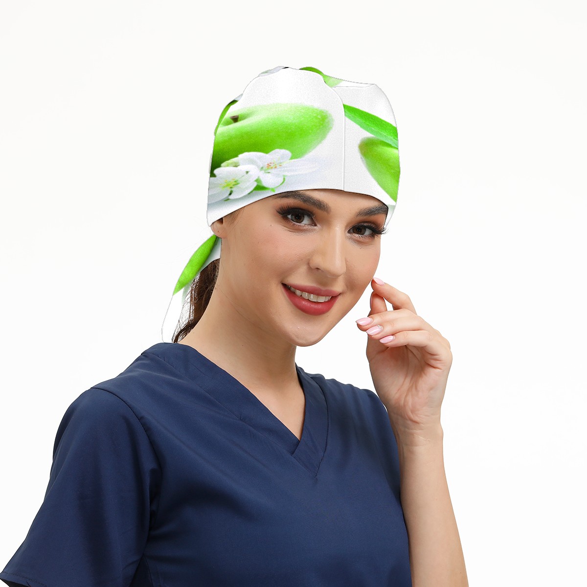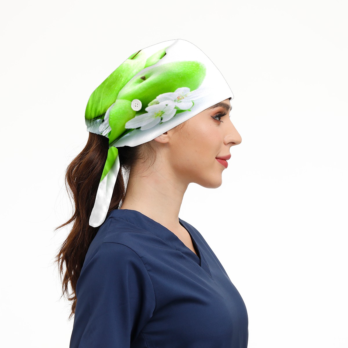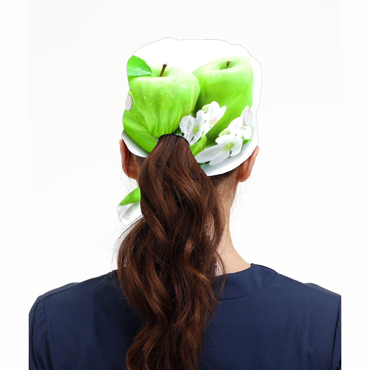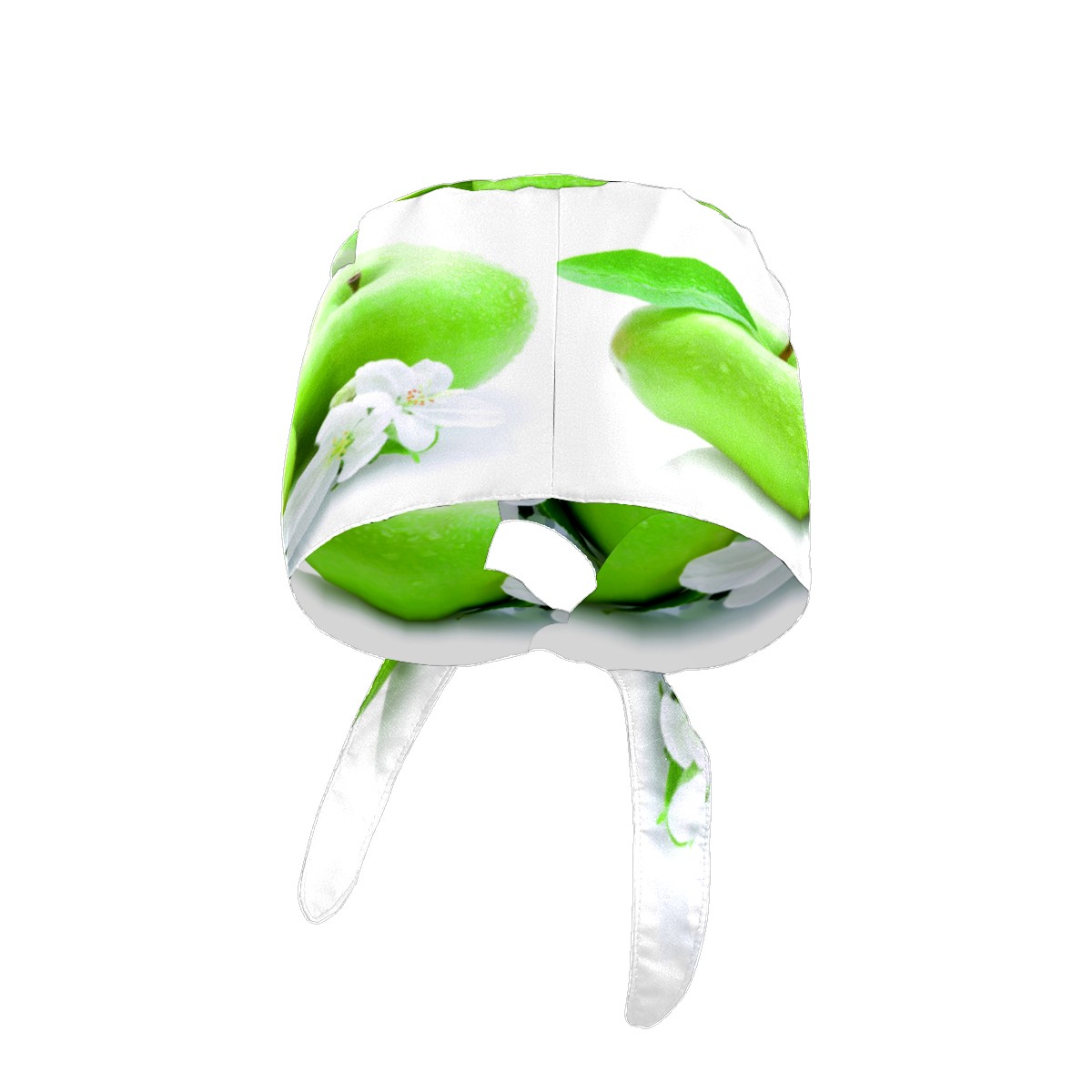 Fresh Green Apples Flower Working Cap Button and Sweatband Adjustable Elastic Head Cover Hair Tie Back Work Hats for Women Men