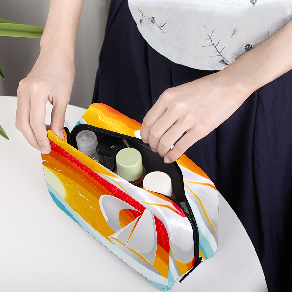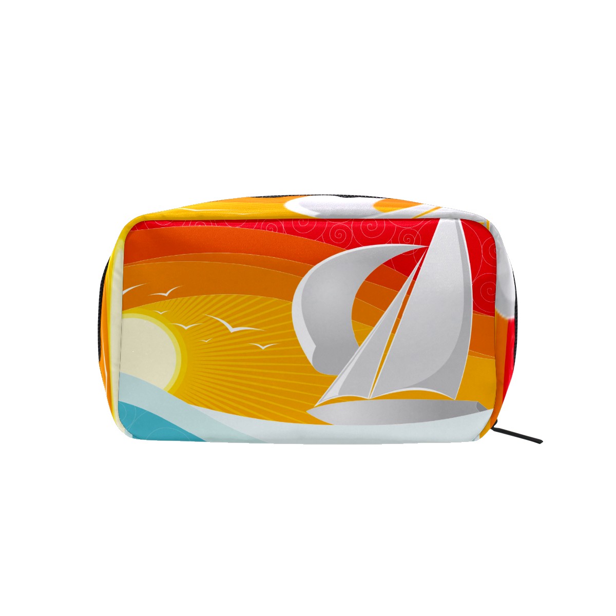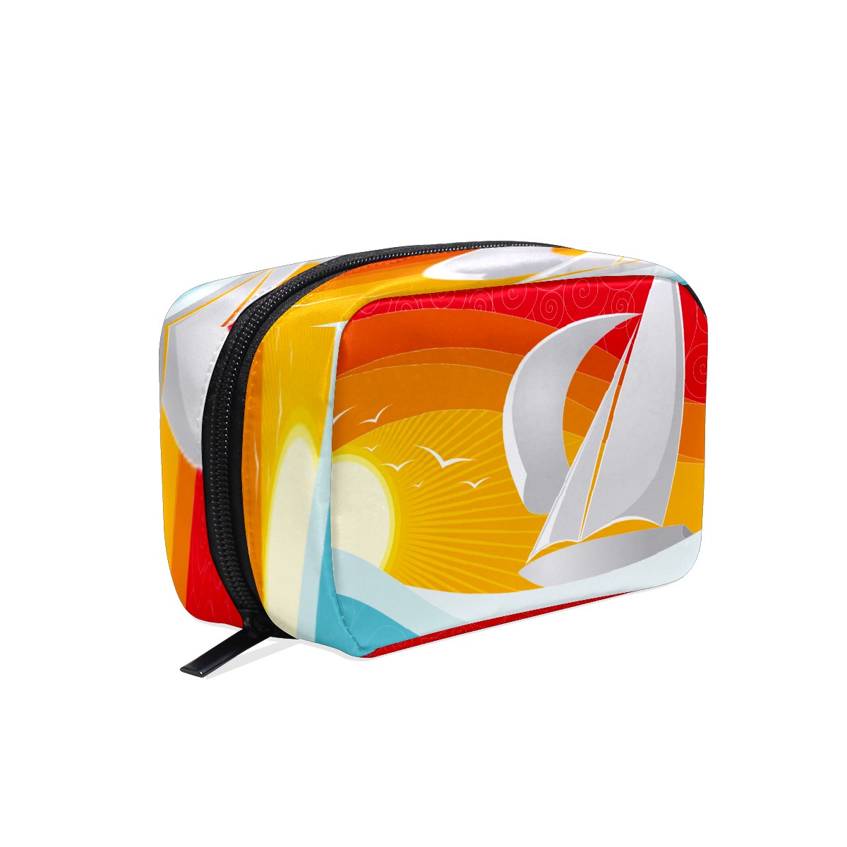 Cosmetic Bag for Women Girls Trave Makeup Bag Toiletry Case Pouch Accessories Organizer Nautical Sail Boat Seagull With Sun