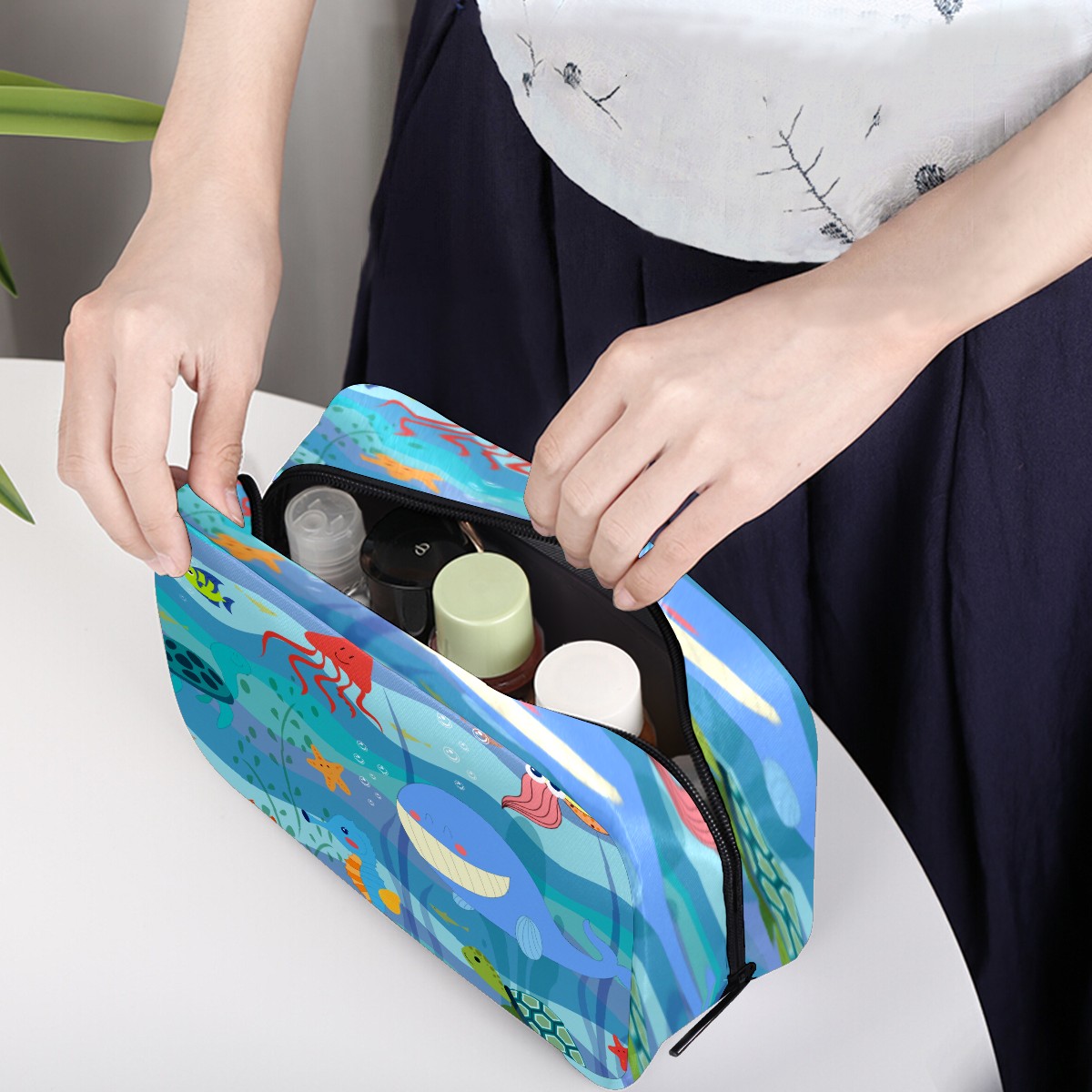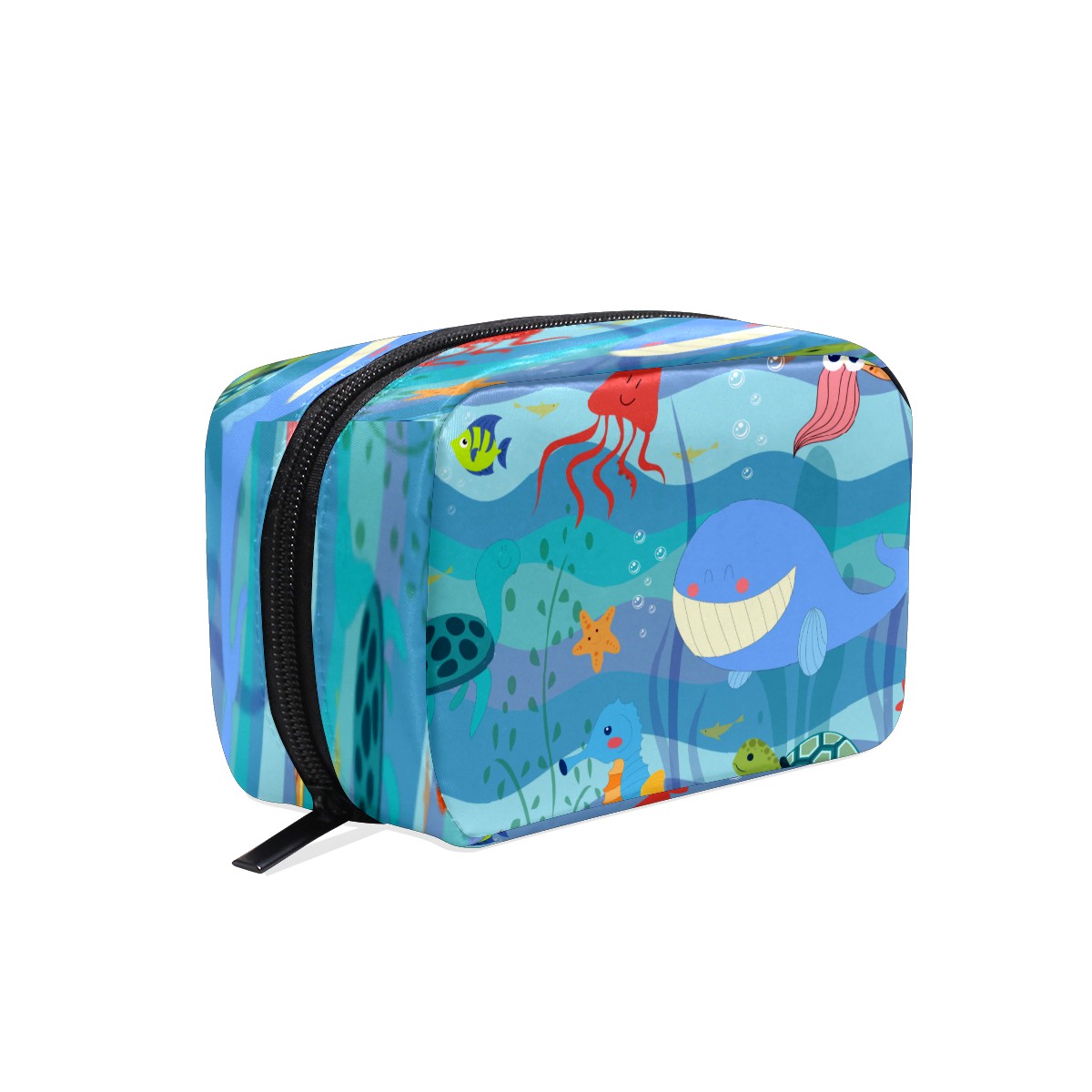 Cosmetic Bag for Women Girls Trave Makeup Bag Toiletry Case Pouch Accessories Organizer Ocean Undewater Dolphin Sea Trutle Crab Fish