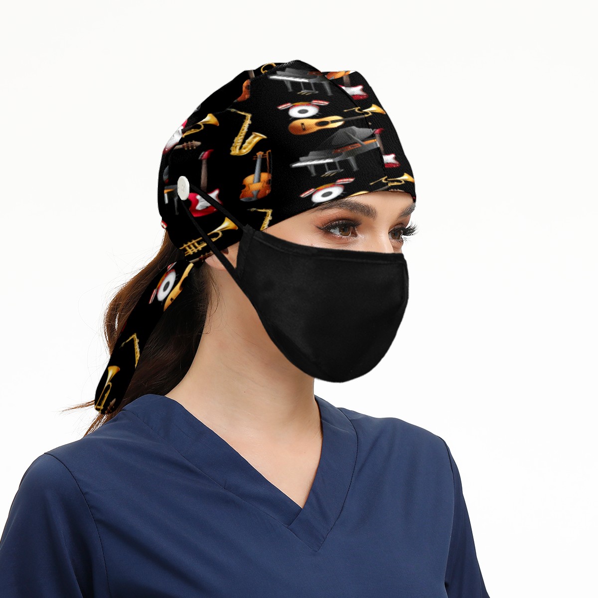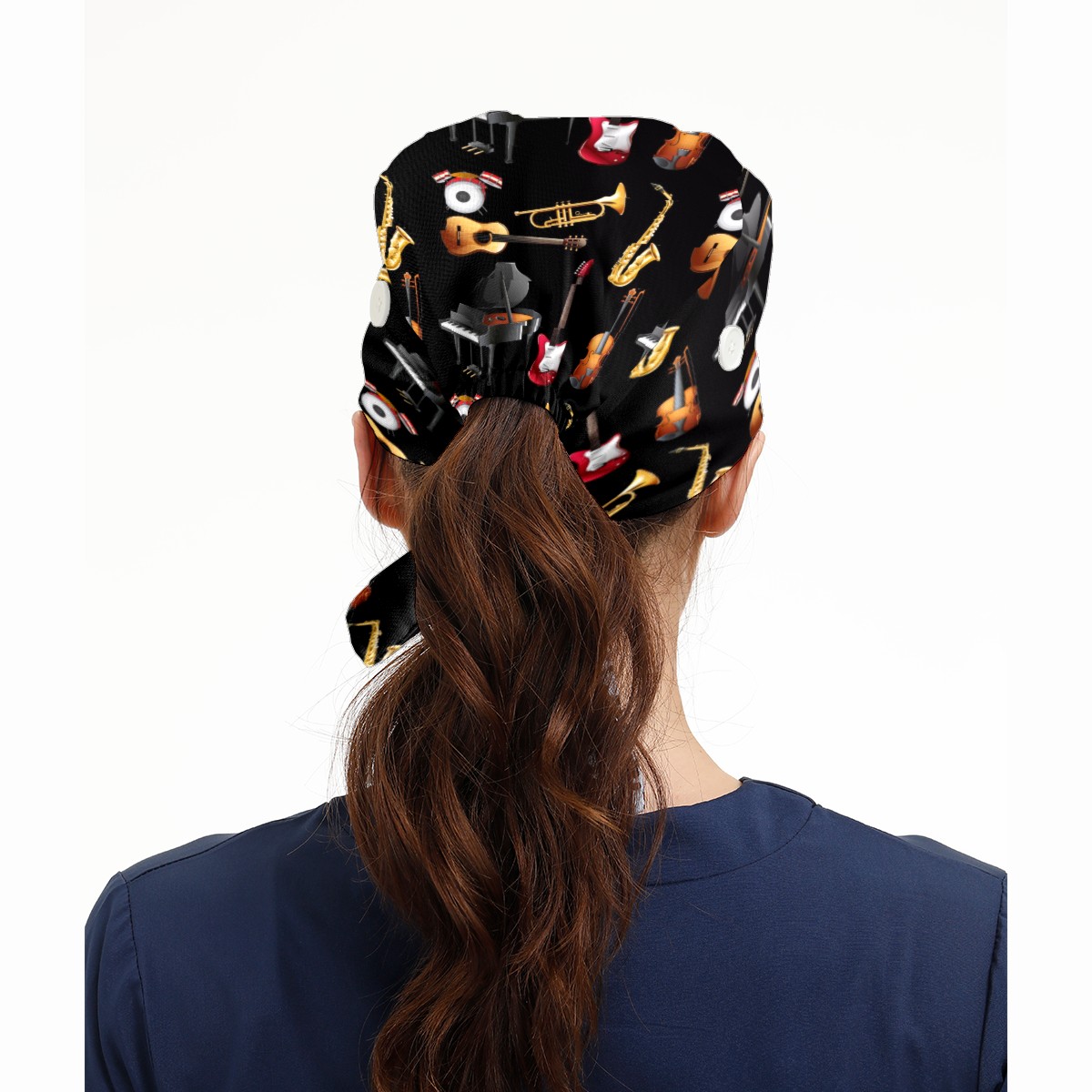 Piano Saxaphone Violin Guitar Working Cap Button and Sweatband Adjustable Elastic Head Cover Hair Tie Back Work Hats for Women Men