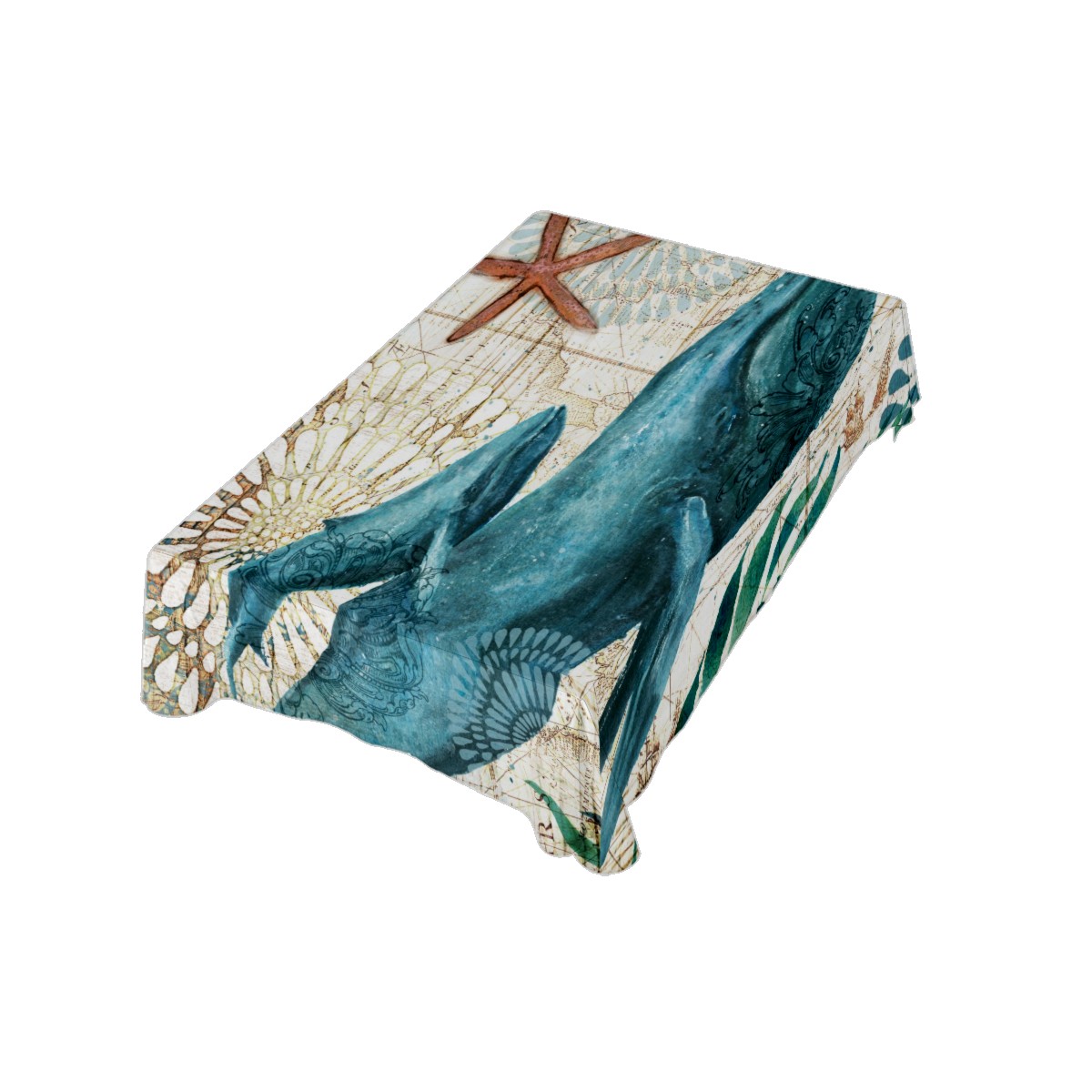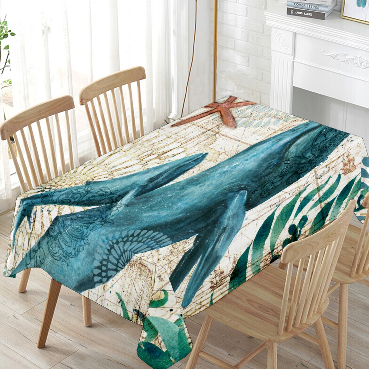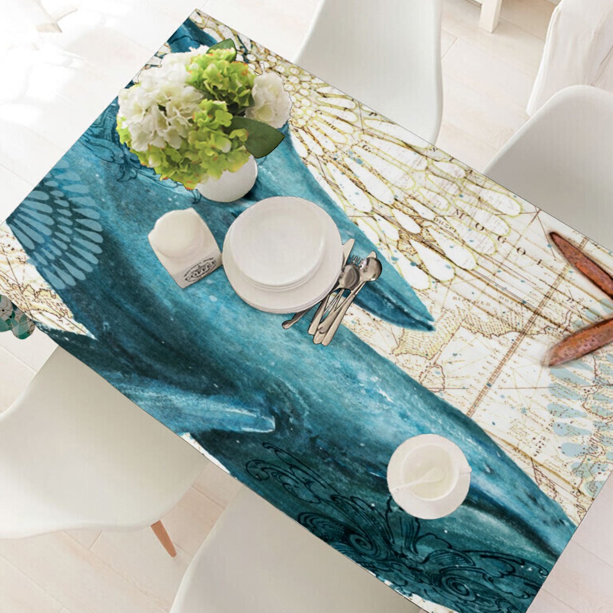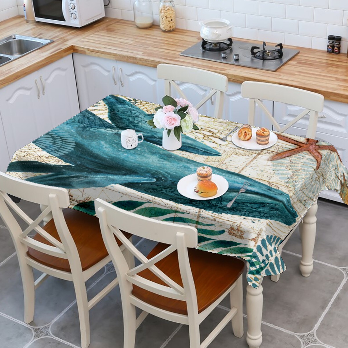 Rectangle Tablecloth Sea Whale Nautical Map Blue Ocean Table Cloth 54x54in Table Cover for Kitchen Dining Table Party Home Decoration Washable Table Runner
