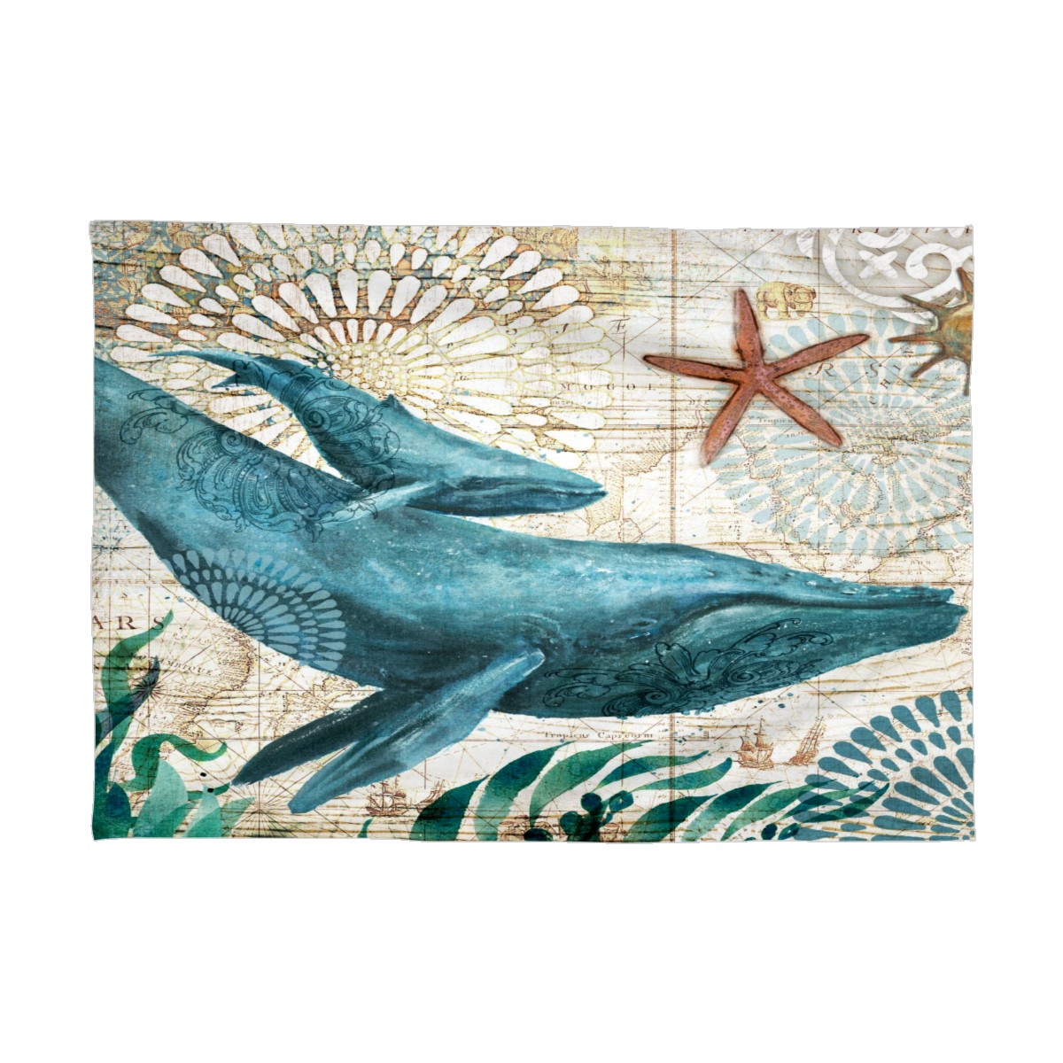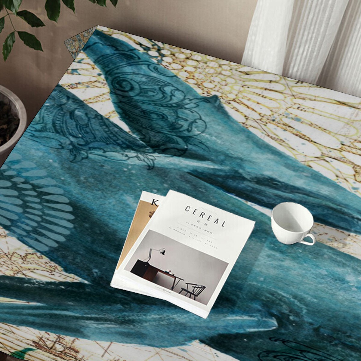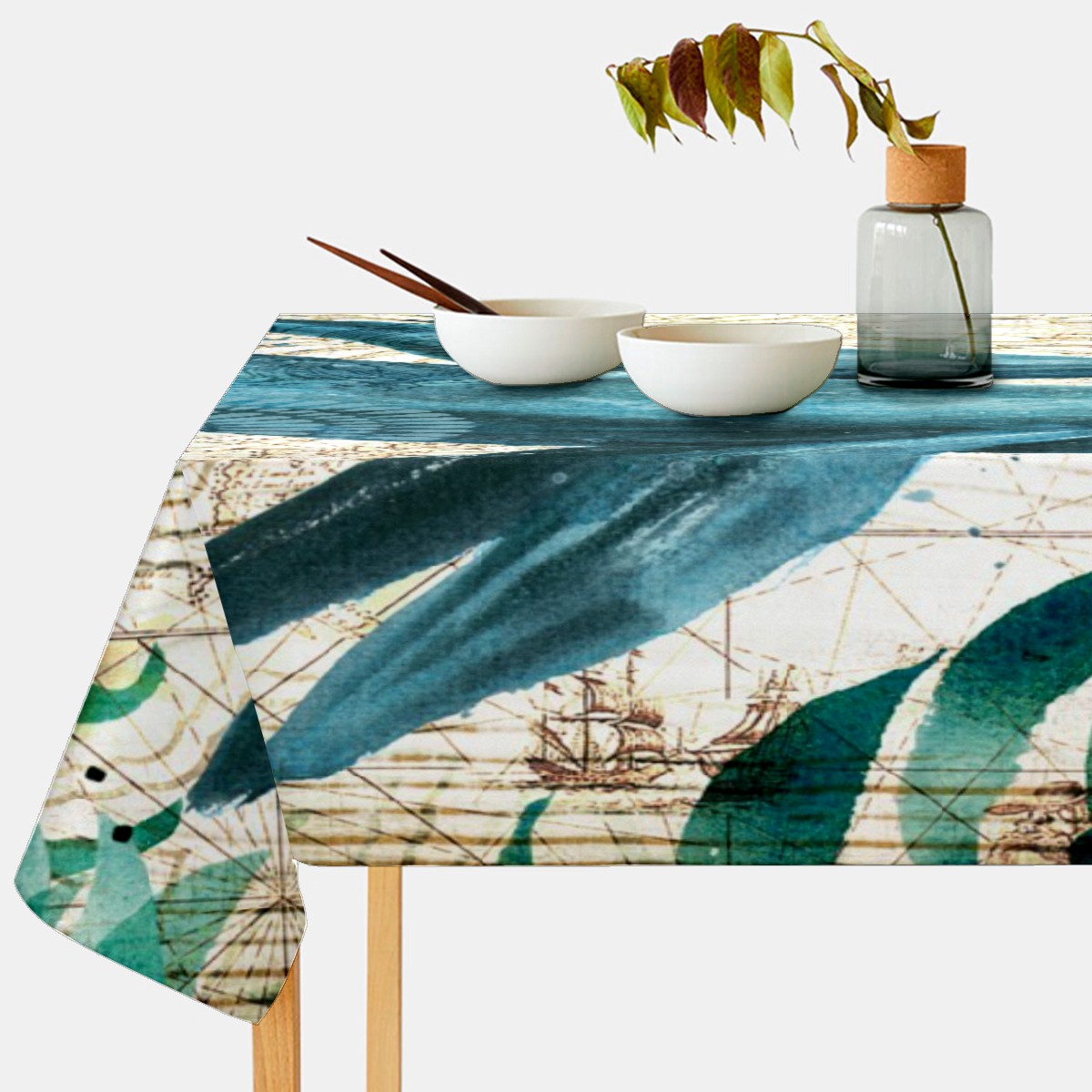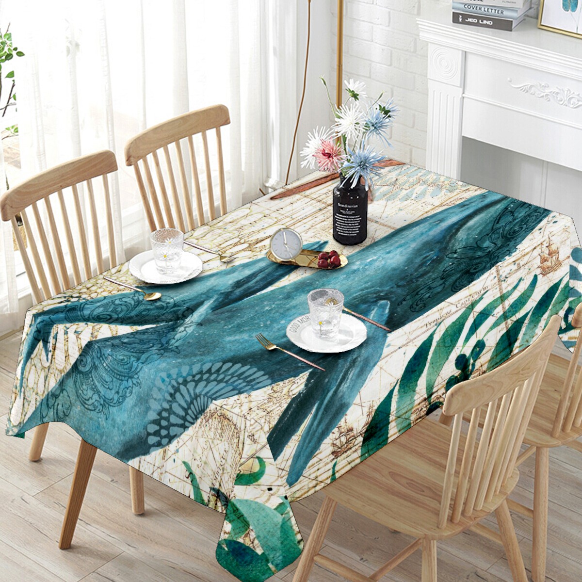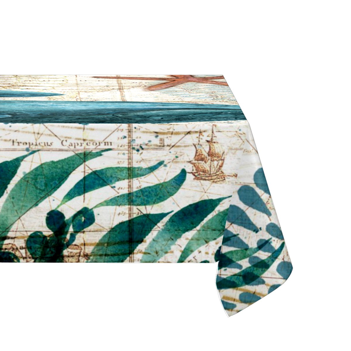Rectangle Tablecloth Sea Whale Nautical Map Blue Ocean Table Cloth 54x54in Table Cover for Kitchen Dining Table Party Home Decoration Washable Table Runner