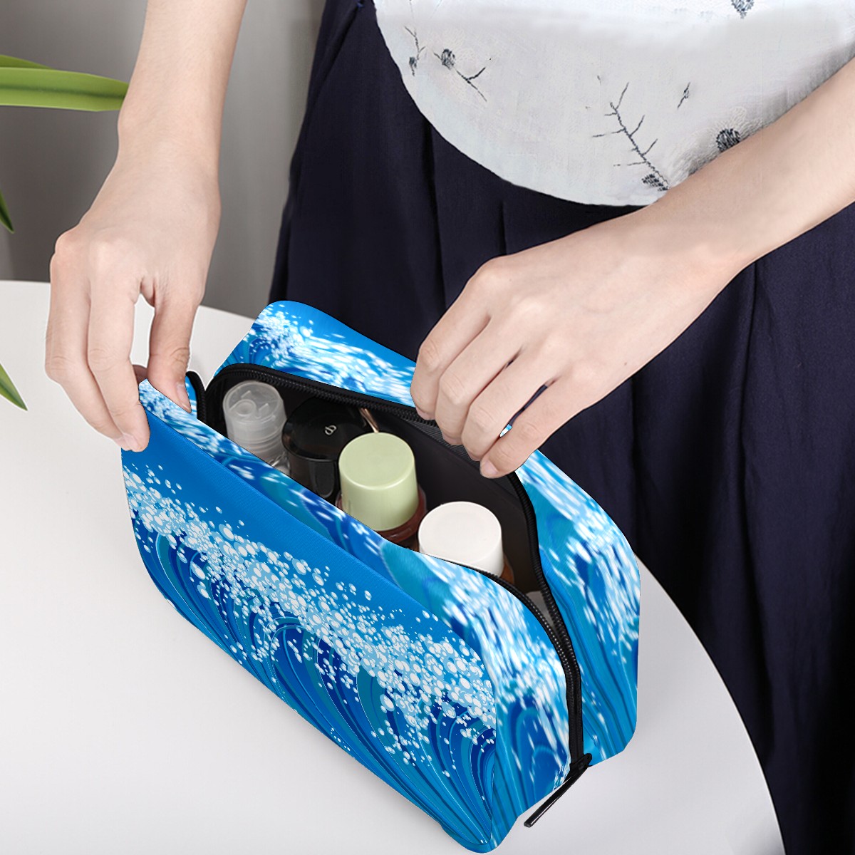 Cosmetic Bag for Women Girls Trave Makeup Bag Toiletry Case Pouch Accessories Organizer Japanse Sea Blue Wave