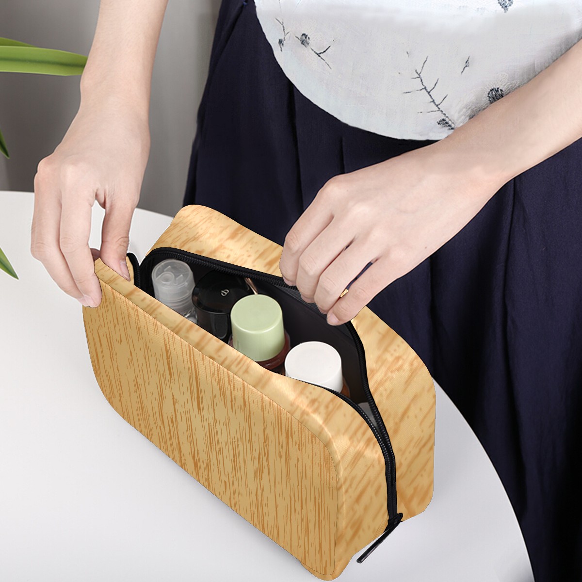 Cosmetic Bag for Women Girls Trave Makeup Bag Toiletry Case Pouch Accessories Organizer Light Brown Wooden Board