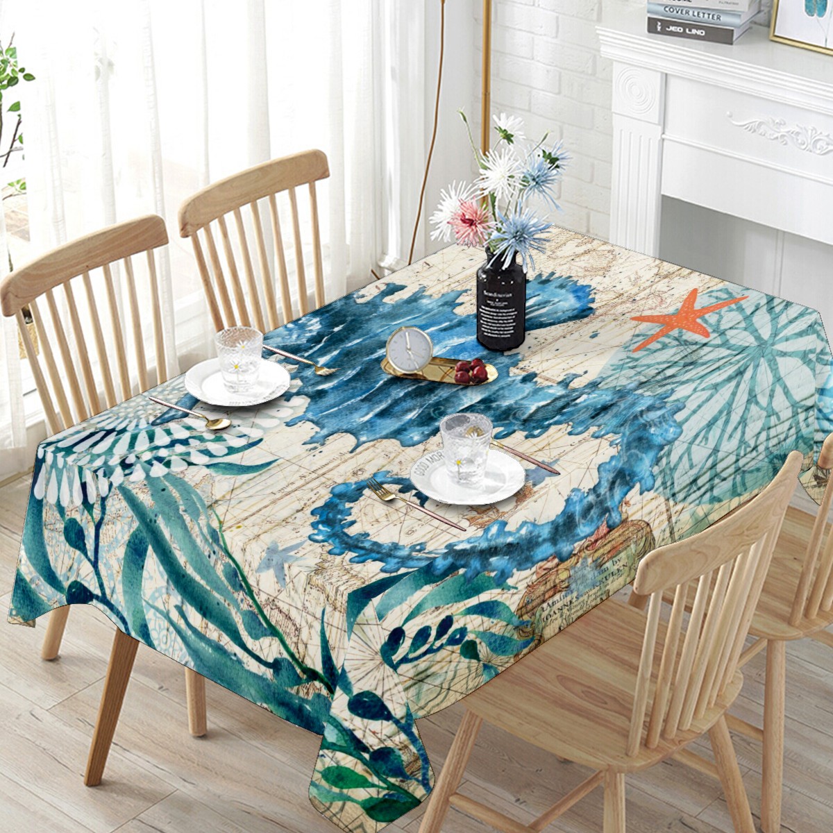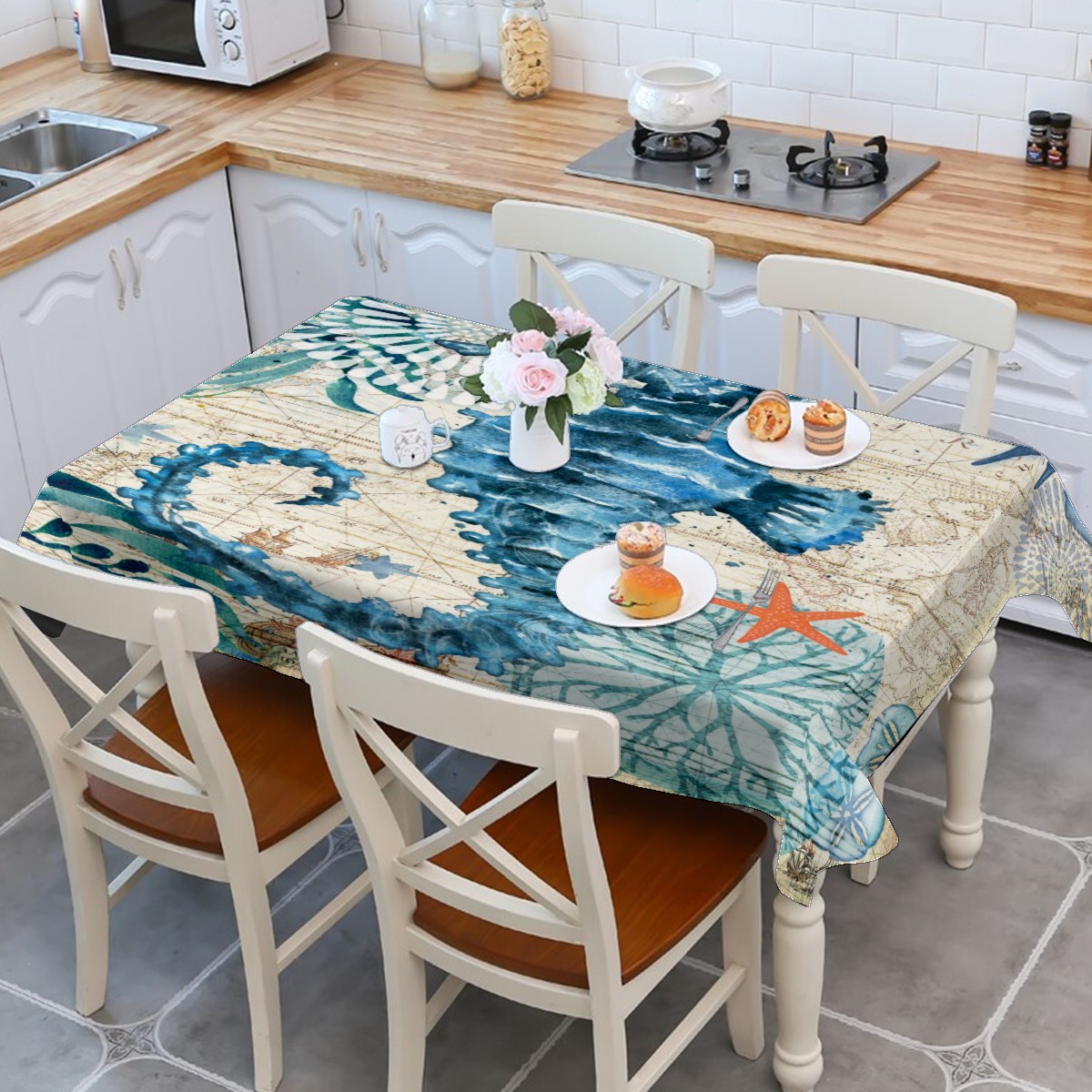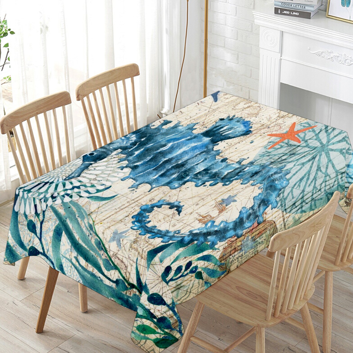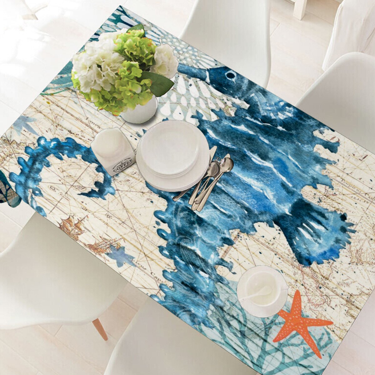 Rectangle Tablecloth Sea Horse Nautical Map Blue Ocean Table Cloth 54x54in Table Cover for Kitchen Dining Table Party Home Decoration Washable Table Runner