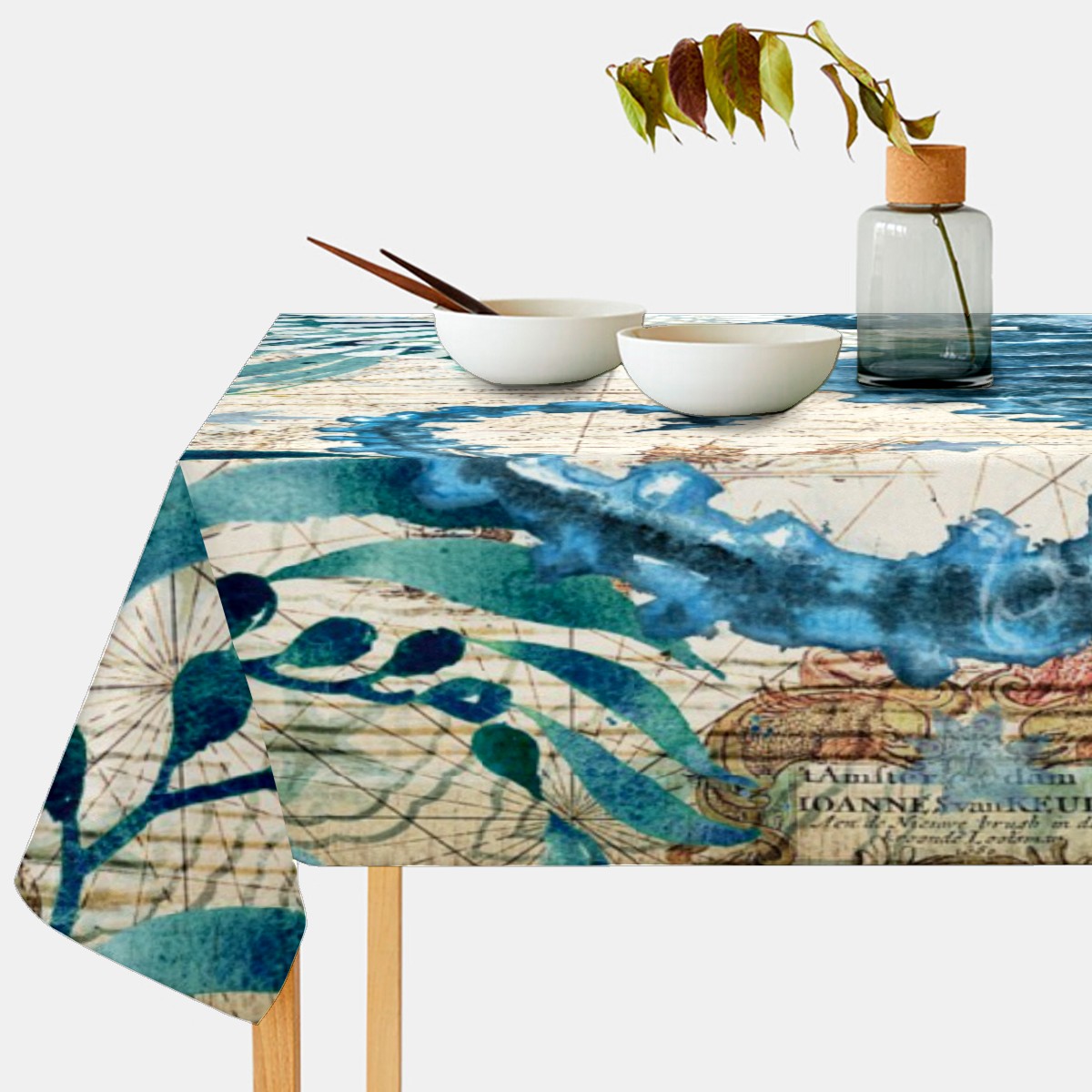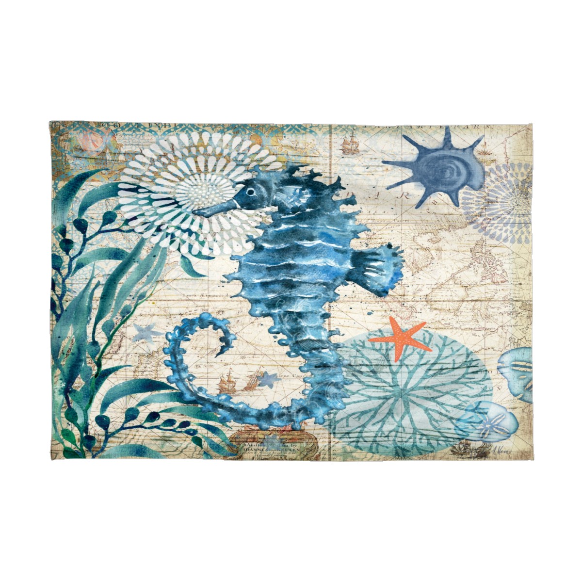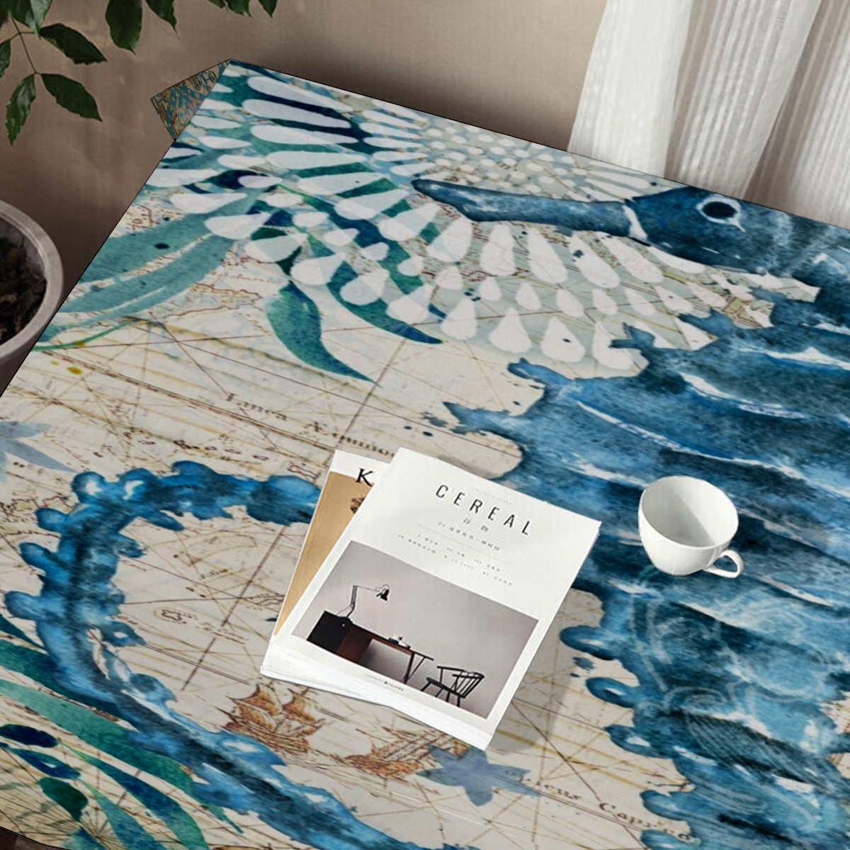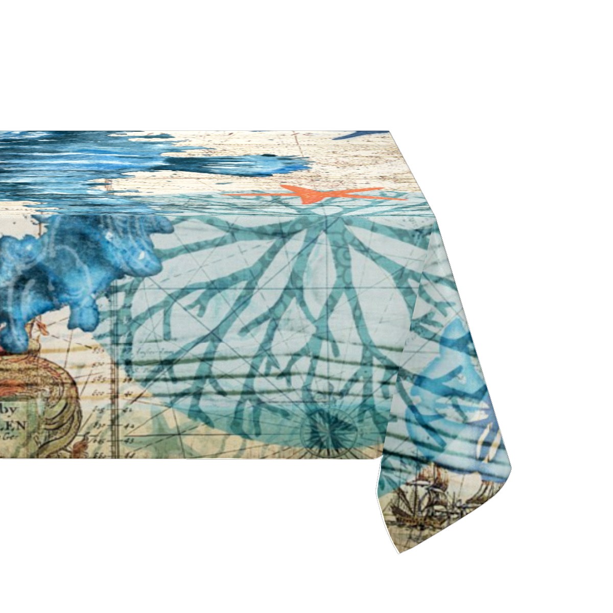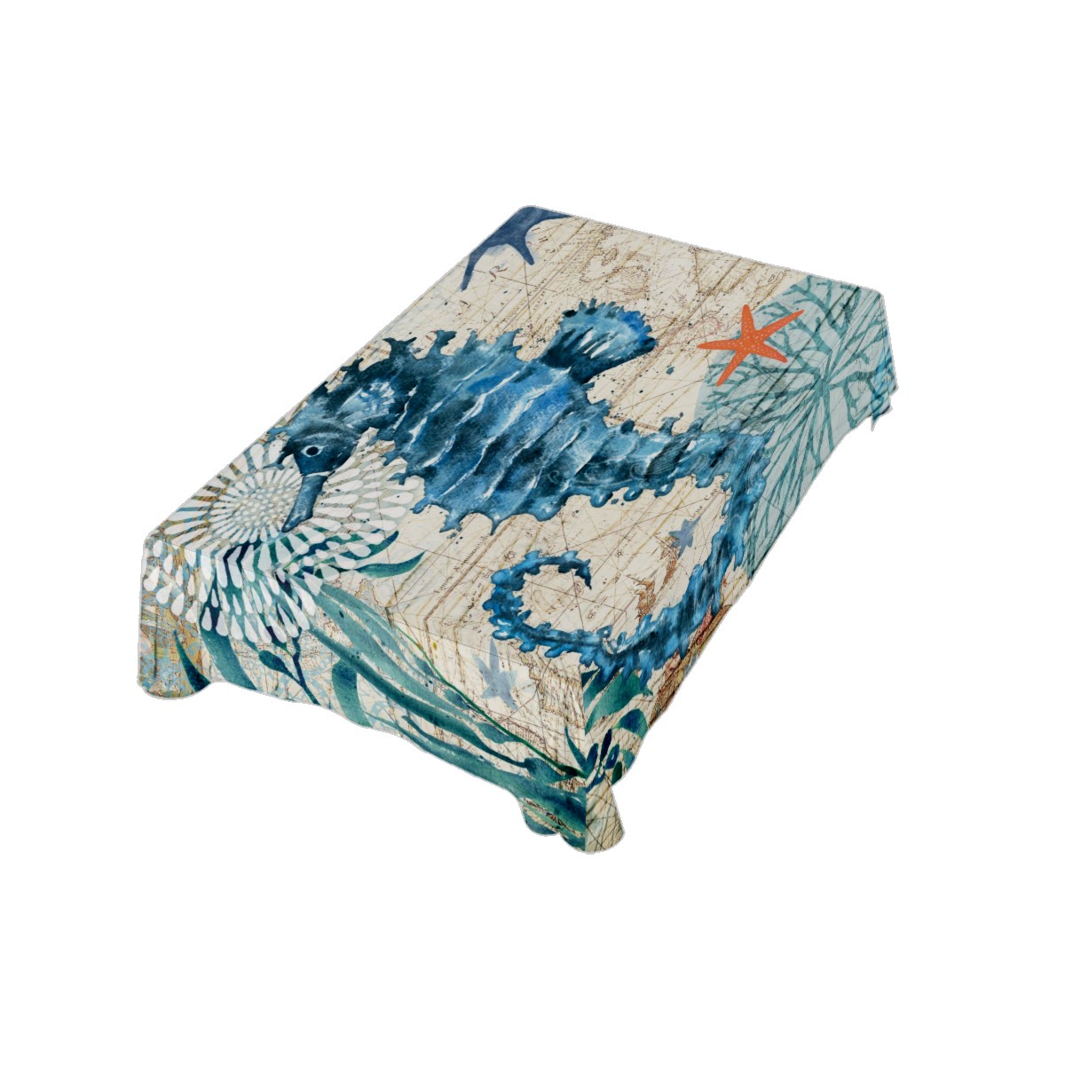 Rectangle Tablecloth Sea Horse Nautical Map Blue Ocean Table Cloth 54x54in Table Cover for Kitchen Dining Table Party Home Decoration Washable Table Runner