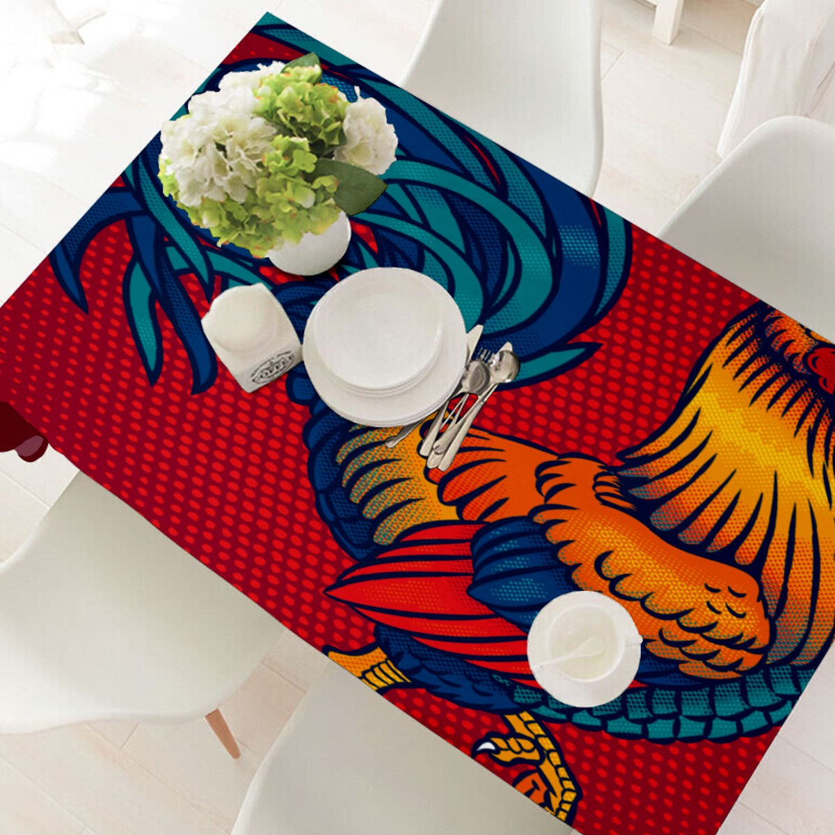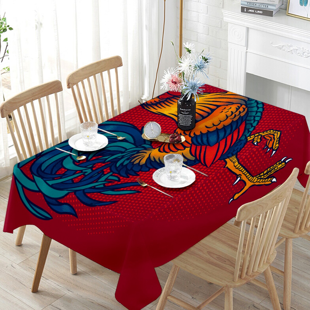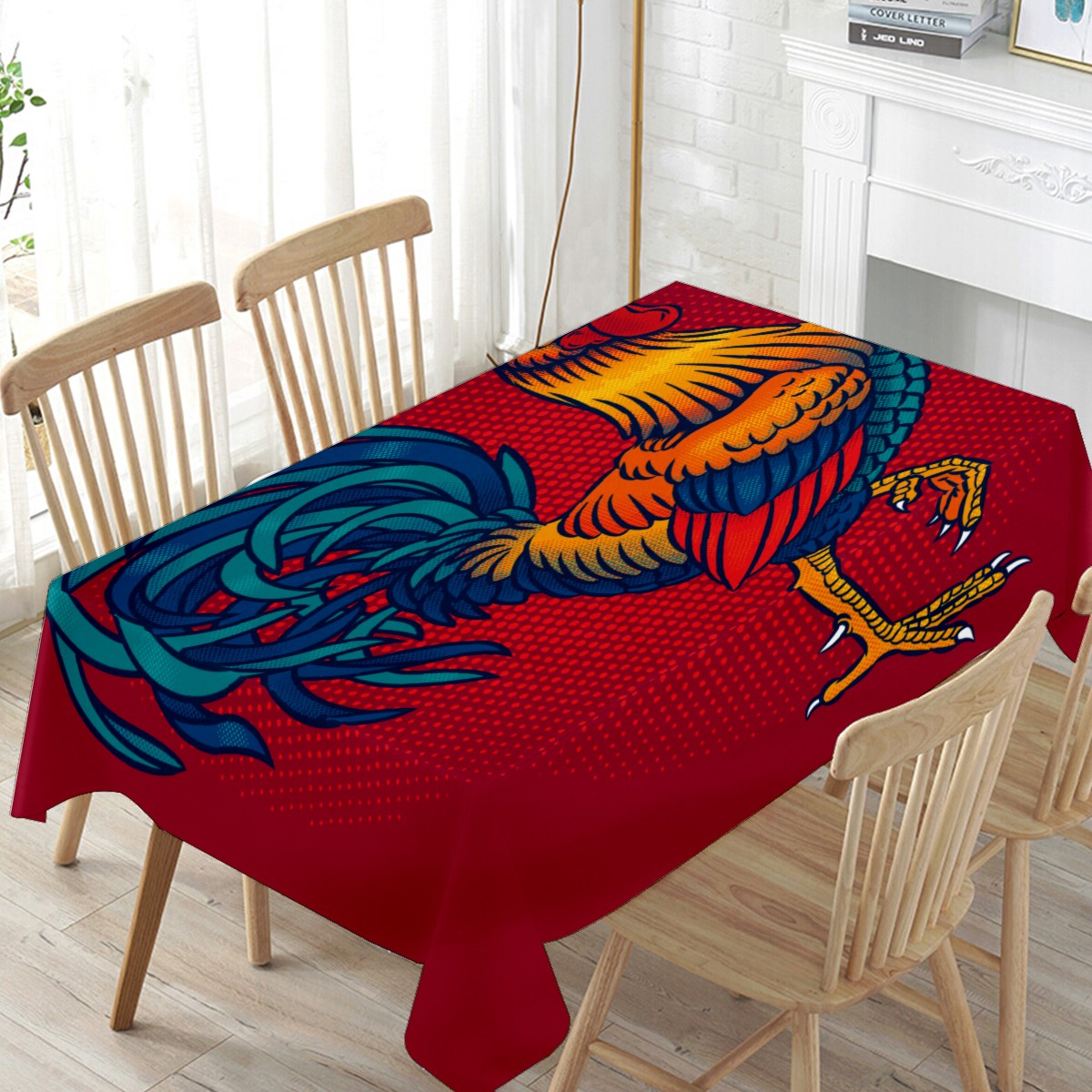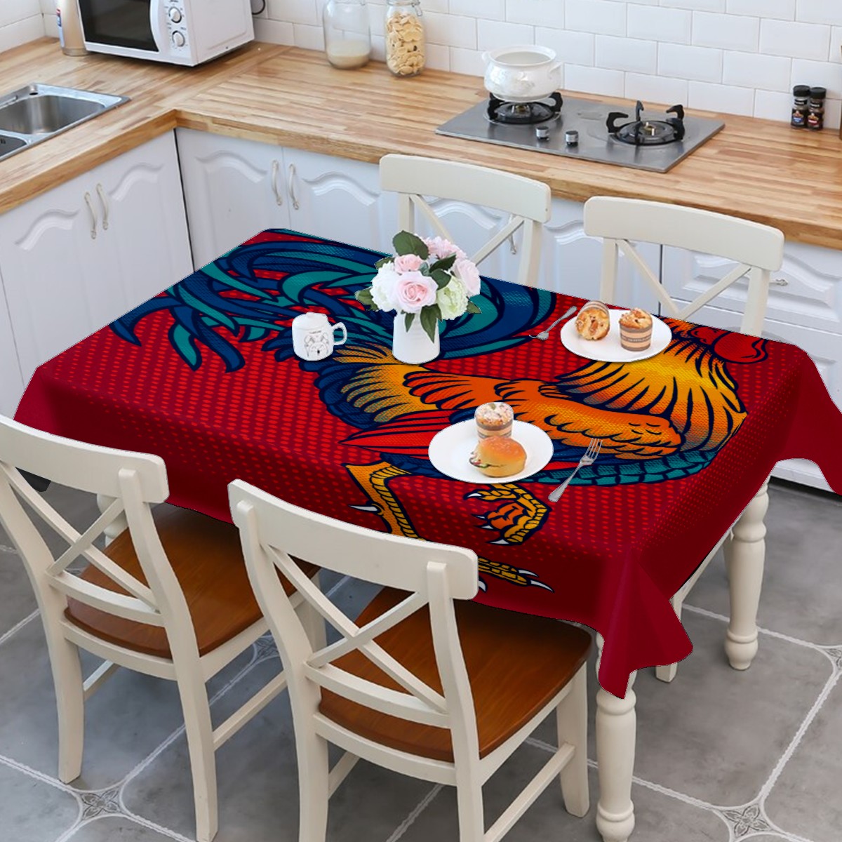 Rectangle Tablecloth Rustic Rooster Country Chicken Table Cloth 54x54in Table Cover for Kitchen Dining Table Party Home Decoration Washable Table Runner