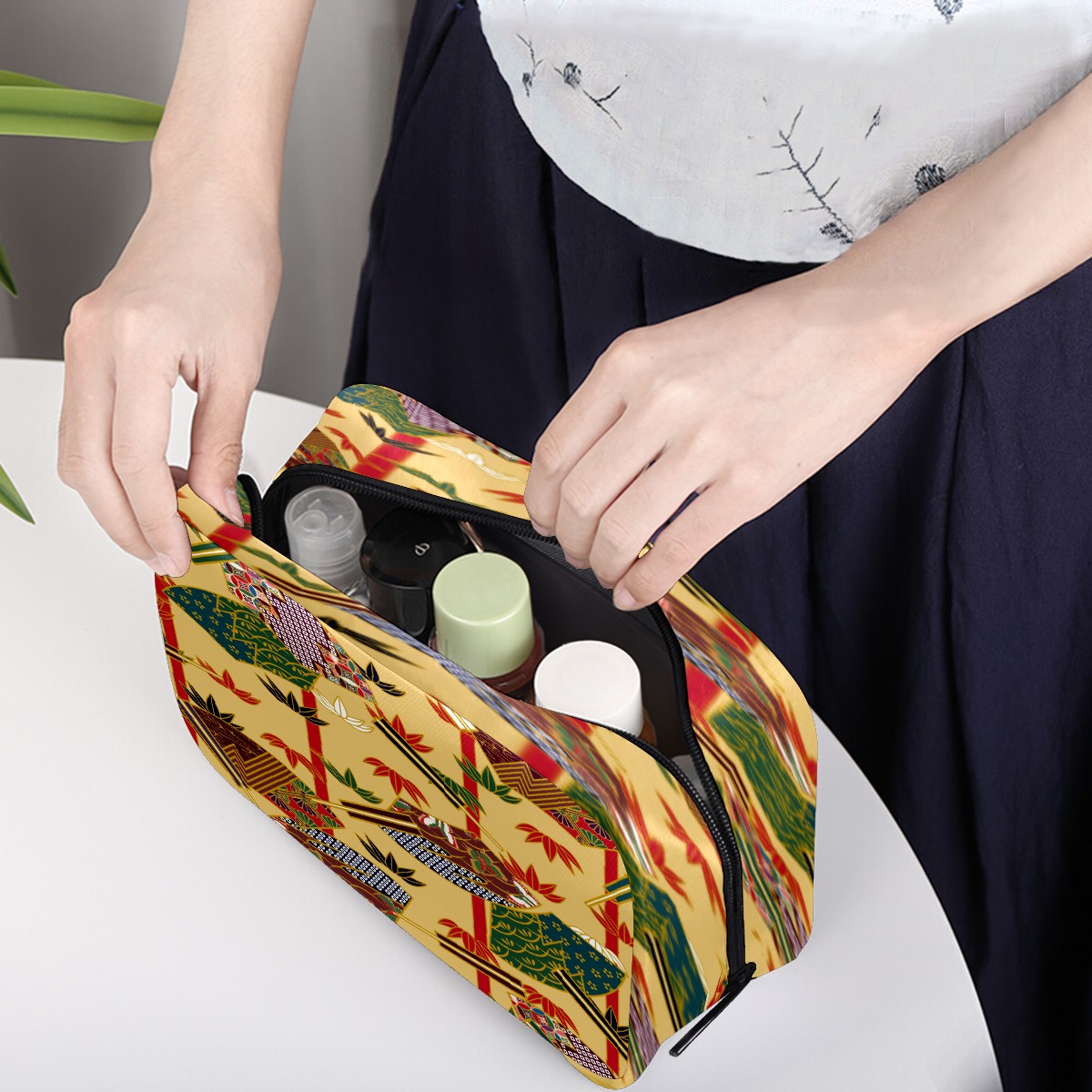 Cosmetic Bag for Women Girls Trave Makeup Bag Toiletry Case Pouch Accessories Organizer Japanese Retro Colorful Fan Floral Pattern