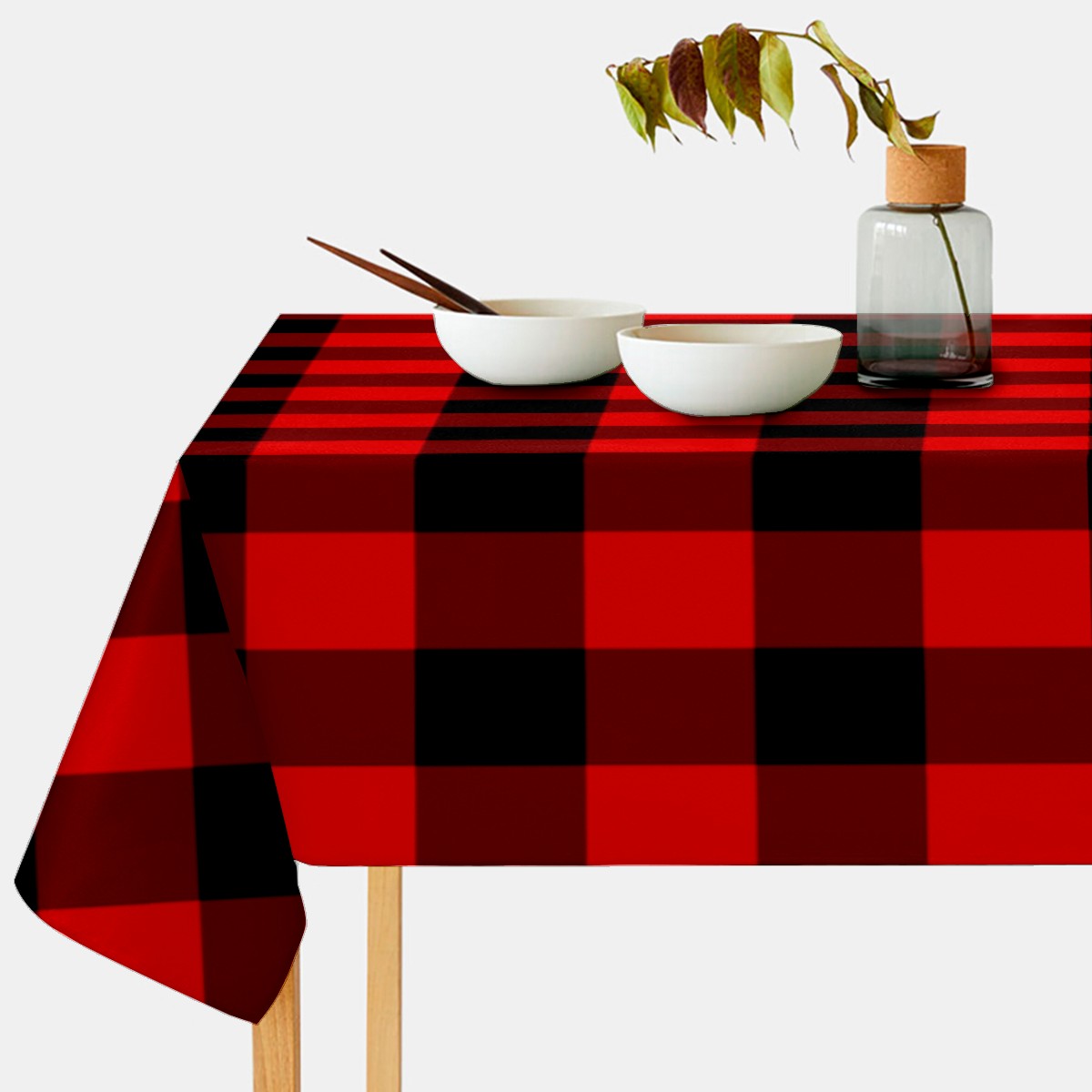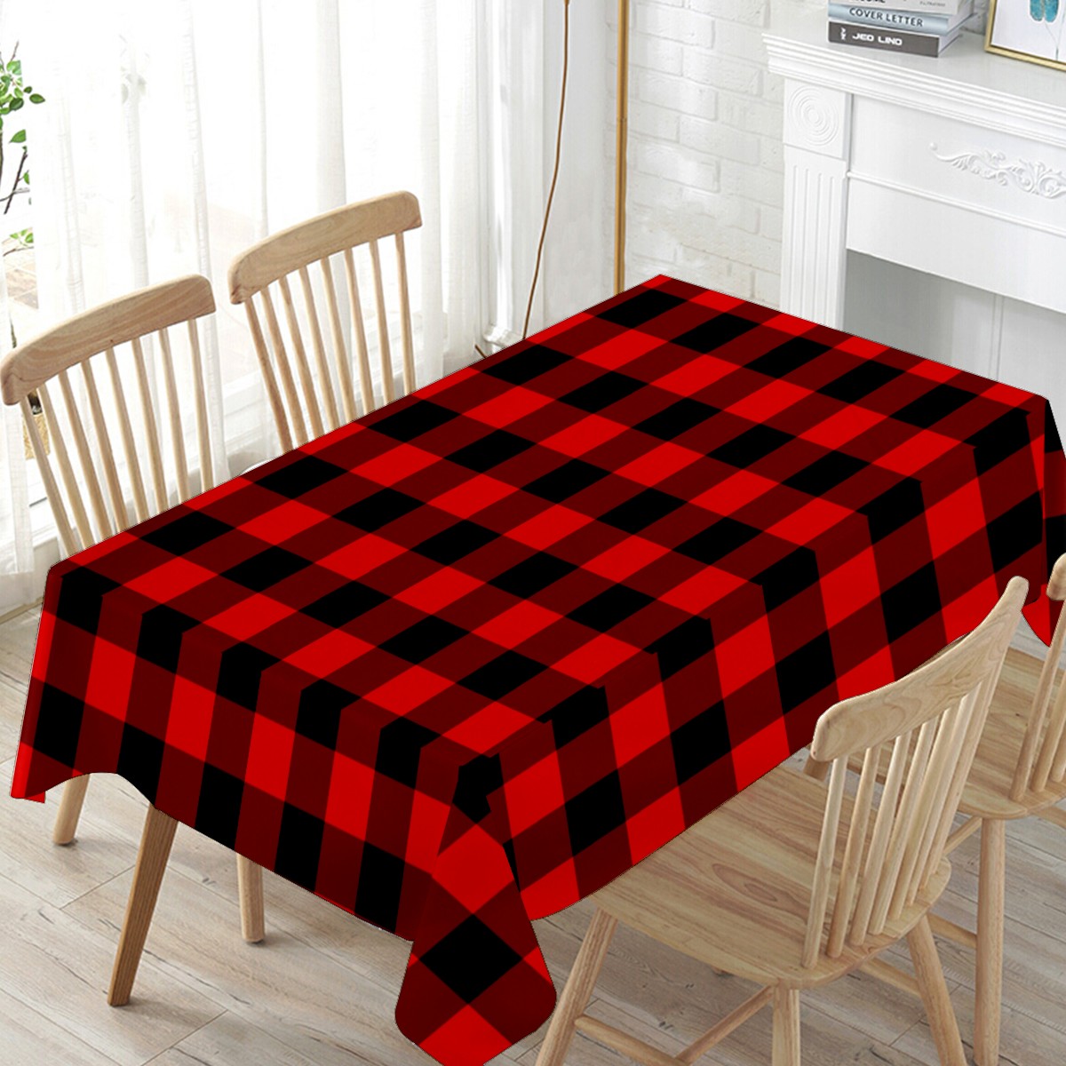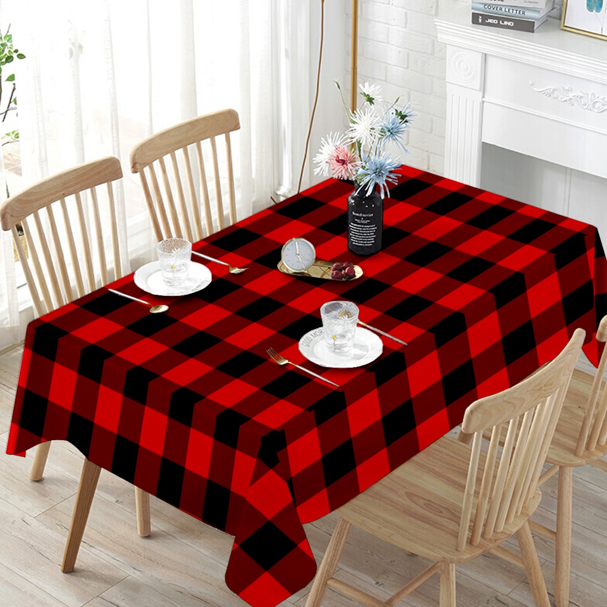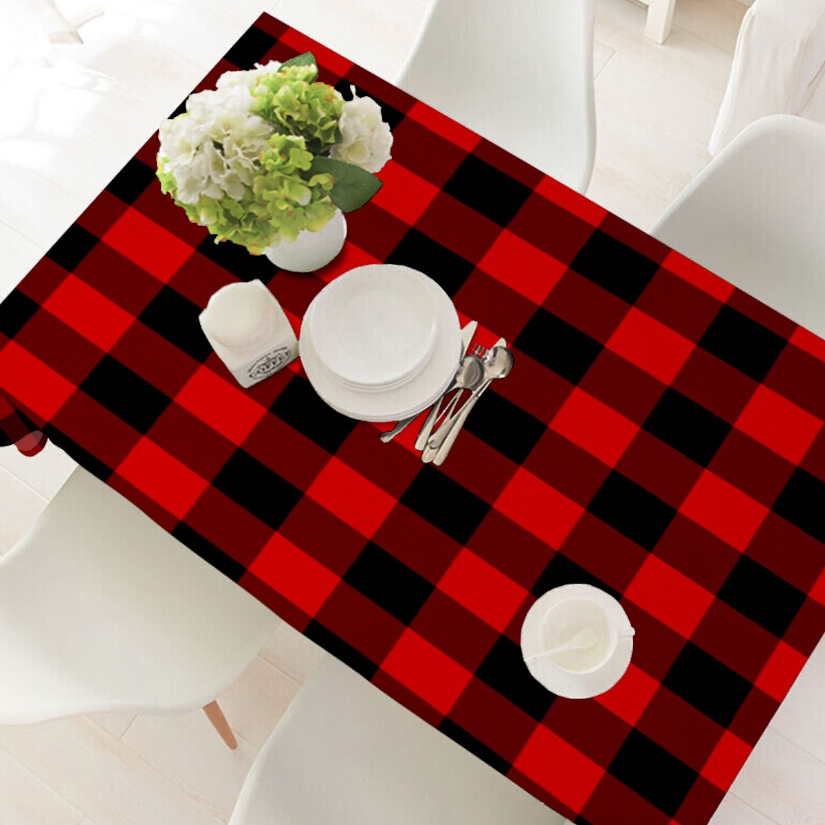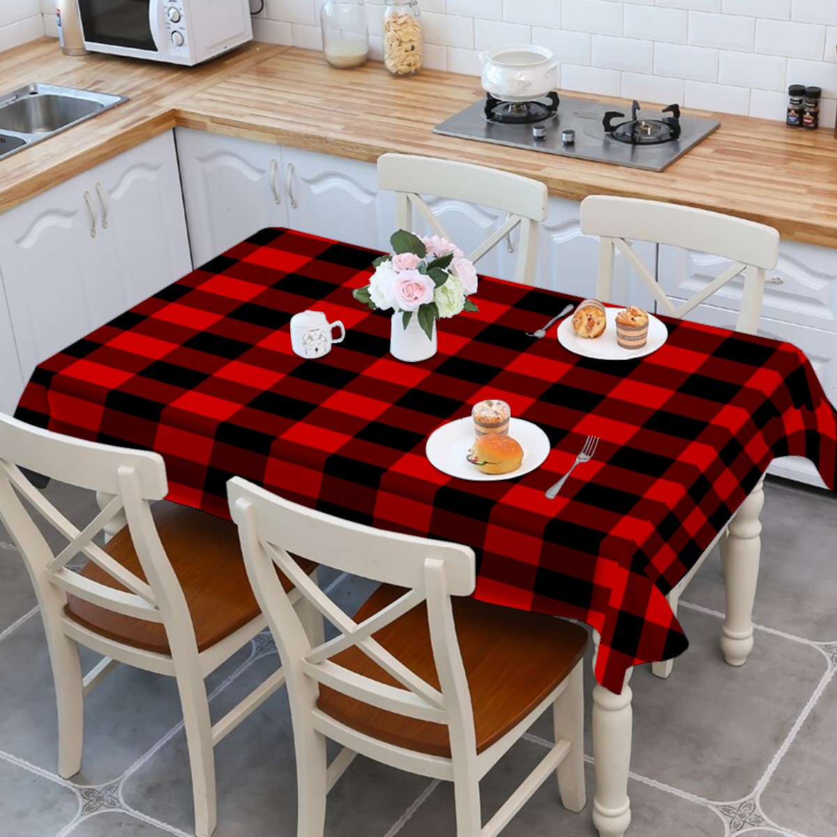 Rectangle Tablecloth Red Black Plaid Check Table Cloth 54x54in Table Cover for Kitchen Dining Table Party Home Decoration Washable Table Runner