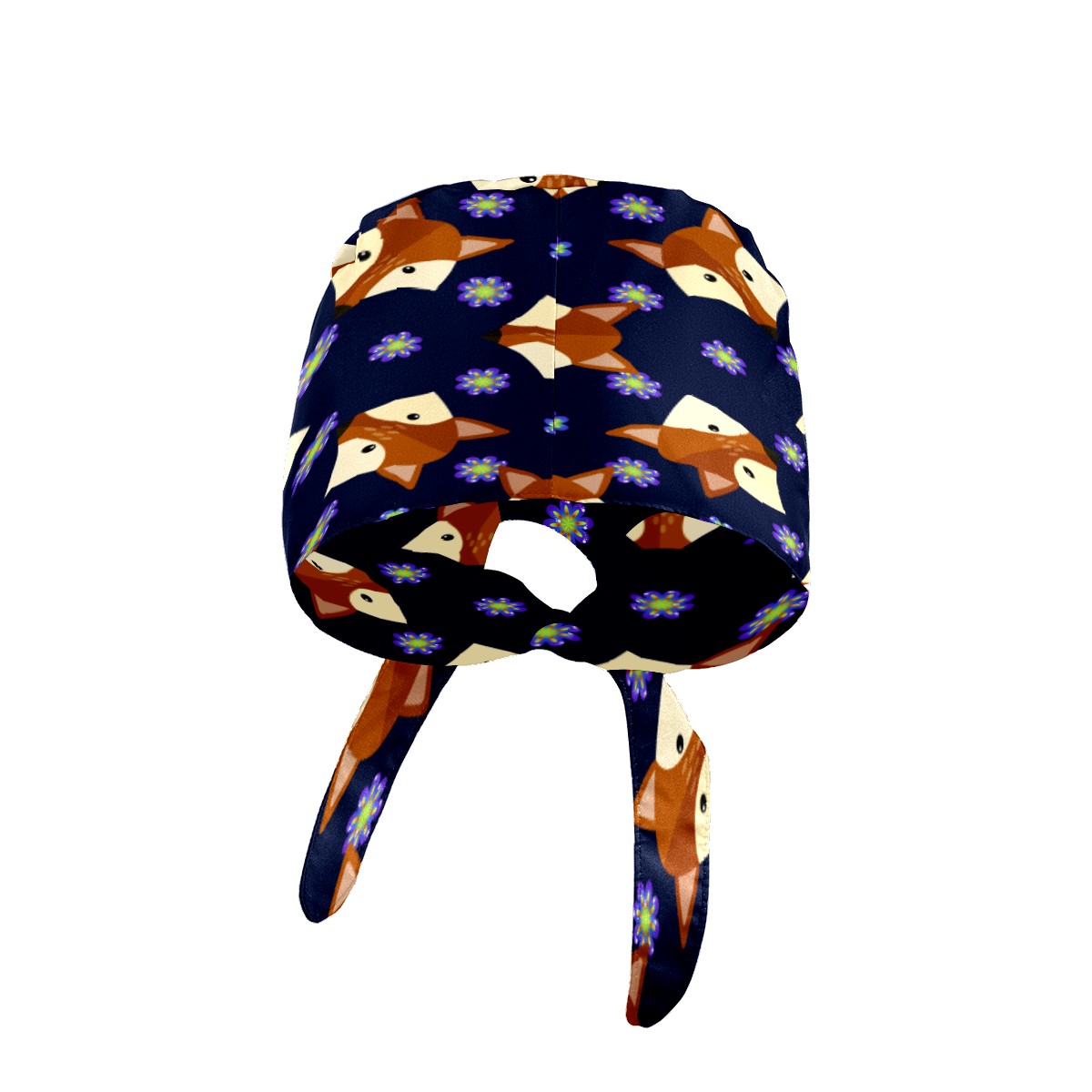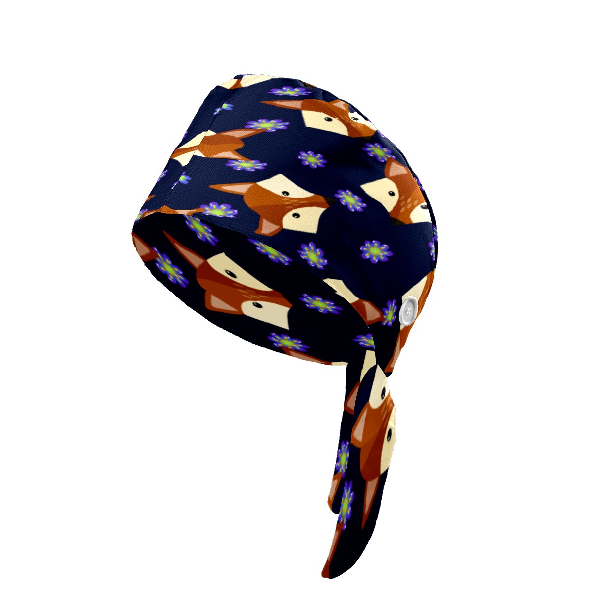 Cartoon Fox Faces Purple Flower Pattern Working Cap Button and Sweatband Adjustable Elastic Head Cover Hair Tie Back Work Hats for Women Men